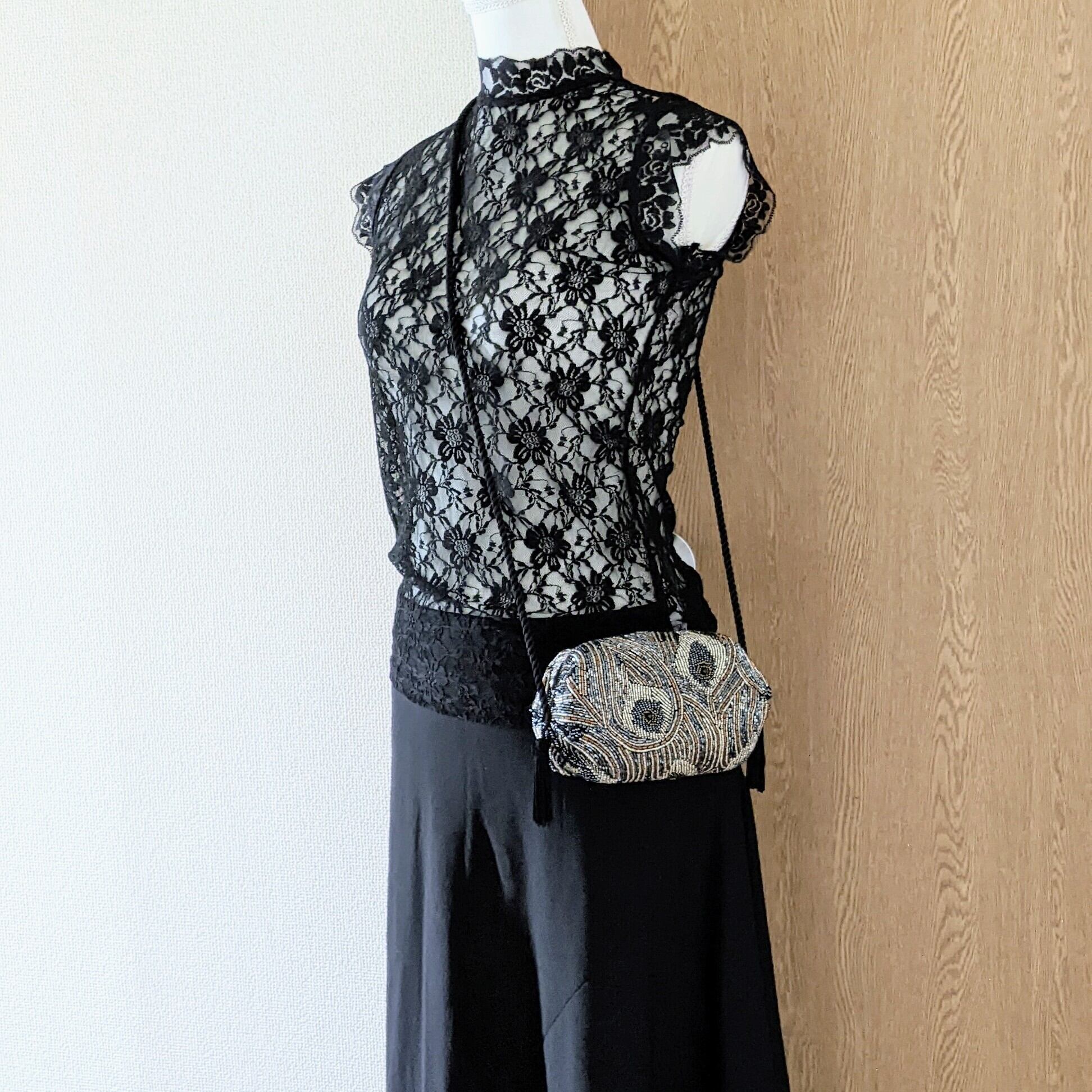 【vintage】ビーズ刺繍バッグ パーティーバッグ ショルダーバッグ 孔雀の羽模様 昭和レトロ 大正浪漫 フォーマルバッグ 結婚式