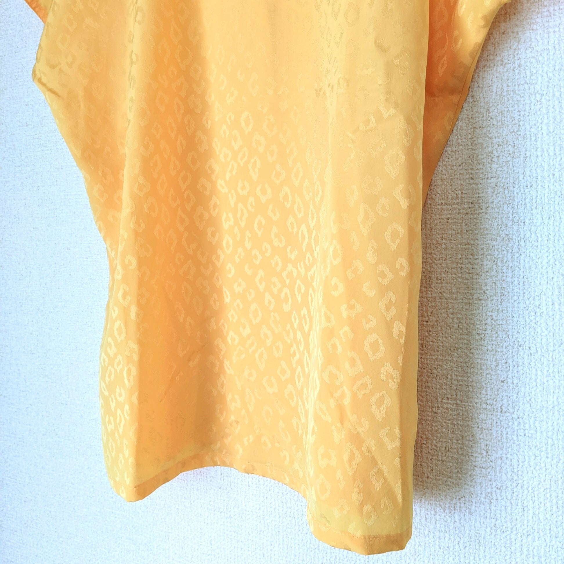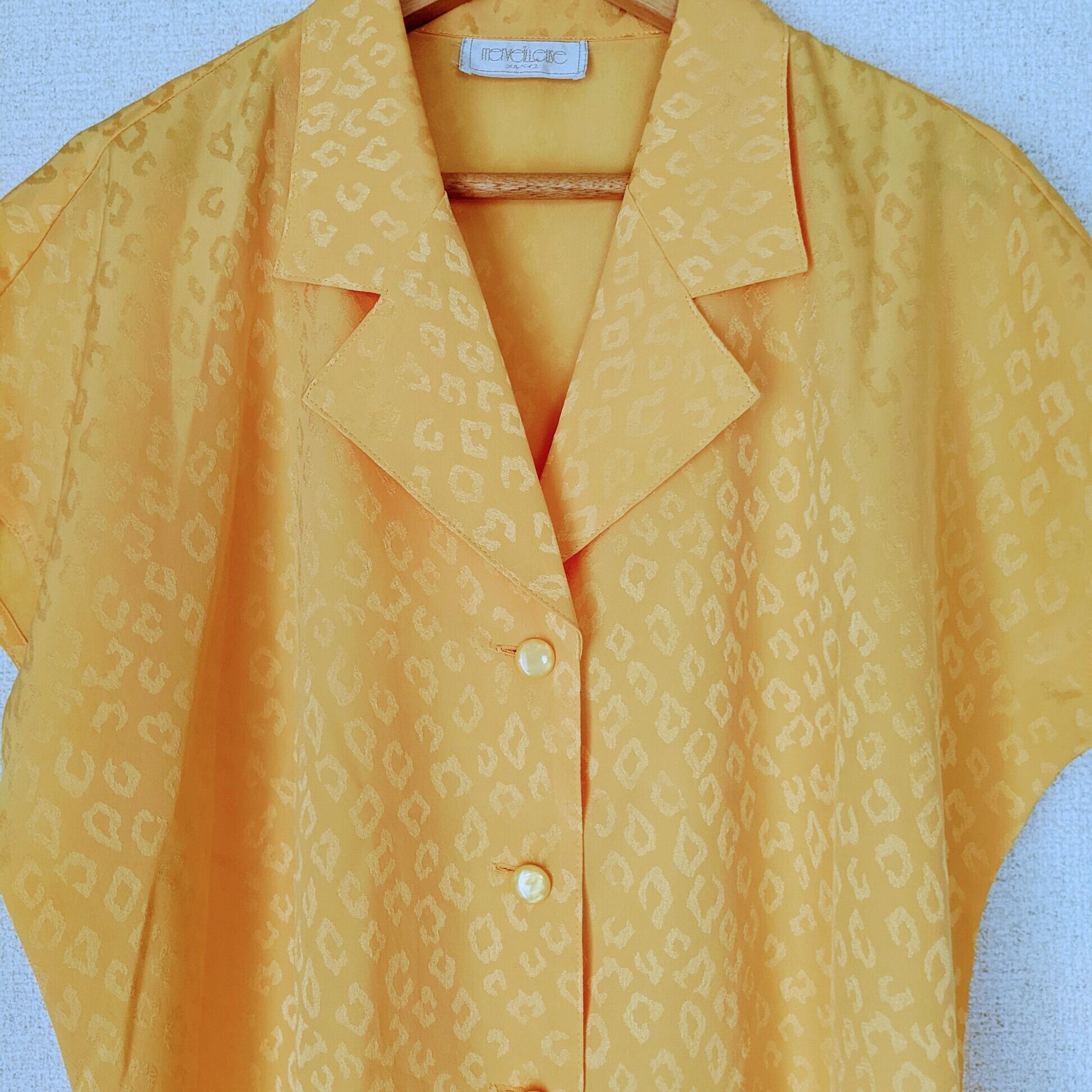 イエローネオンカラーにシャドーレオパード柄がとっても80年代な気分の開襟ブラウスです。
