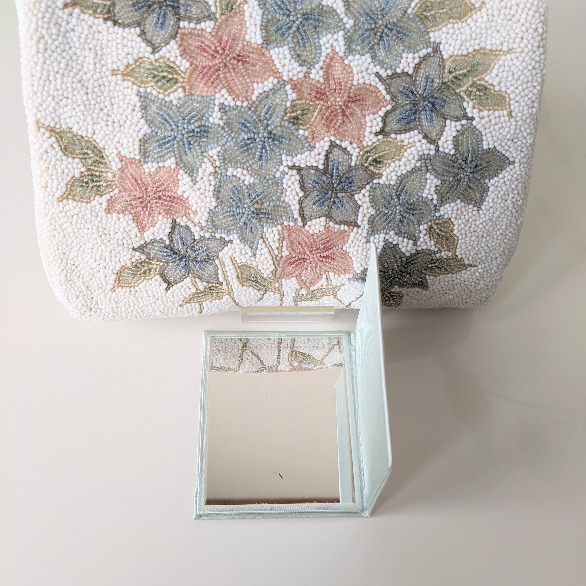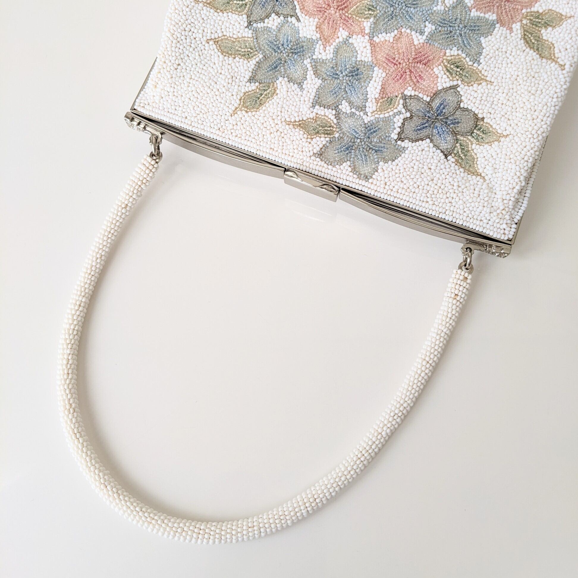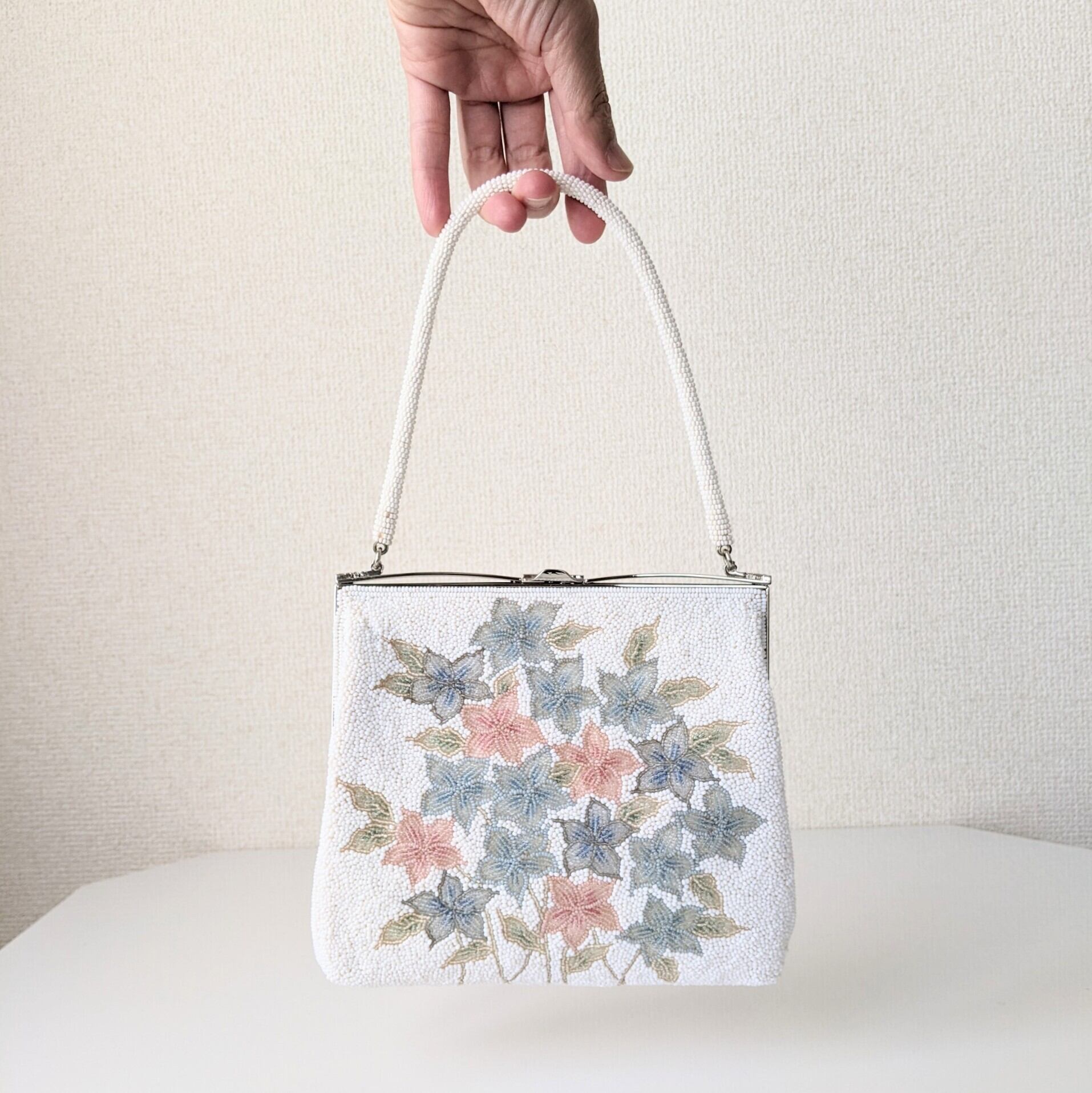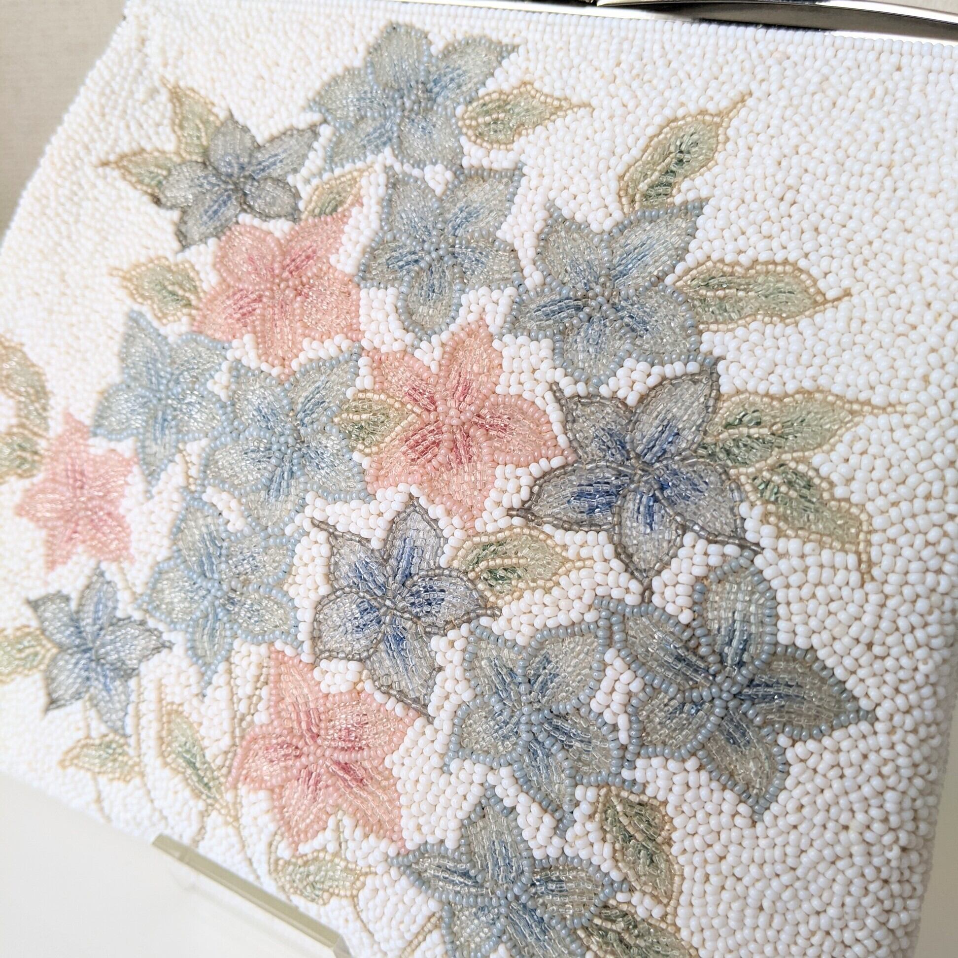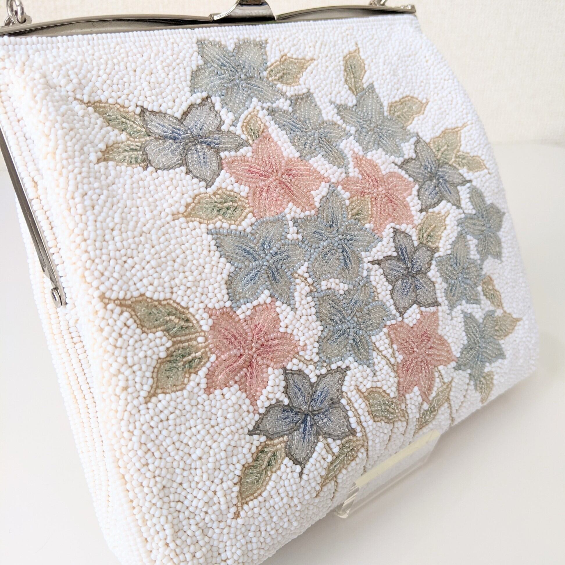 【vintage】ビーズ刺繍バッグ Fuji Bag パーティーバッグ 紫陽花 花束 ブーケ 花柄 昭和レトロ 大正浪漫 フォーマルバッグ 結婚式 パーティ