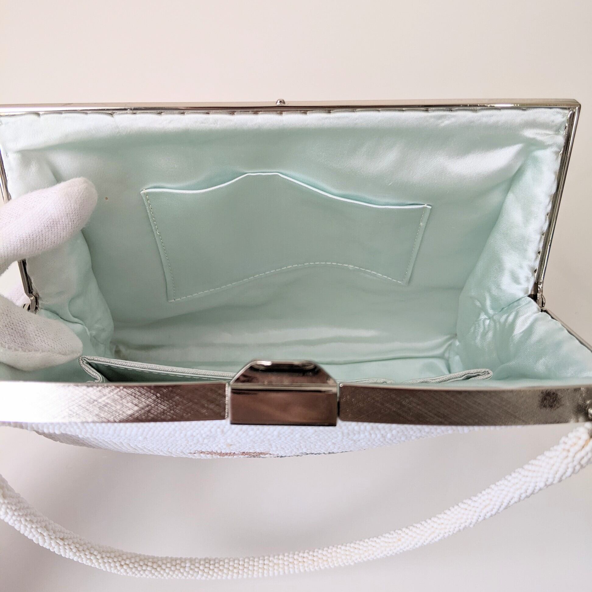 光を受けて美しく輝くヴィンテージビーズバッグ。