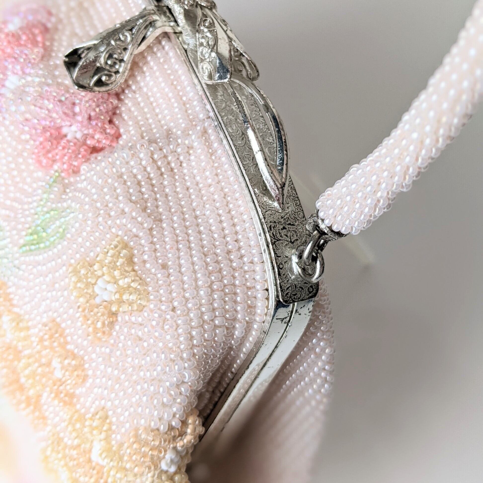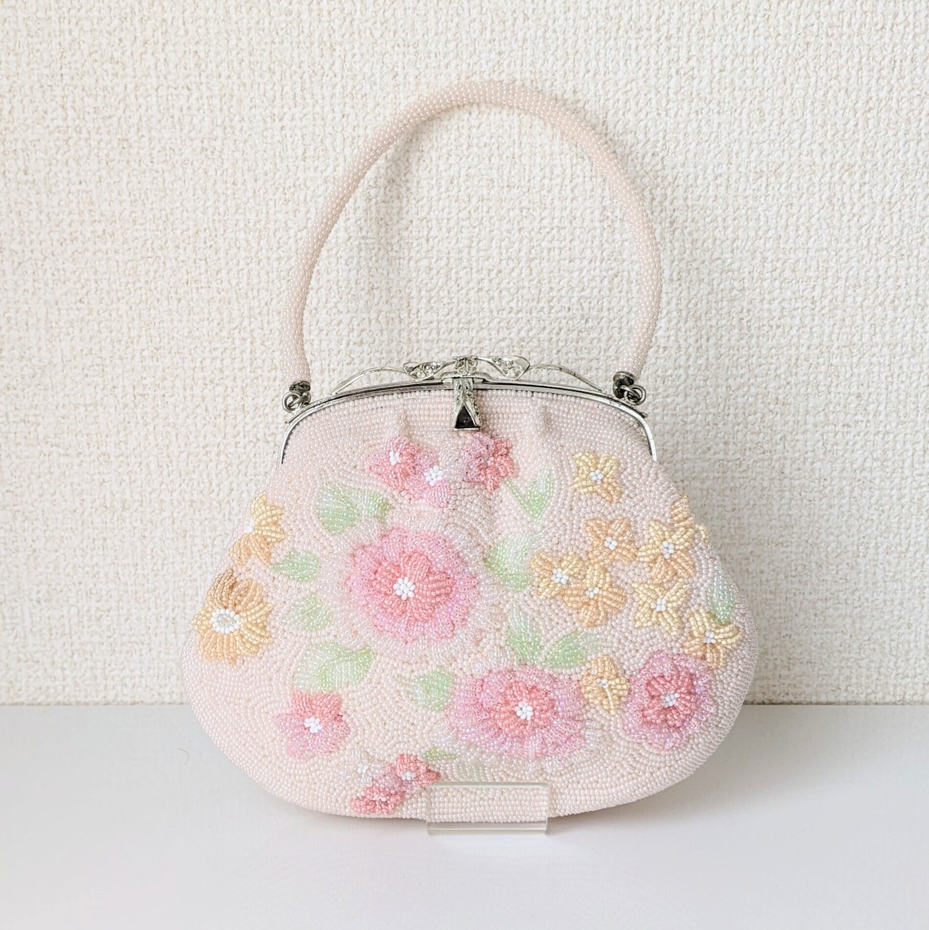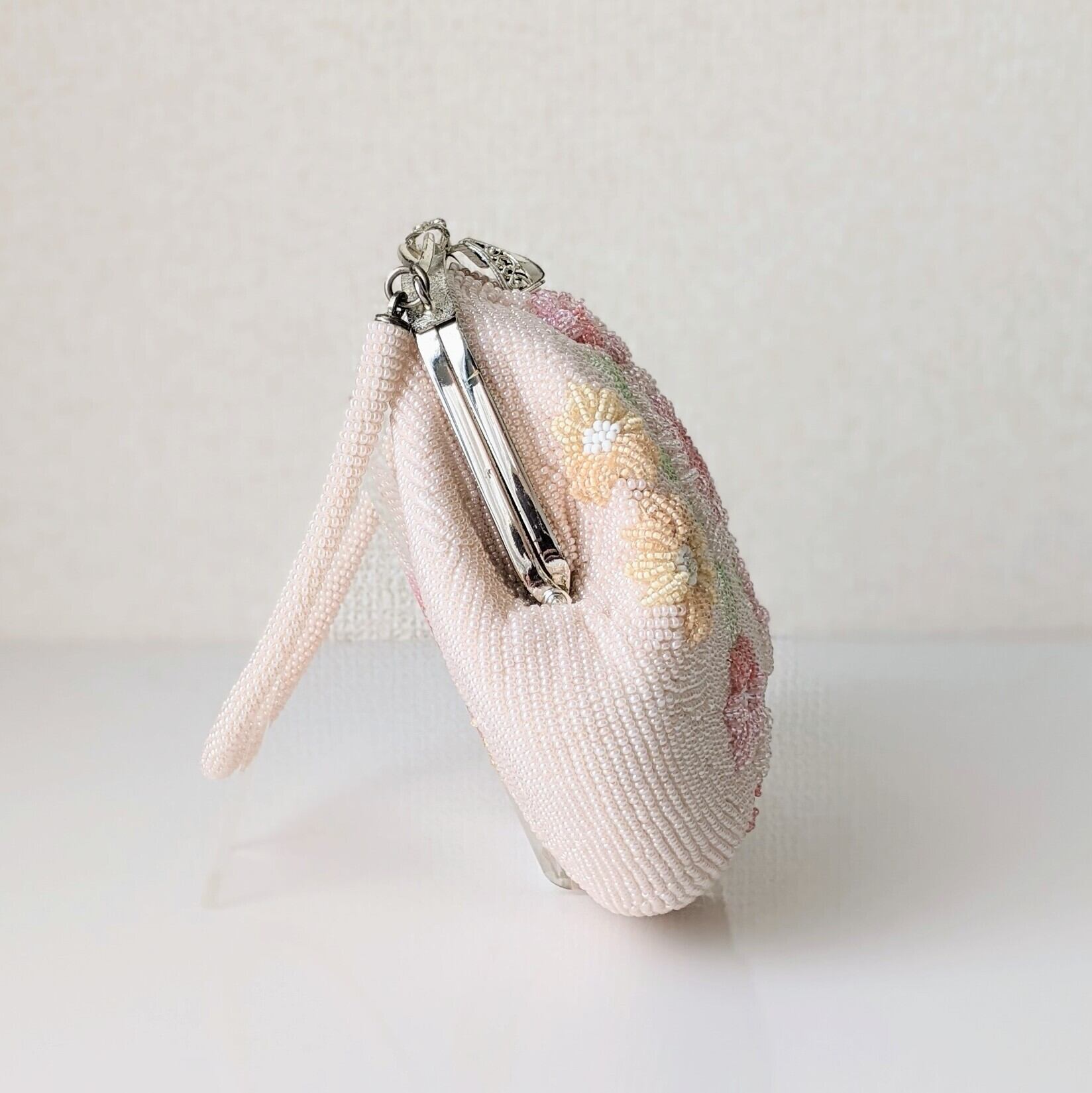 【Vintage】ビーズ刺繍バッグ パーティーバッグ ベビーピンク 花柄 七五三 パステルカラー 昭和レトロ 大正浪漫 フォーマルバッグ 結婚式