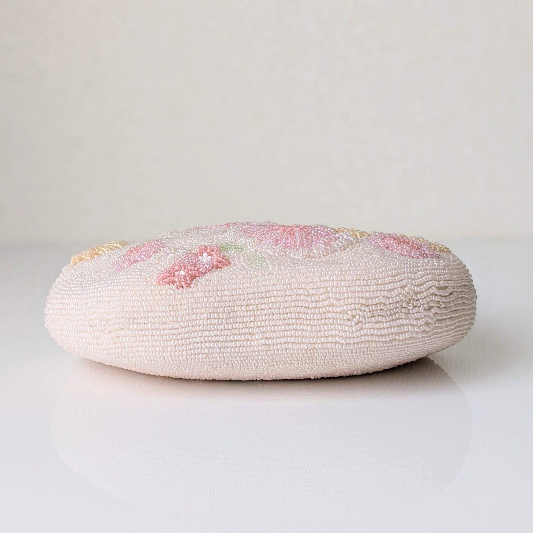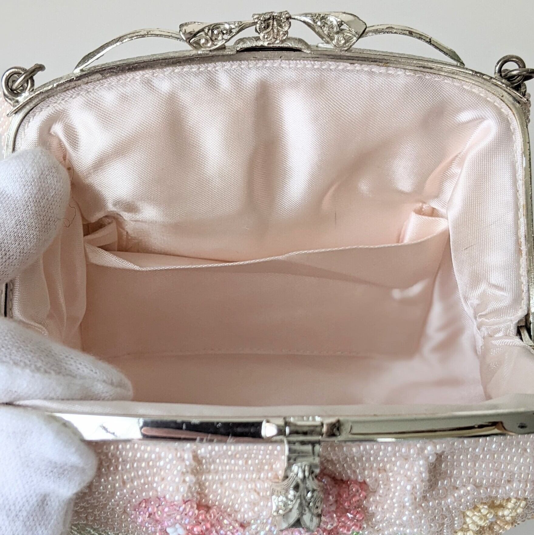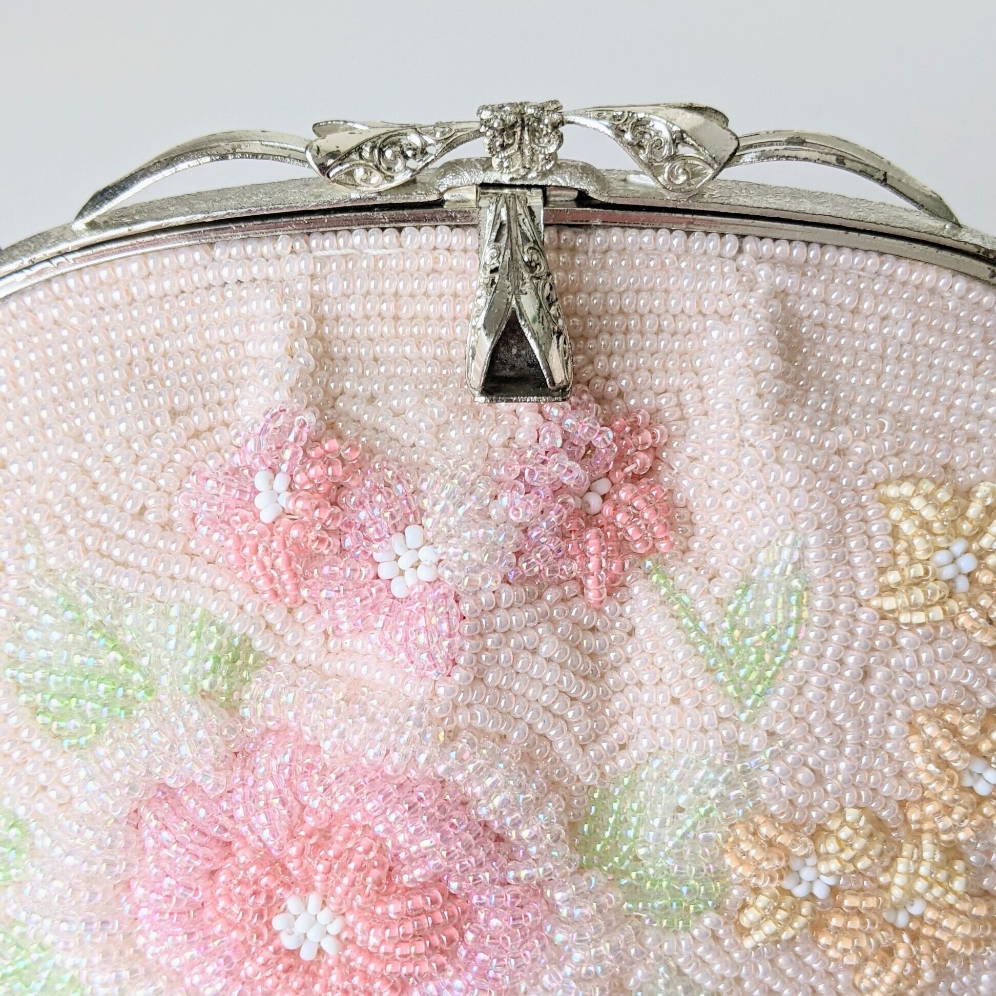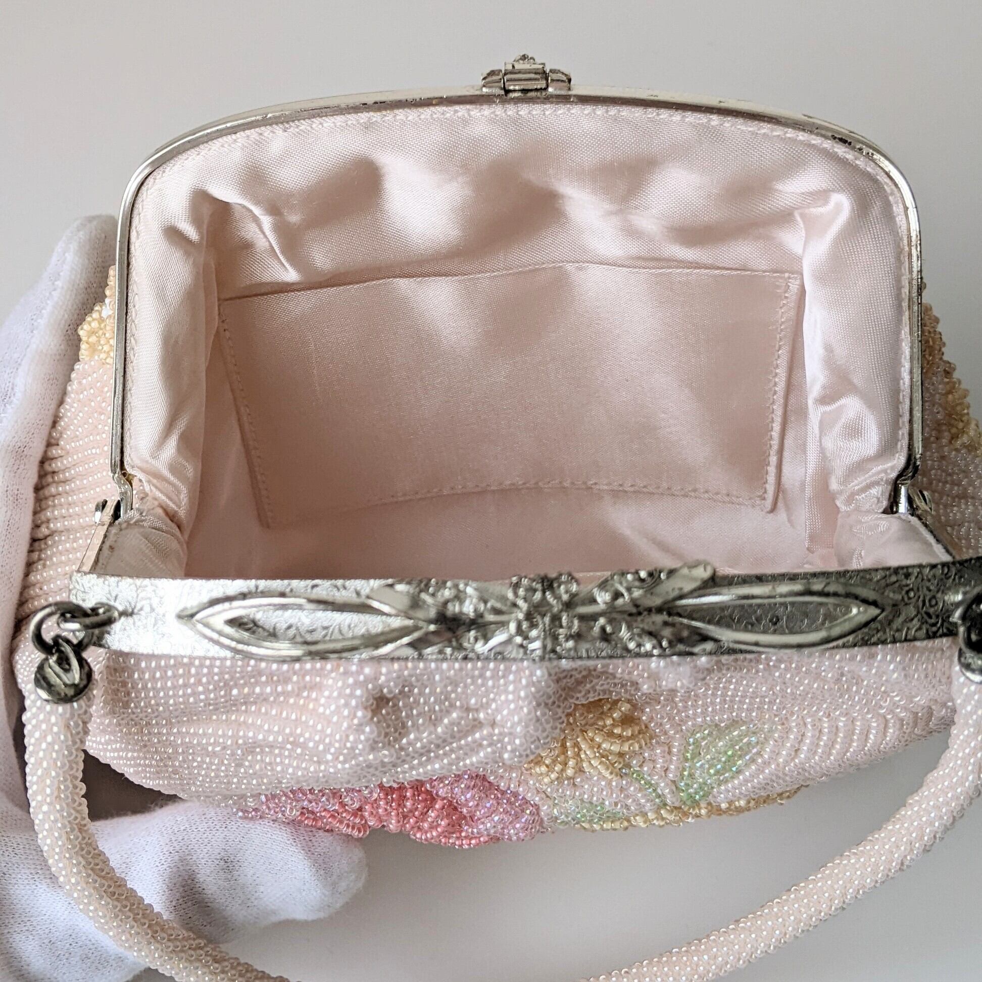 【Vintage】ビーズ刺繍バッグ パーティーバッグ ベビーピンク 花柄 七五三 パステルカラー 昭和レトロ 大正浪漫 フォーマルバッグ 結婚式