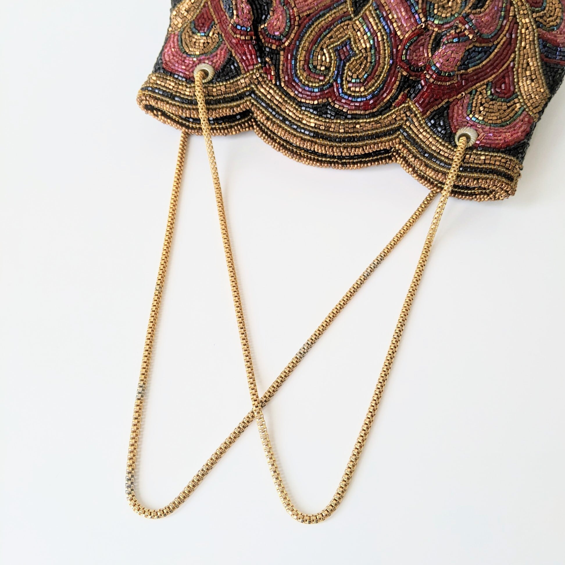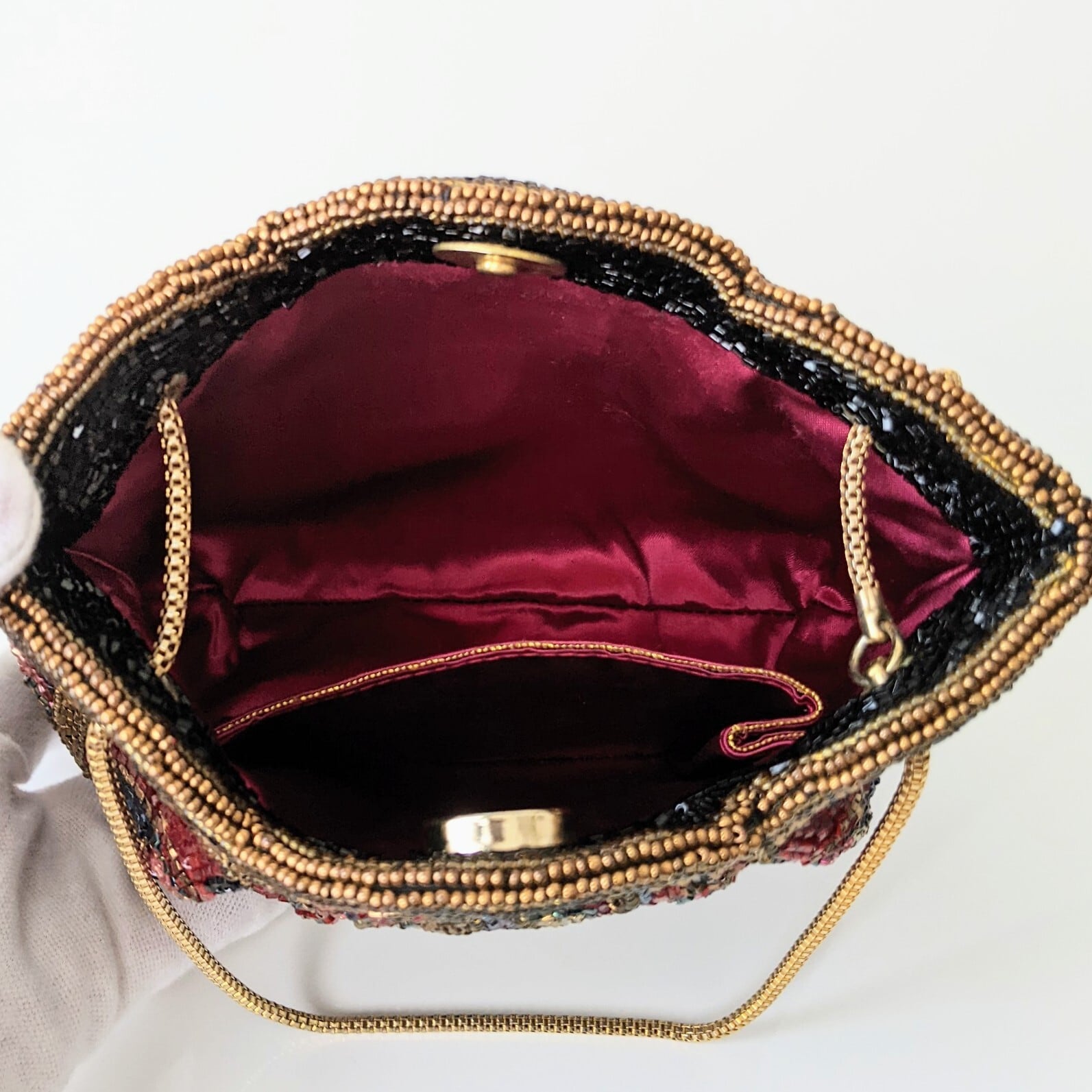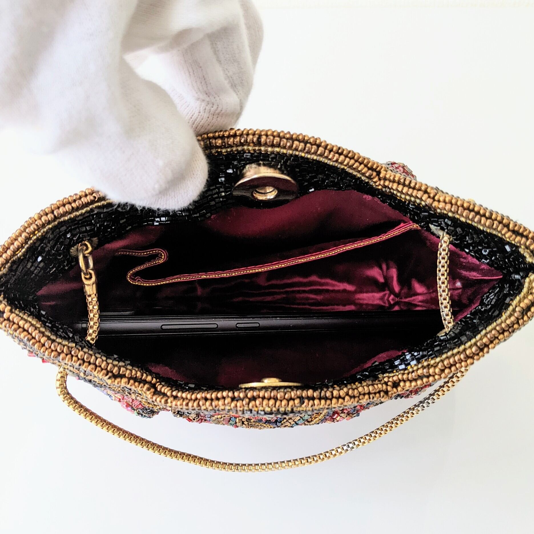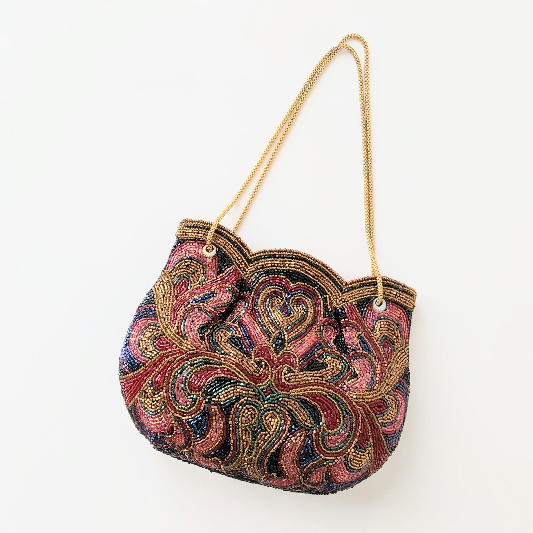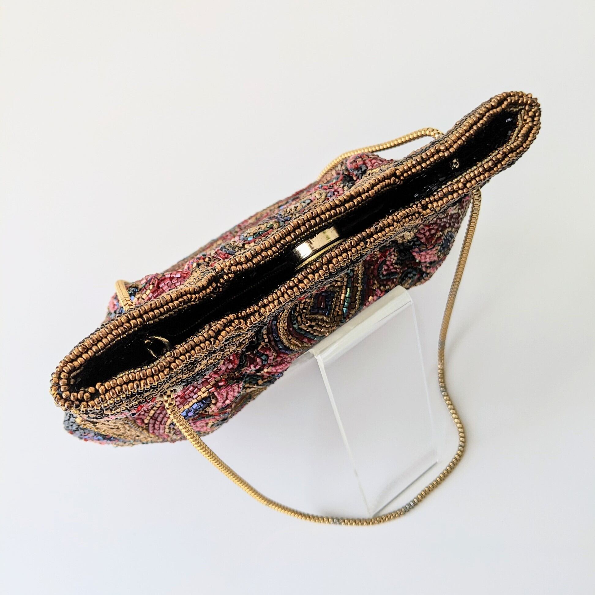【Vintage】ビーズ刺繍バッグ LUMY 「はしもと」 パーティーバッグ アラベスク模様 マルチカラー 昭和レトロ 大正浪漫 フォーマルバッグ 結婚式