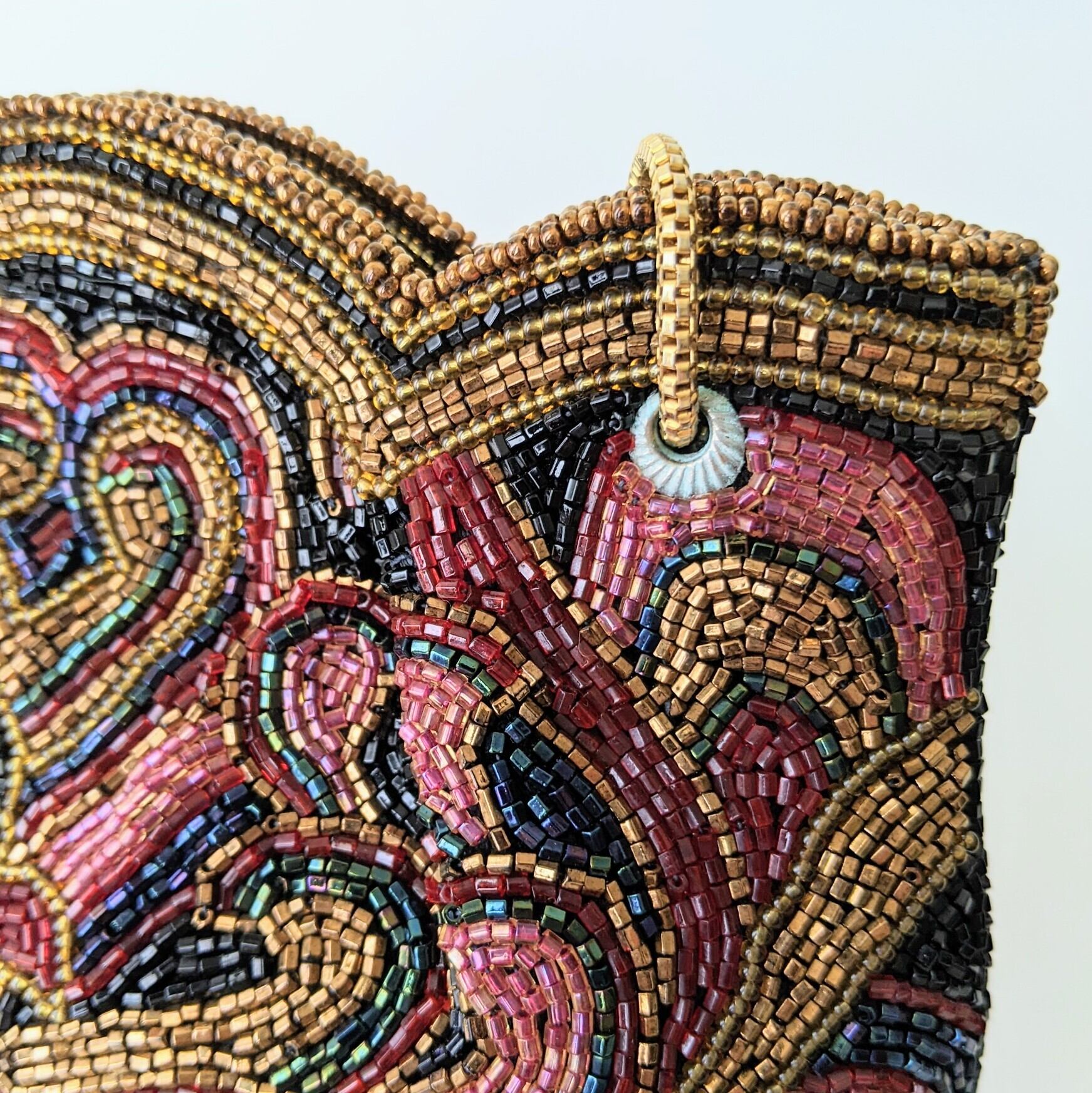 ビーズバッグの楽しみは、何と言っても手編みのビーズ刺繍。職人が一つ一つ丁寧に手作業で編み上げた、贅沢で美しいディテールです。