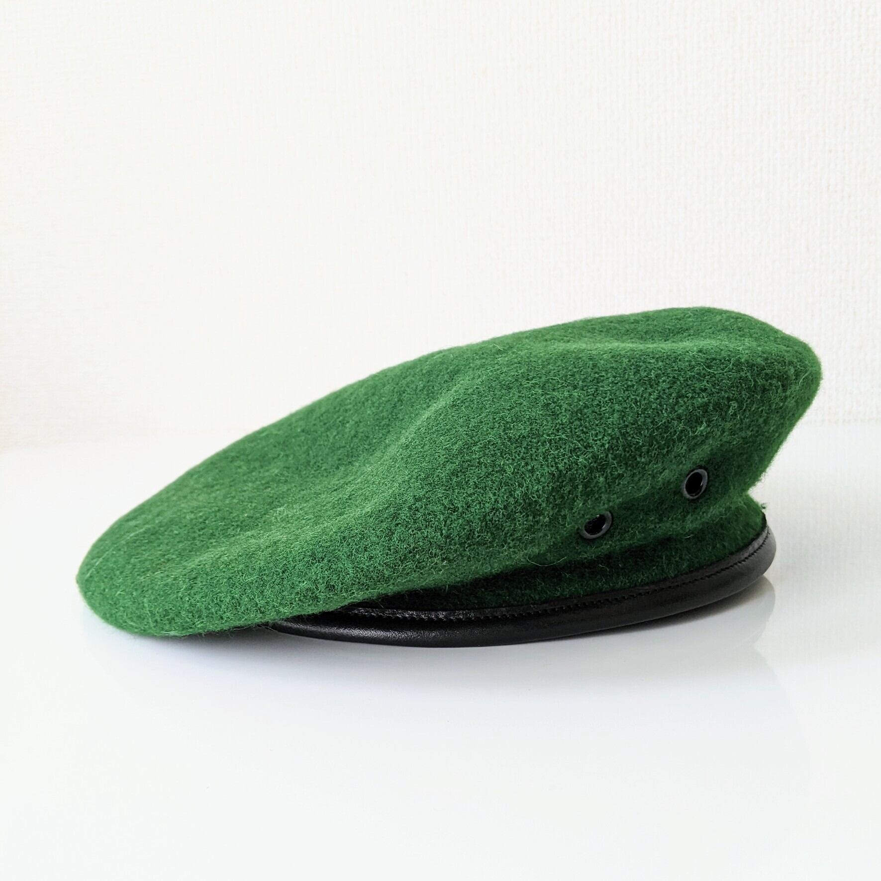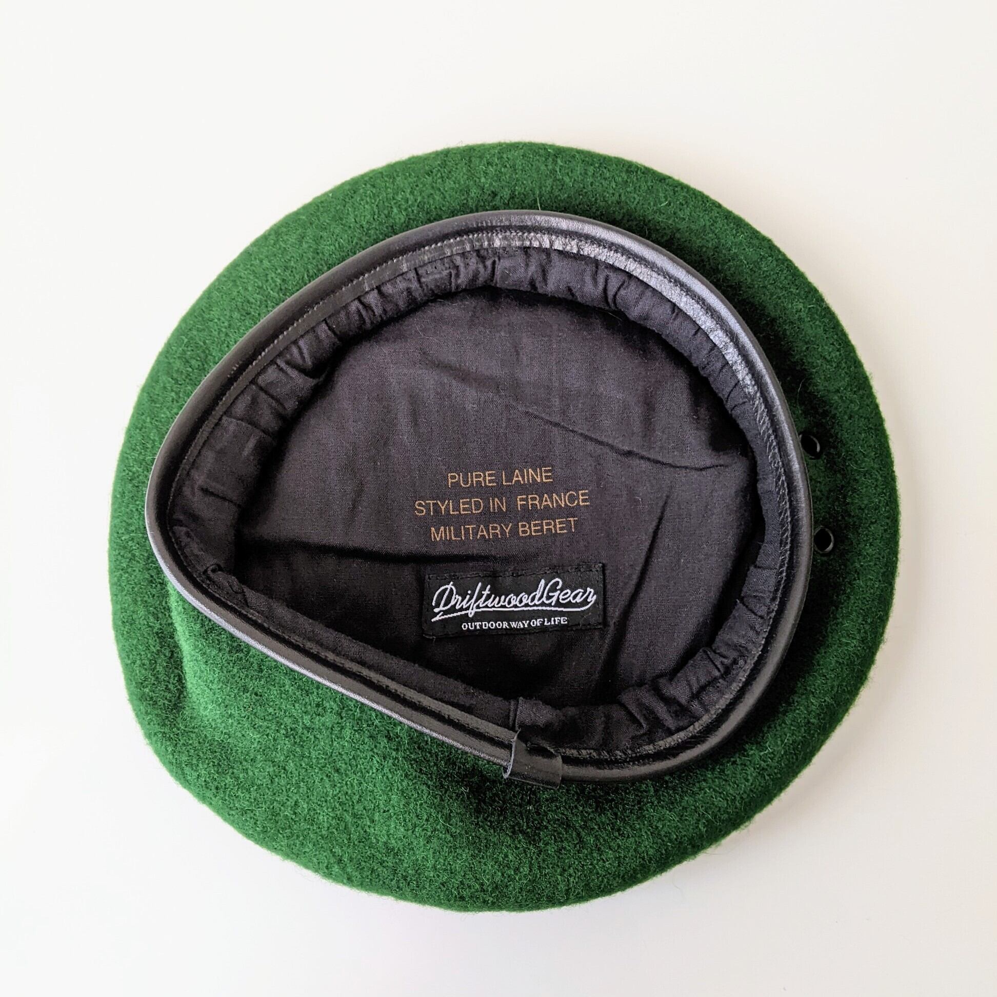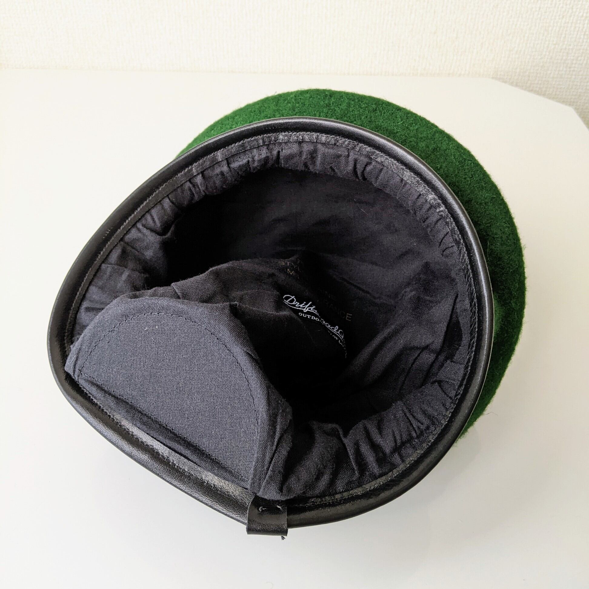 アーミーグリーンと黒の縁取りが格好良いウールベレー帽です。