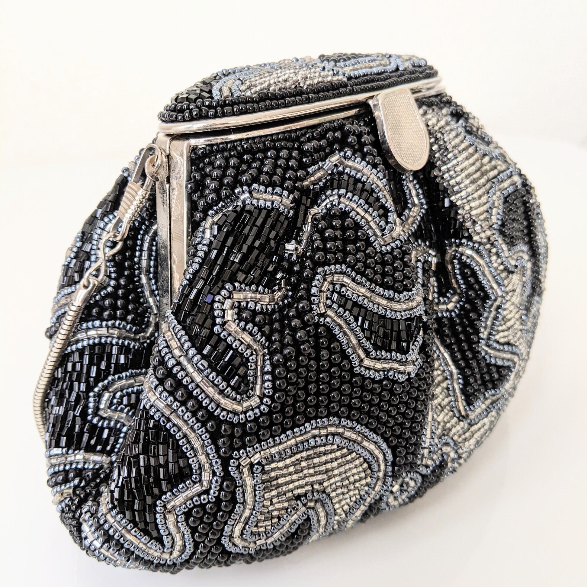 光を受けて美しく輝くヴィンテージビーズバッグ。