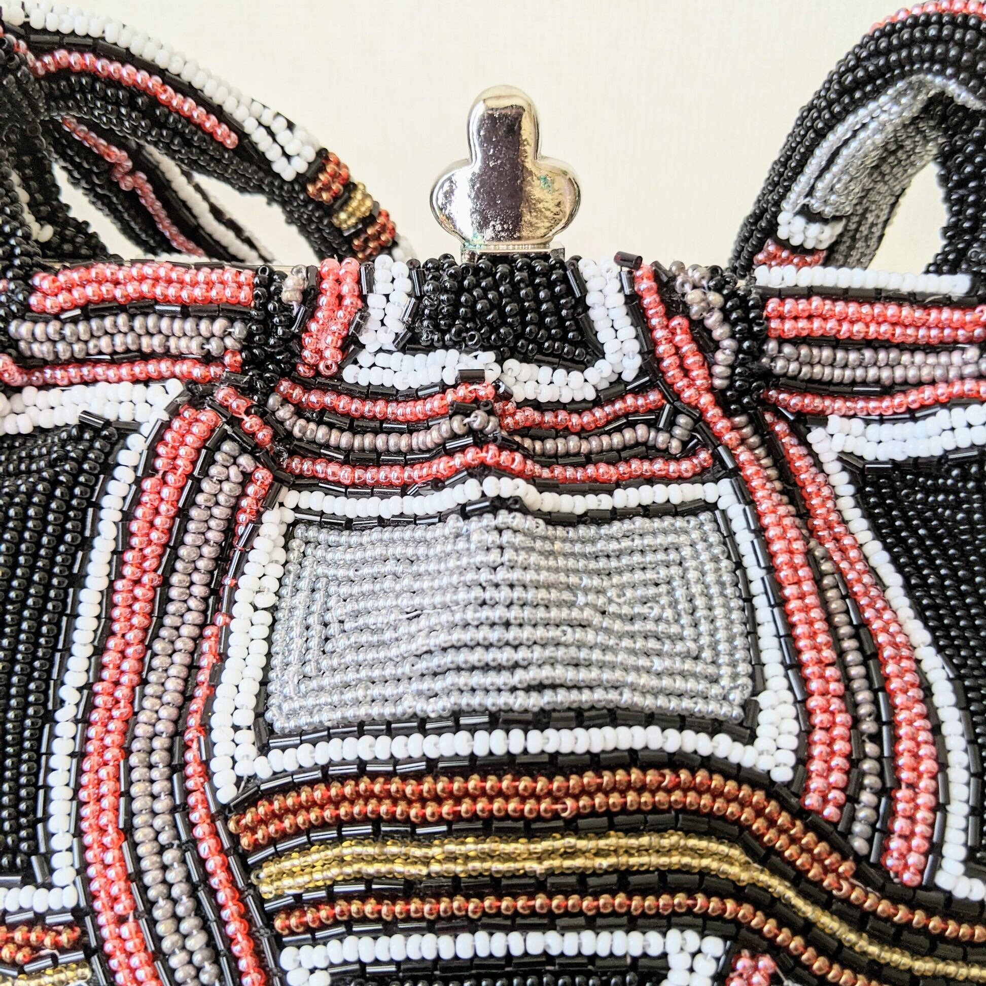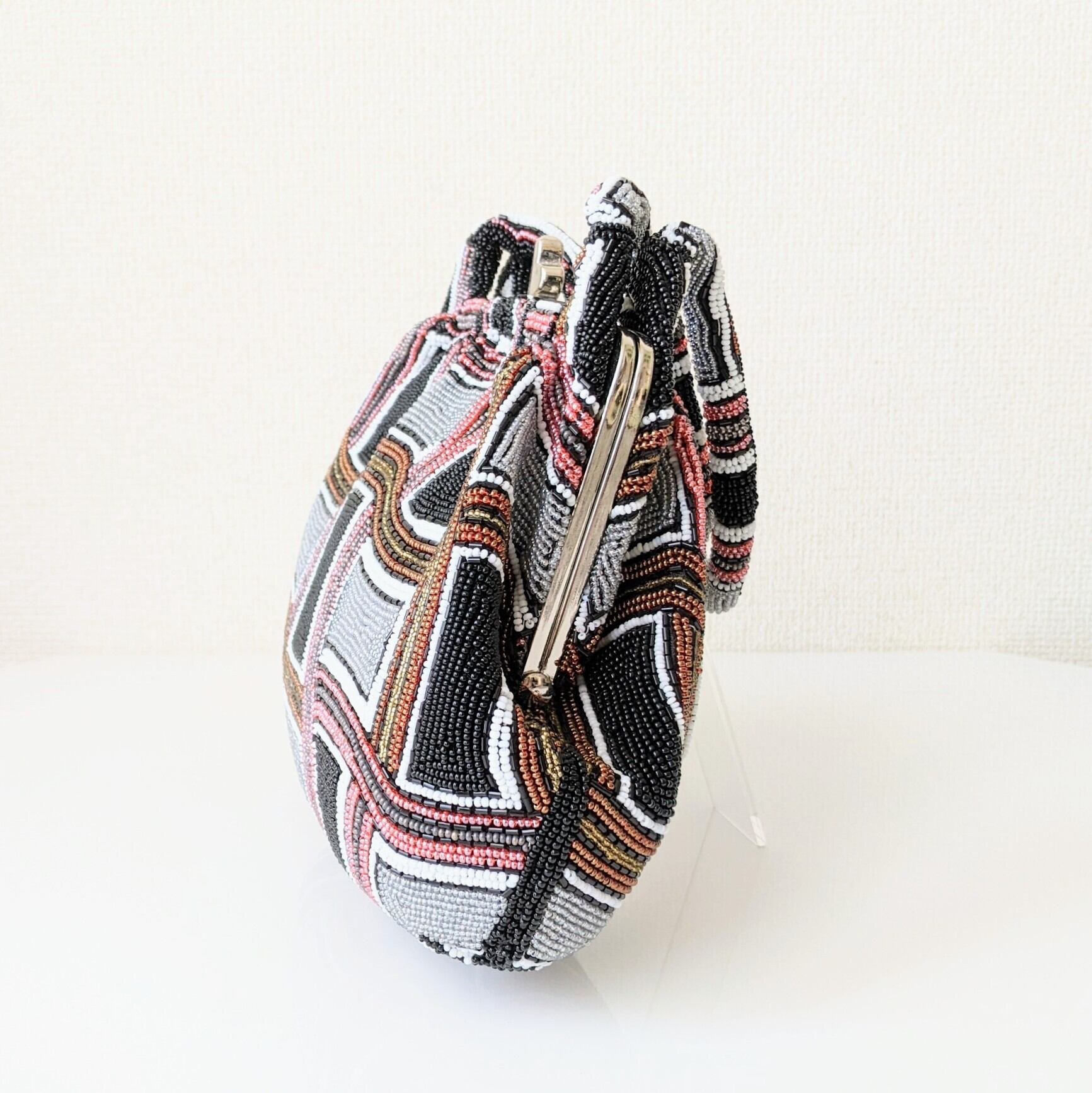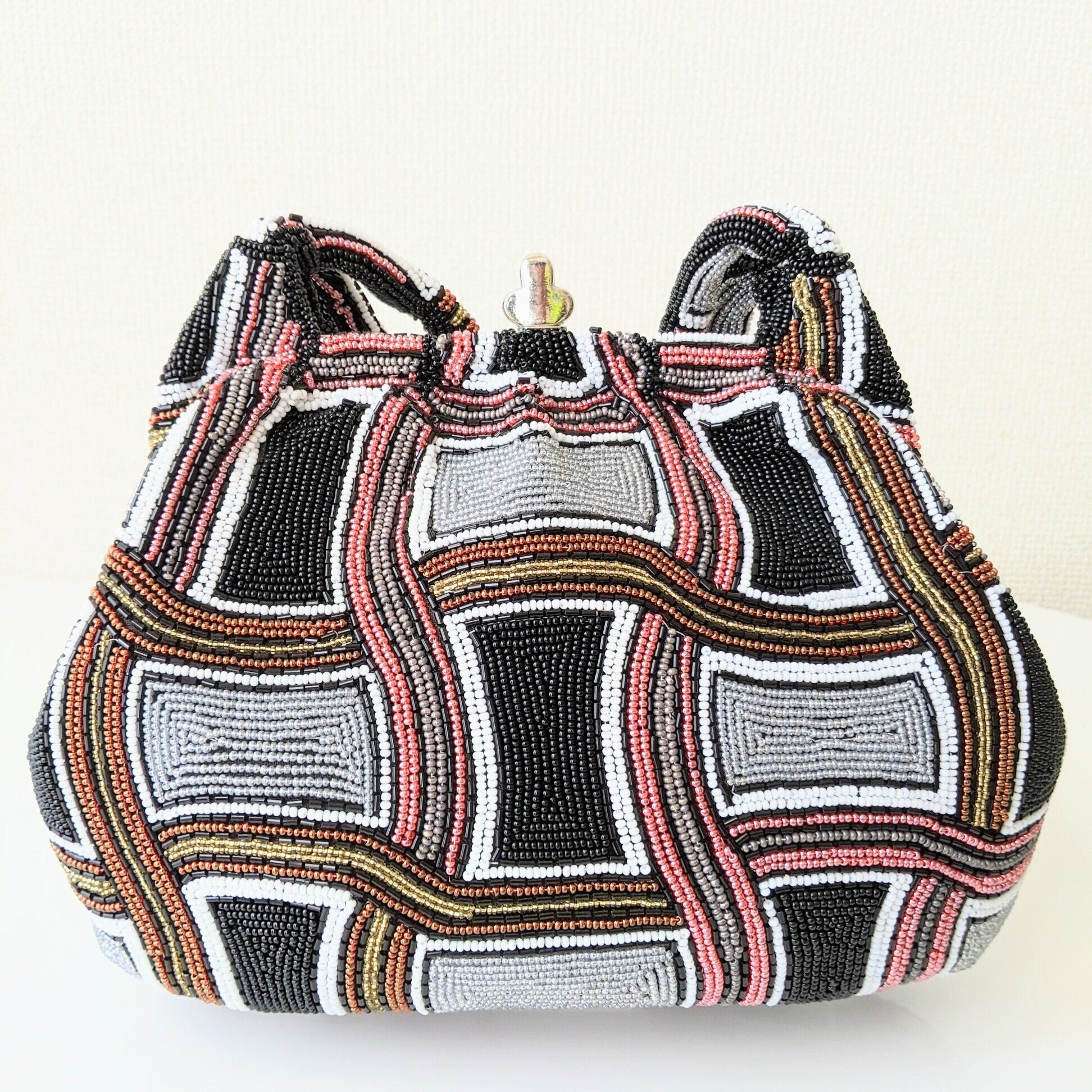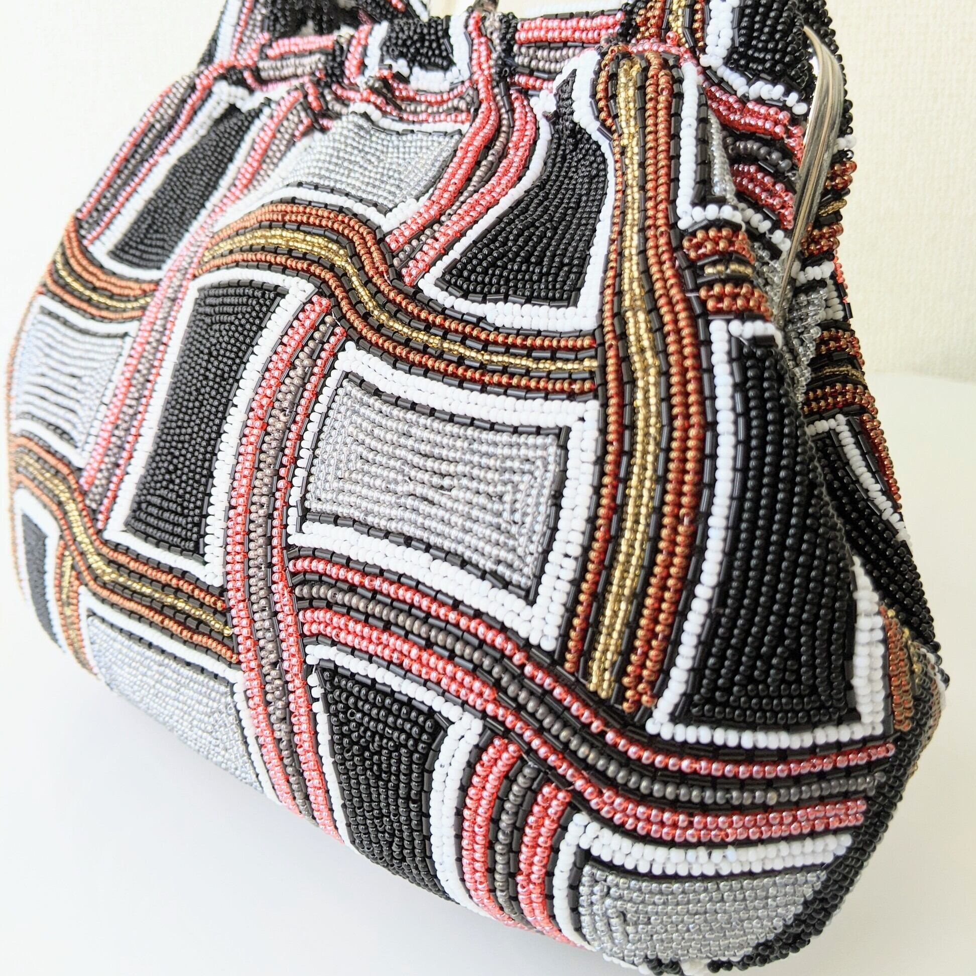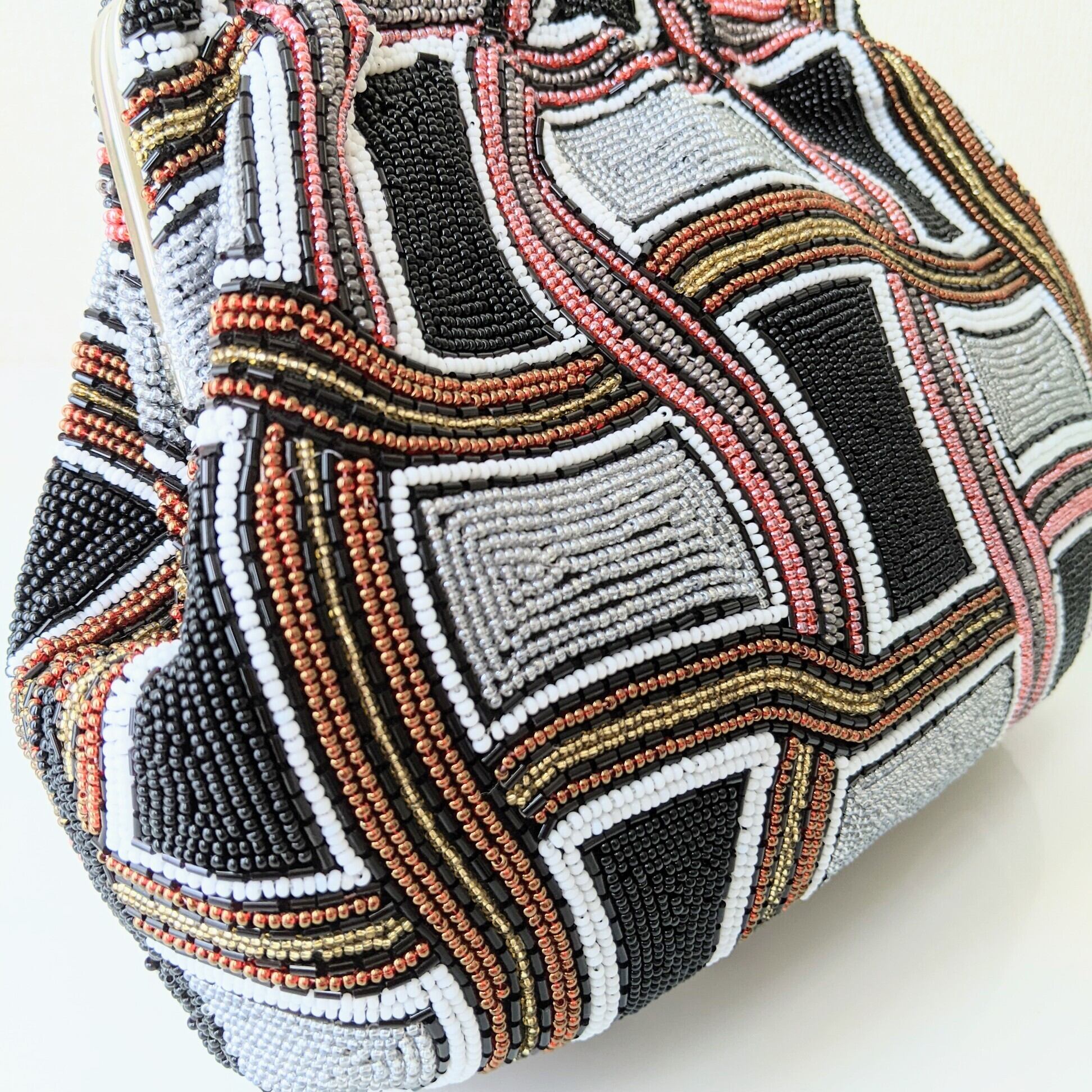 とてもモダンなデザインですが『分銅繋ぎ』という古典文様を刺繍したビーズバッグです。