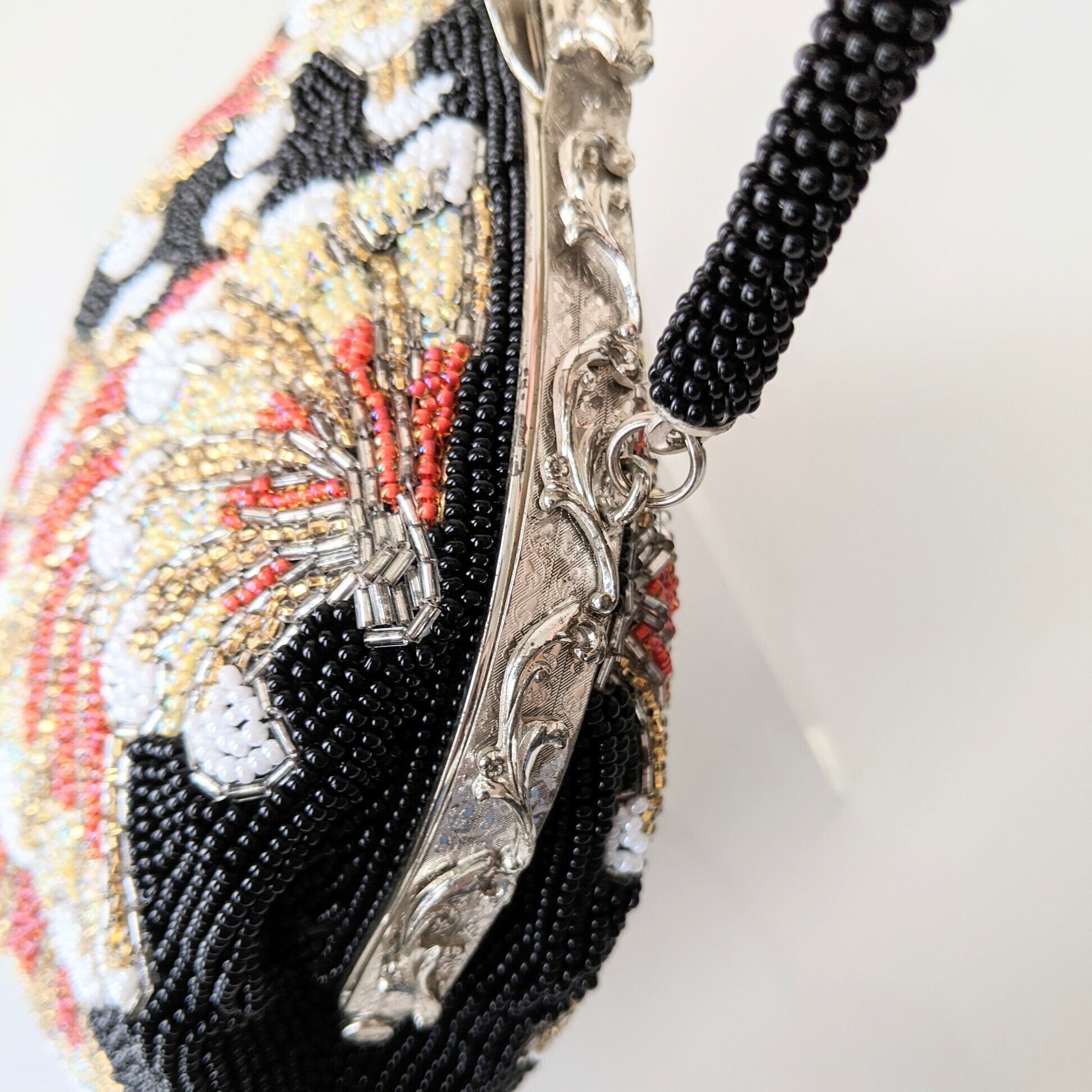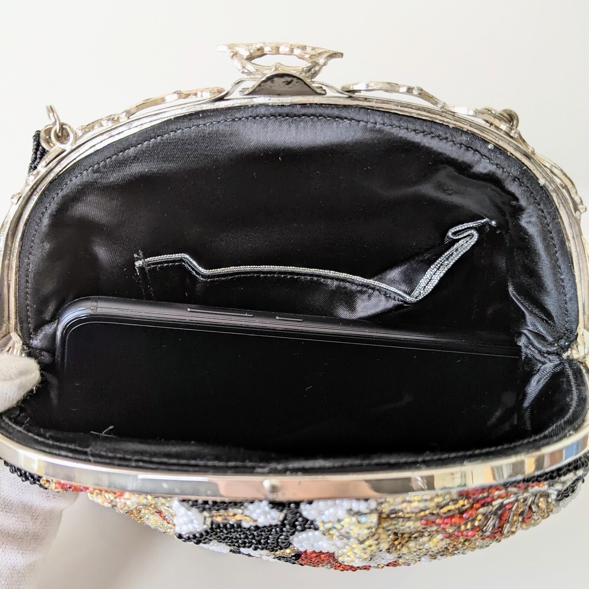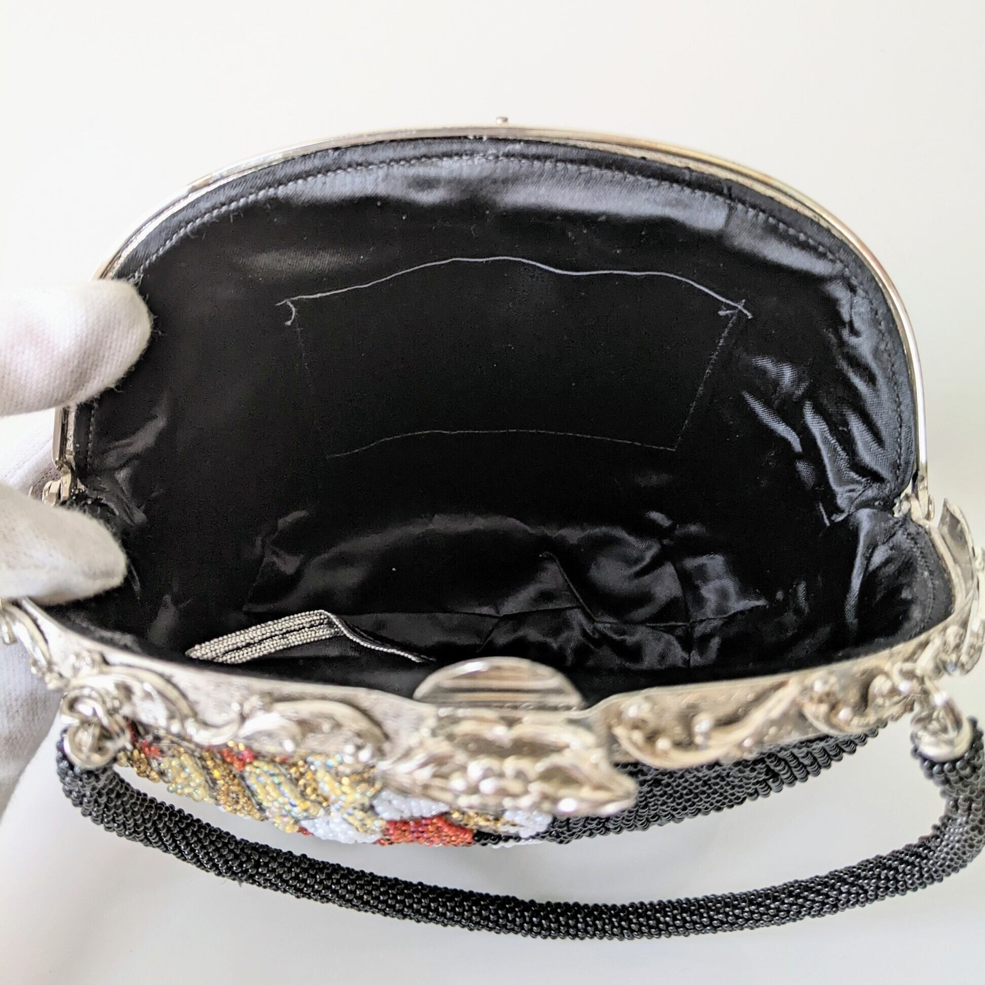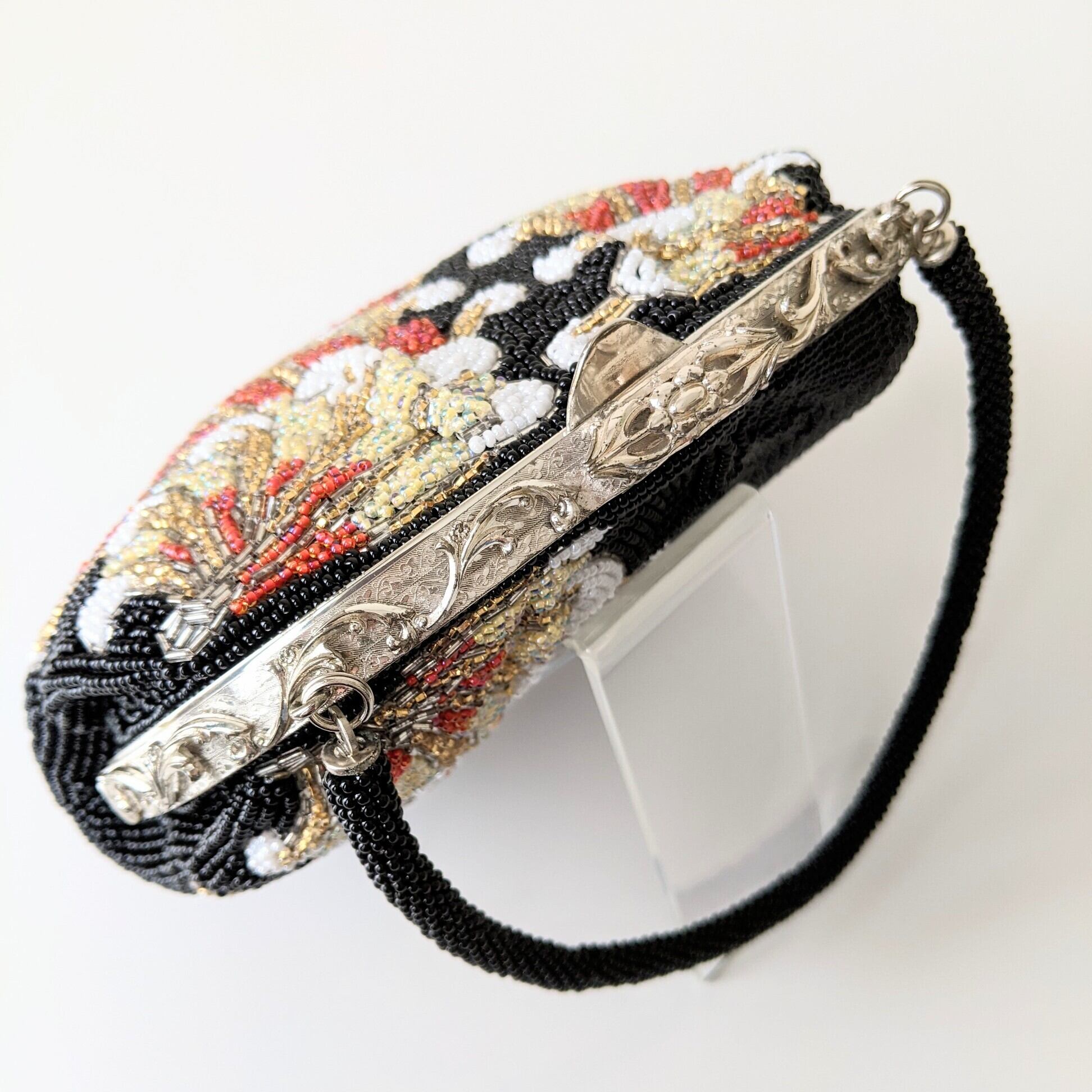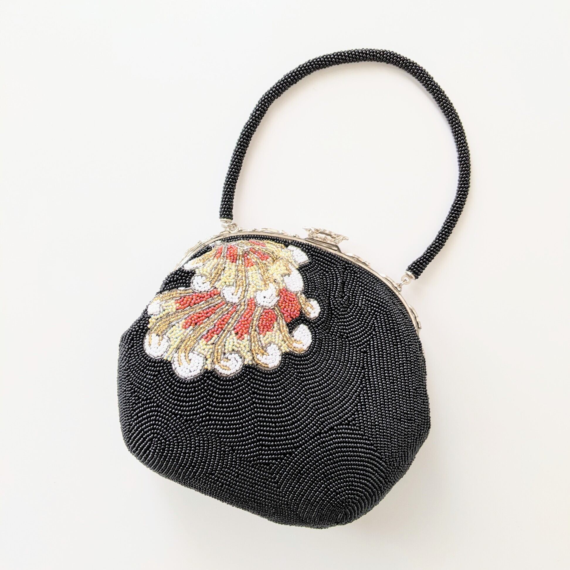 【Vintage】ビーズ刺繍バッグ Vintage Beaded Bag 波頭 黒×赤×金 Kintetsu印 パーティーバッグ 昭和レトロ 大正浪漫 フォーマルバッグ