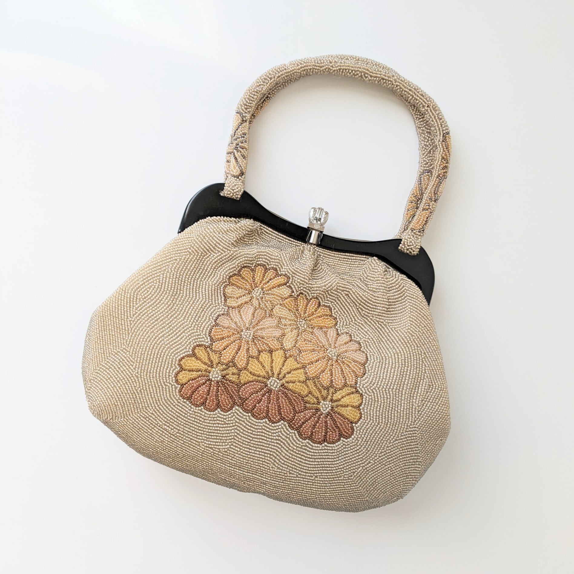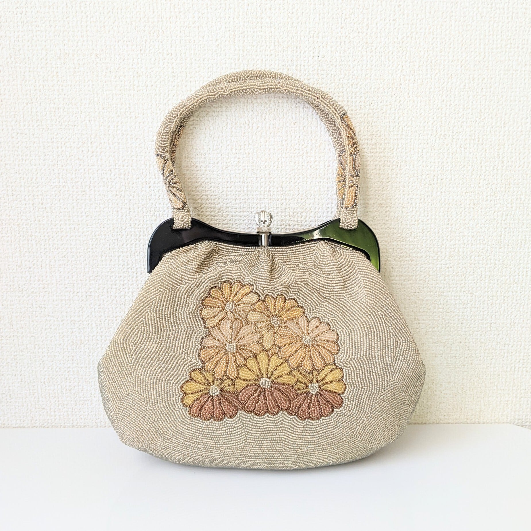 シンプルな装いにもパッと華が咲いたようなそんな存在感抜群なビーズバッグ。