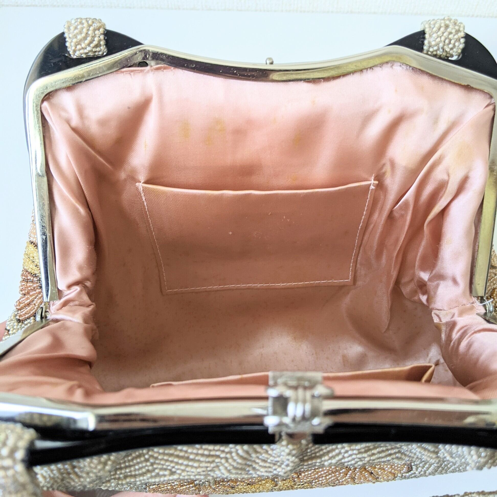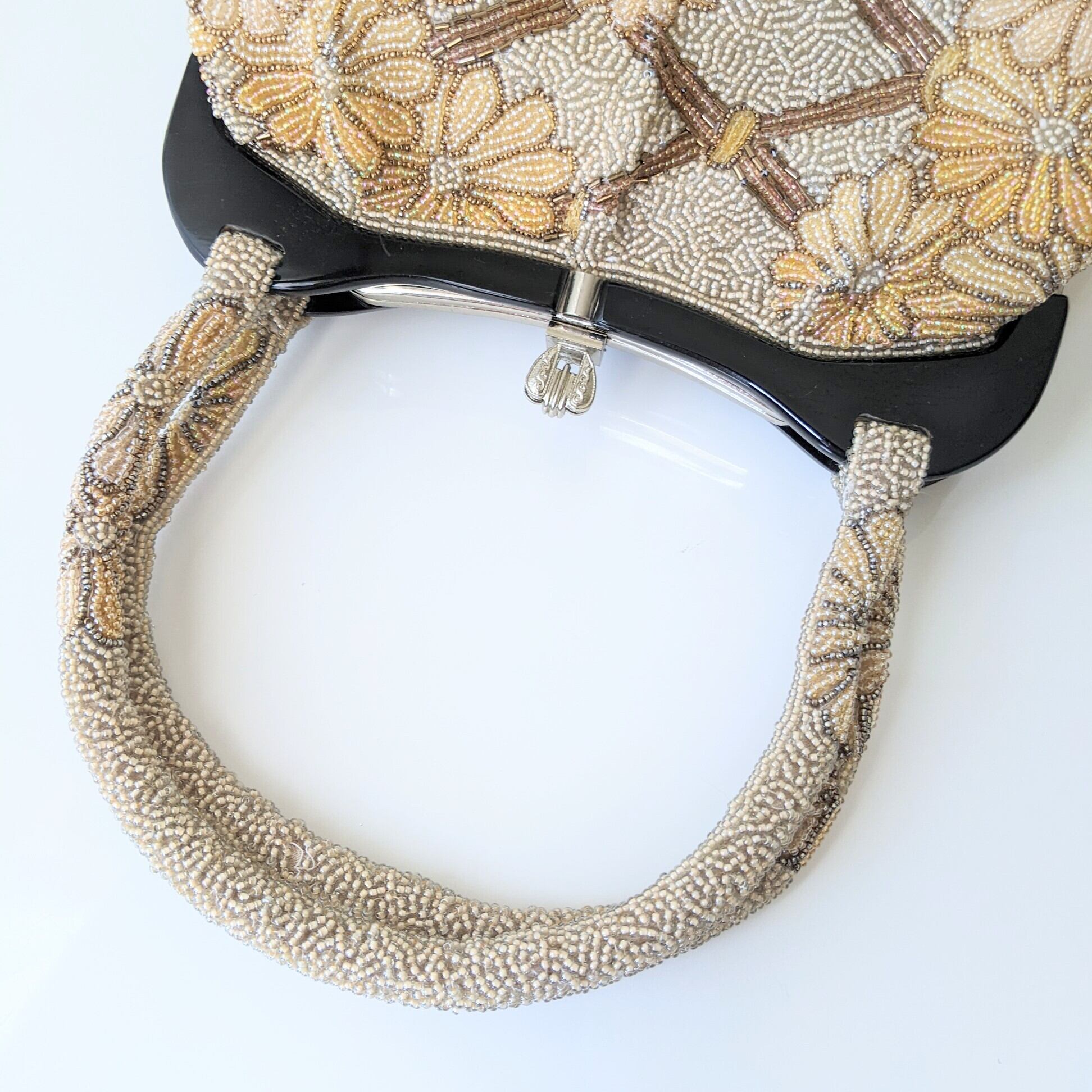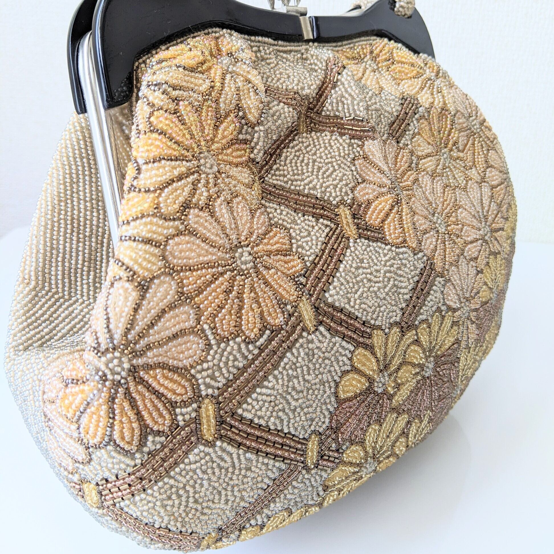 光を受けて美しく輝くヴィンテージビーズバッグ。