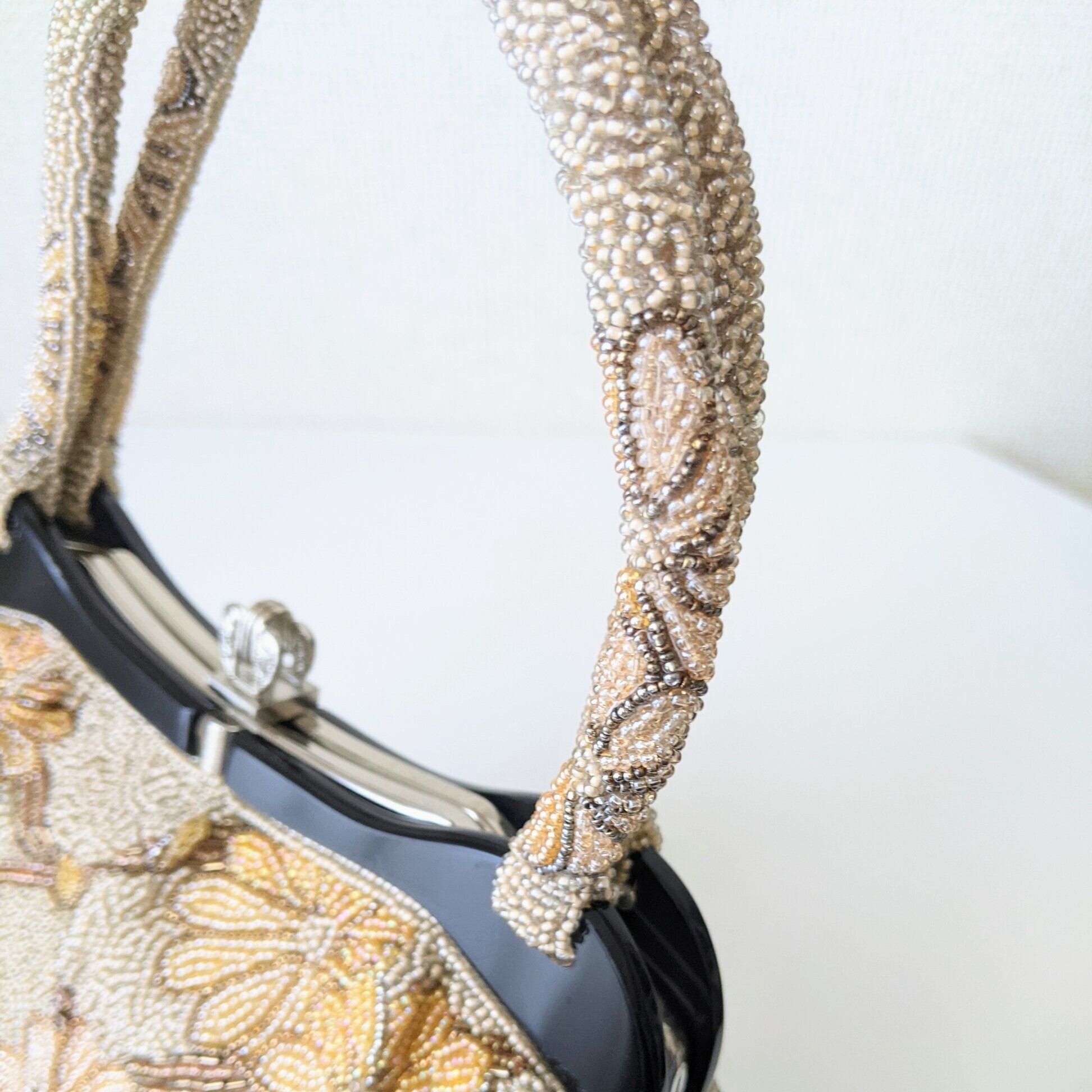 ビーズバッグの楽しみは、何と言っても手編みのビーズ刺繍。職人が一つ一つ丁寧に手作業で編み上げた、贅沢で美しいディテールです。