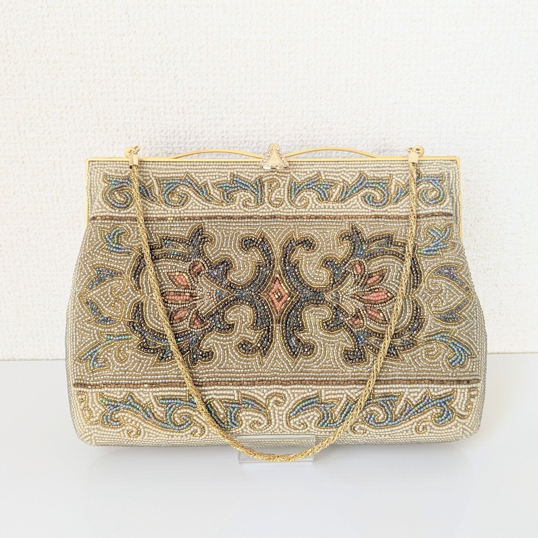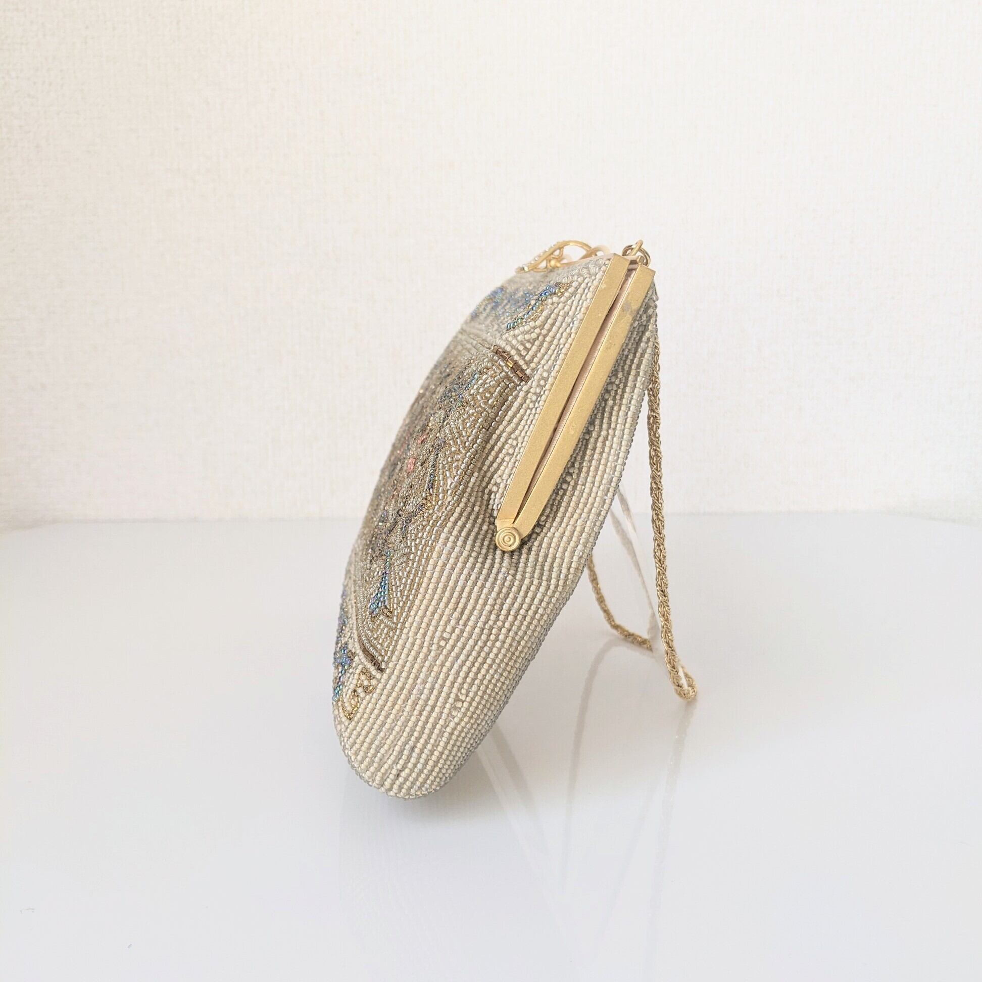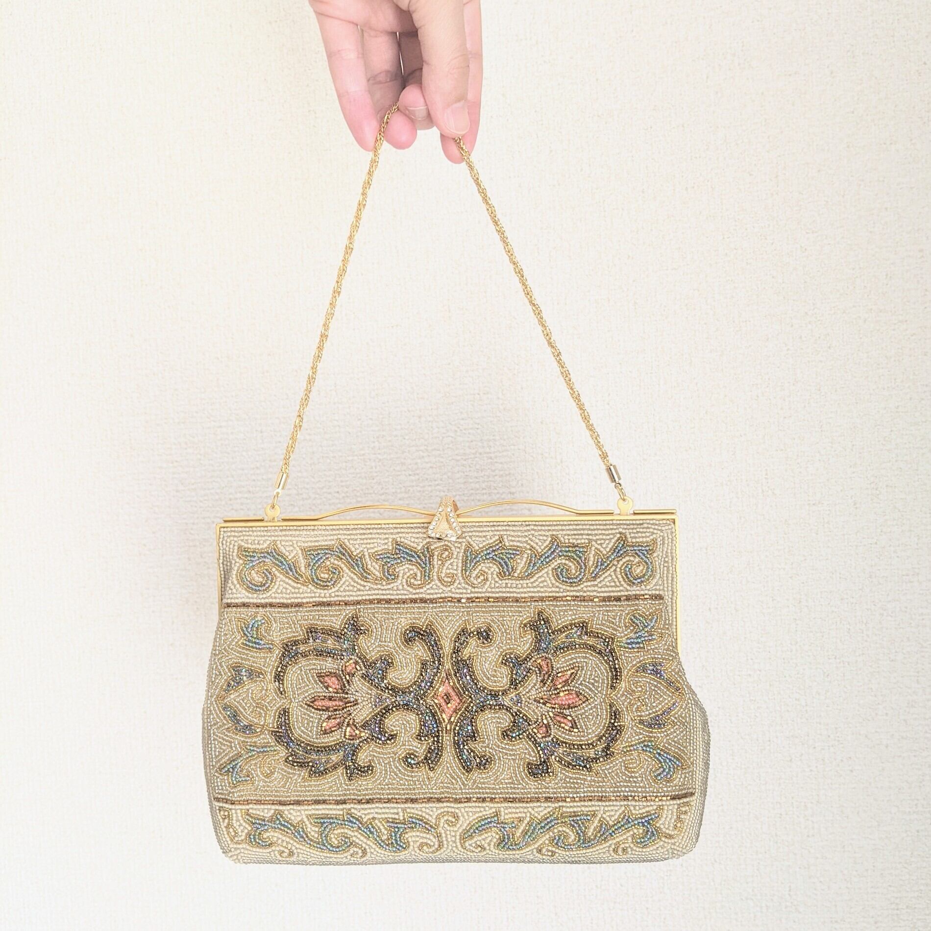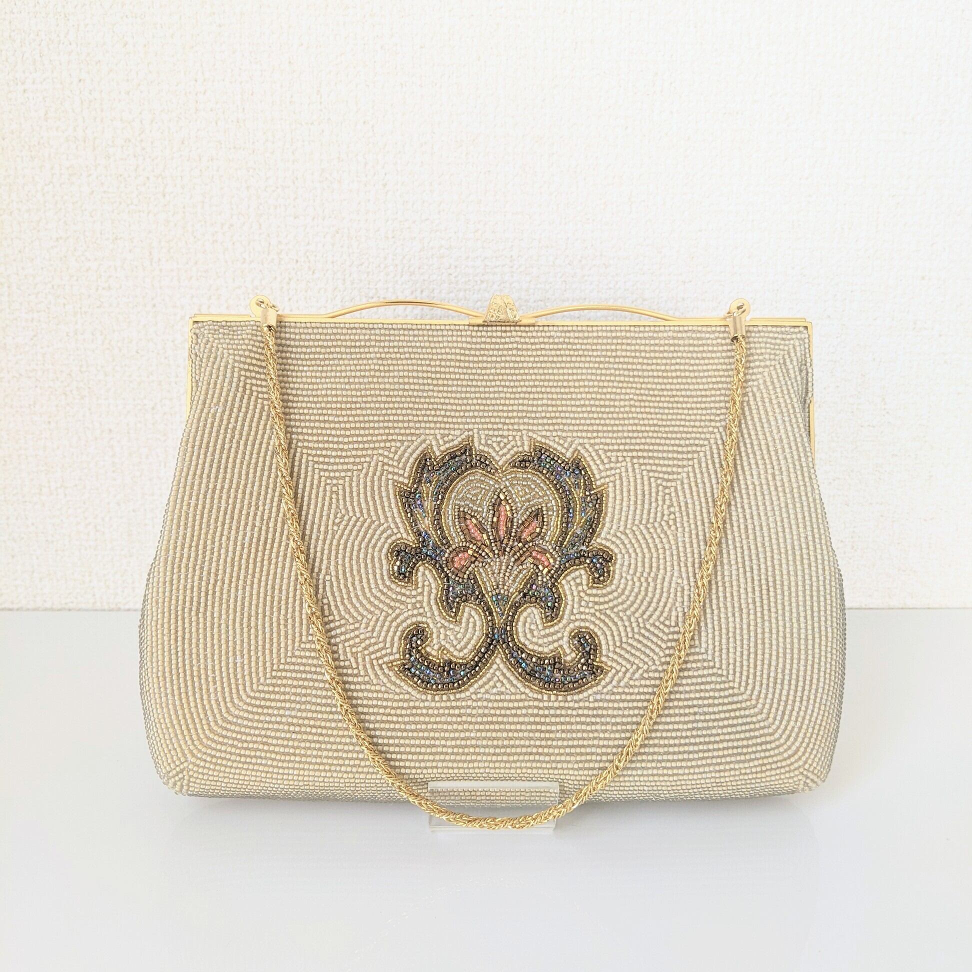 【Vintage】ビーズ刺繍バッグ Vintage Beaded Bag ゴールドチェーン アラベスク模様 パーティーバッグ 昭和レトロ 大正浪漫 フォーマルバッグ