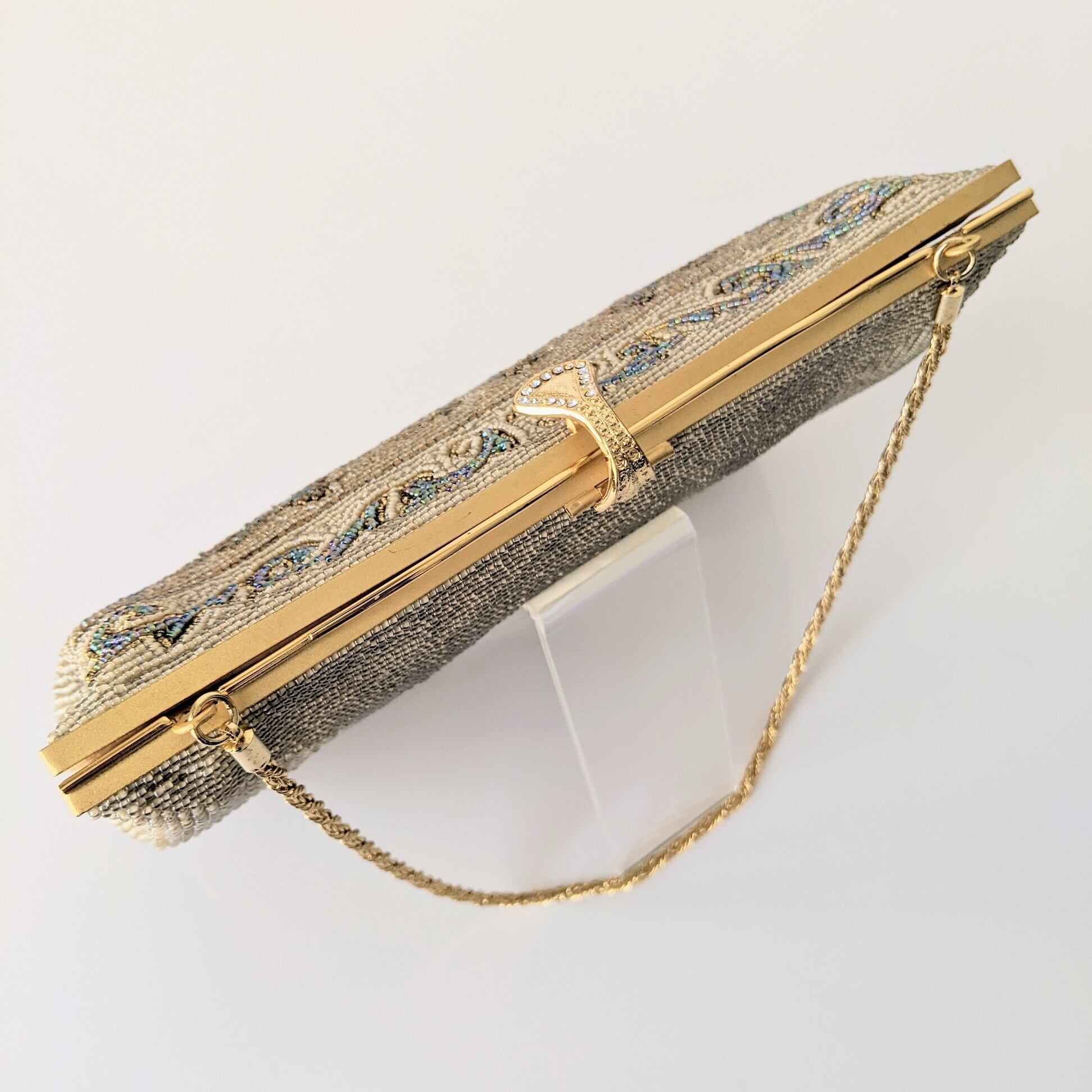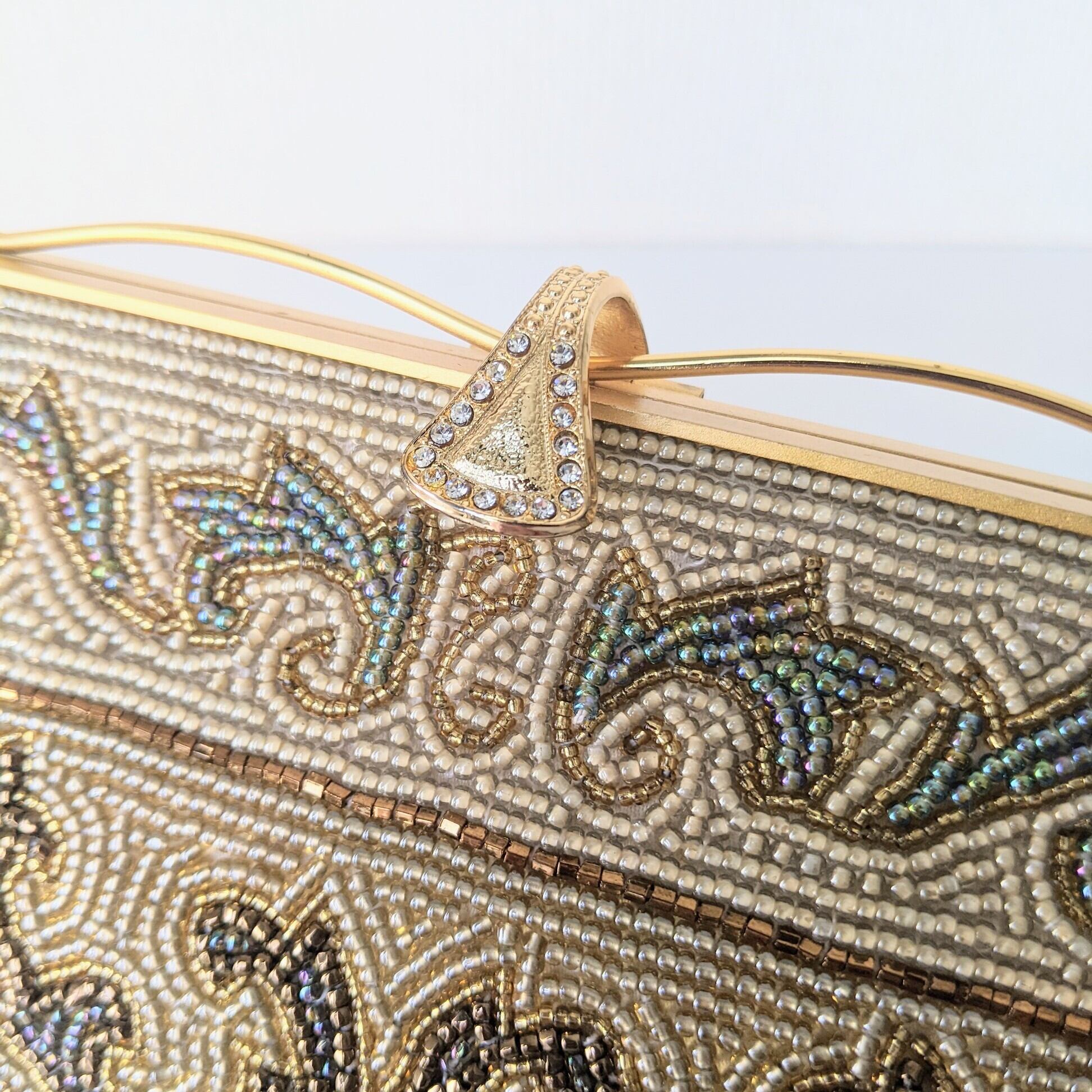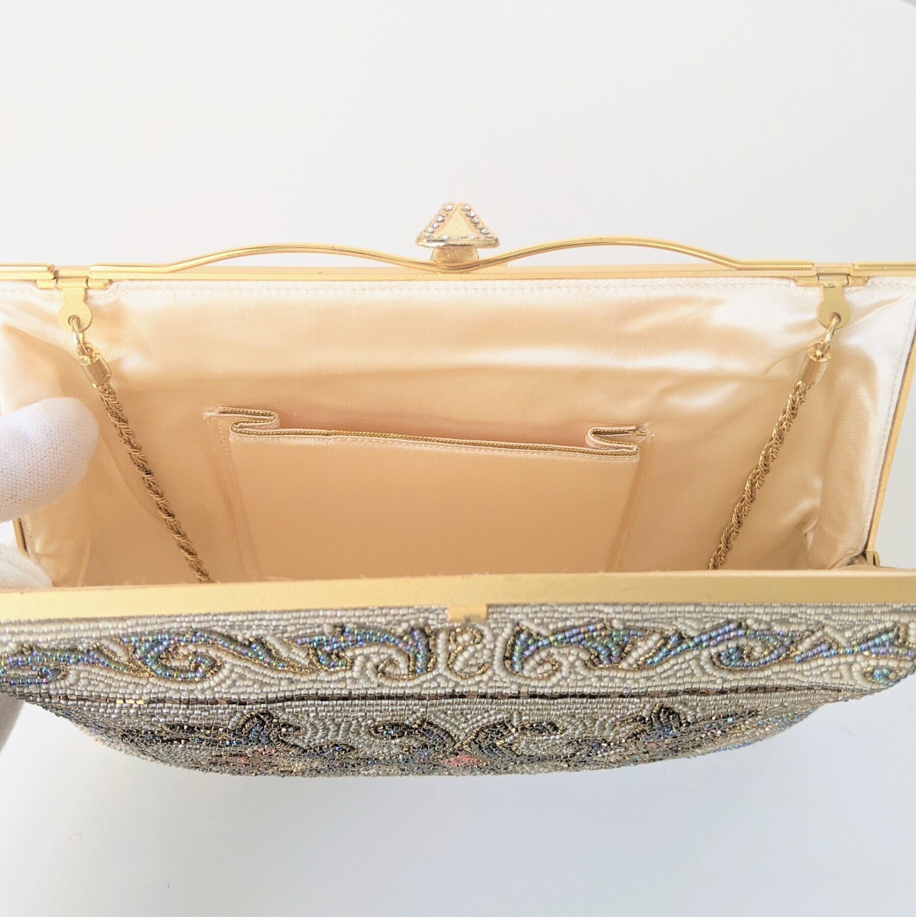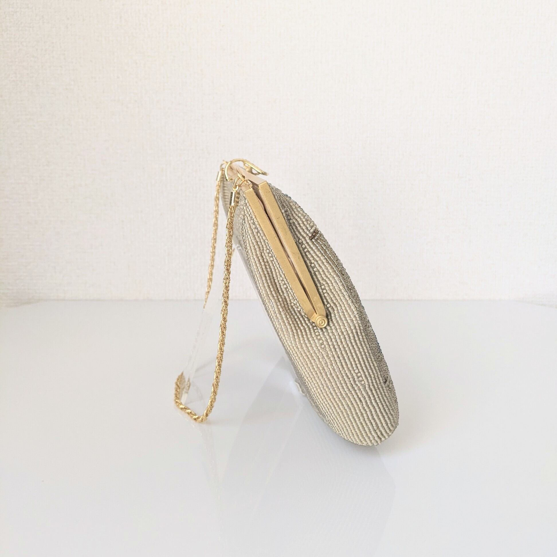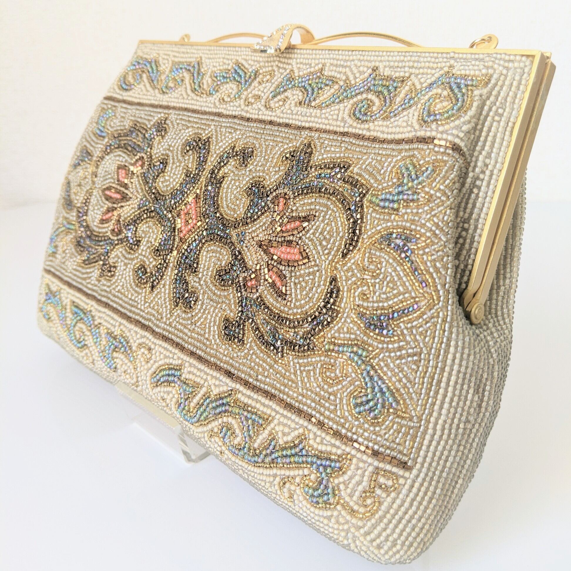 【Vintage】ビーズ刺繍バッグ Vintage Beaded Bag ゴールドチェーン アラベスク模様 パーティーバッグ 昭和レトロ 大正浪漫 フォーマルバッグ