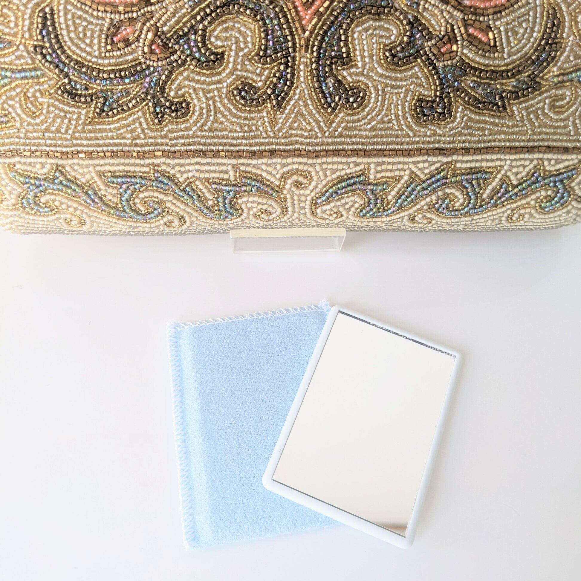 光を受けて美しく輝くヴィンテージビーズバッグ。