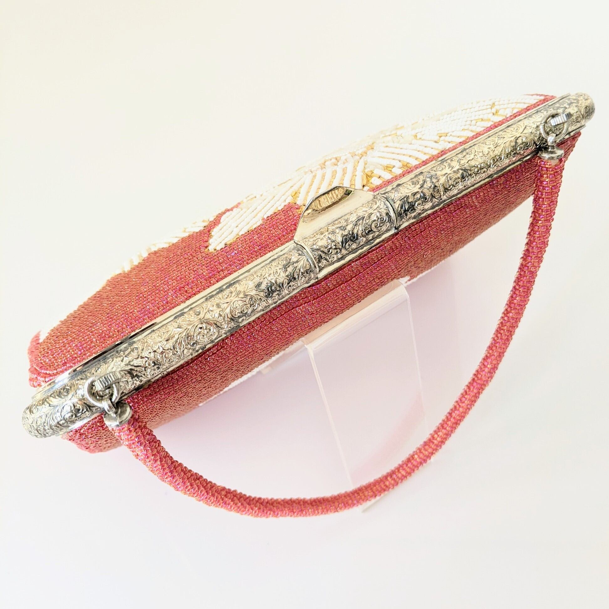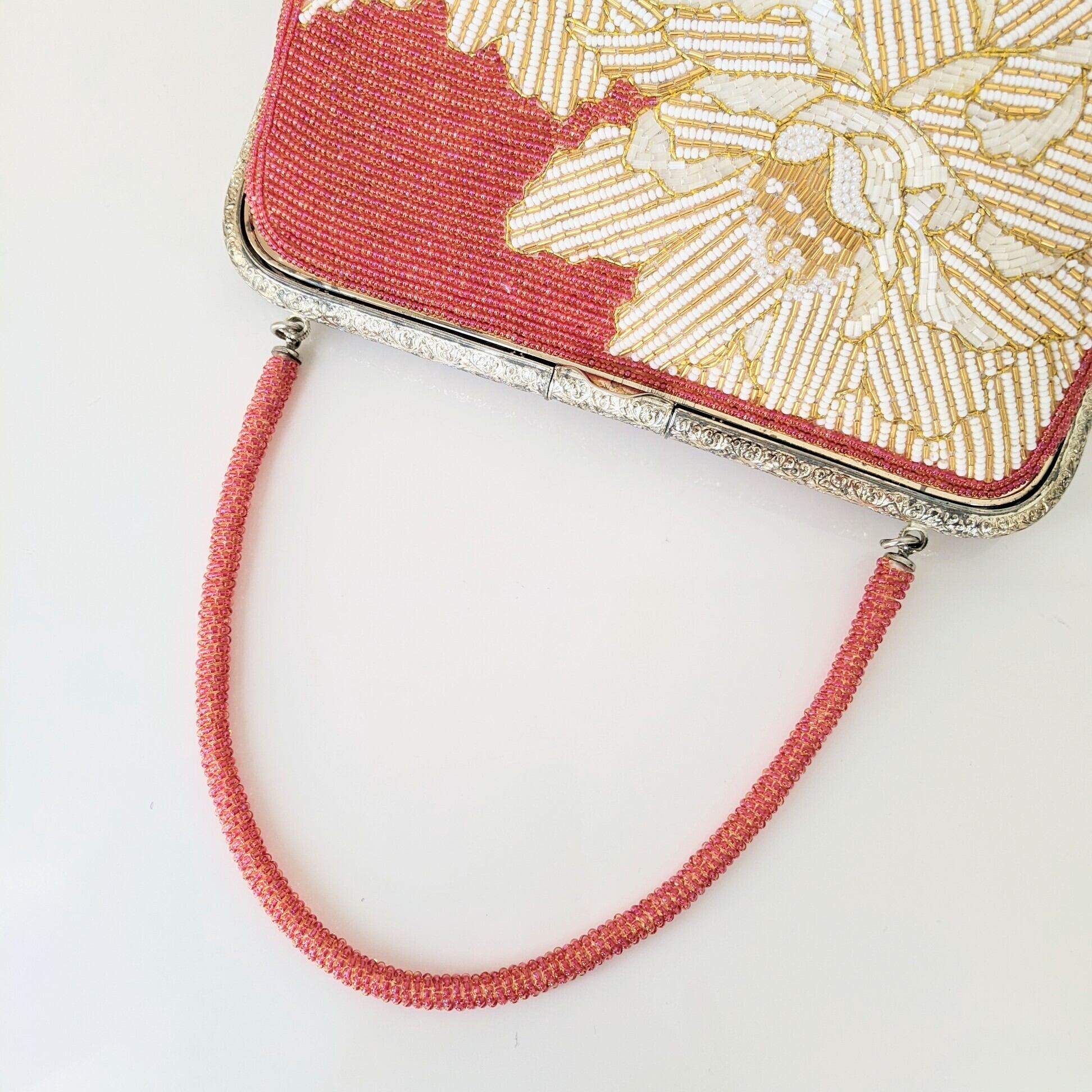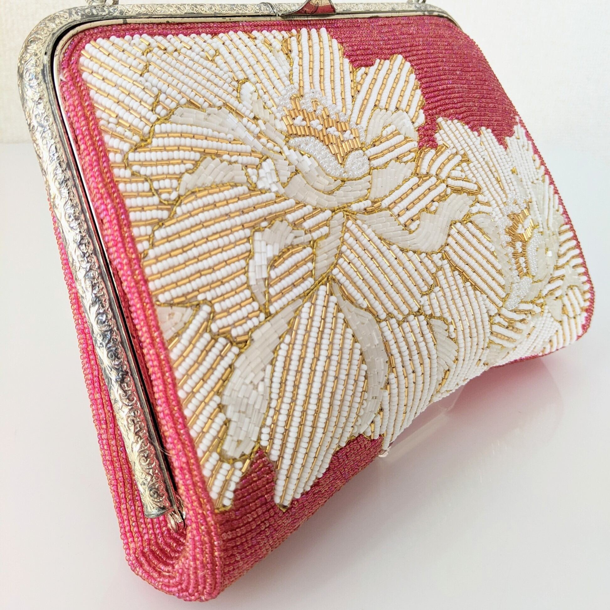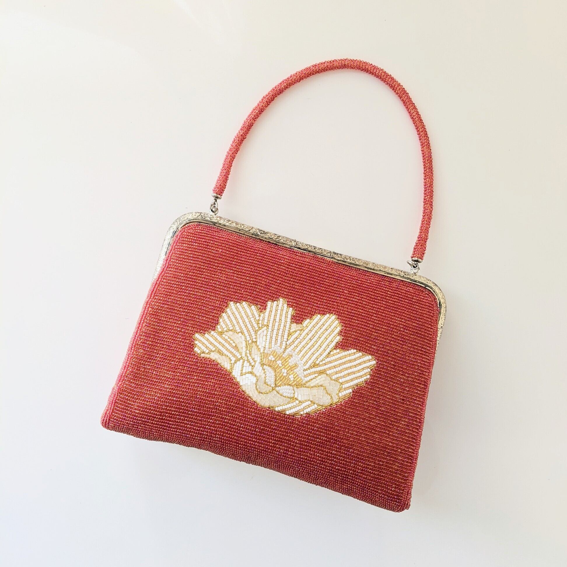 【Vintage】ビーズ刺繍バッグ Vintage Beaded Bag 牡丹 朱赤×ゴールド パーティーバッグ 昭和レトロ 大正浪漫 フォーマルバッグ