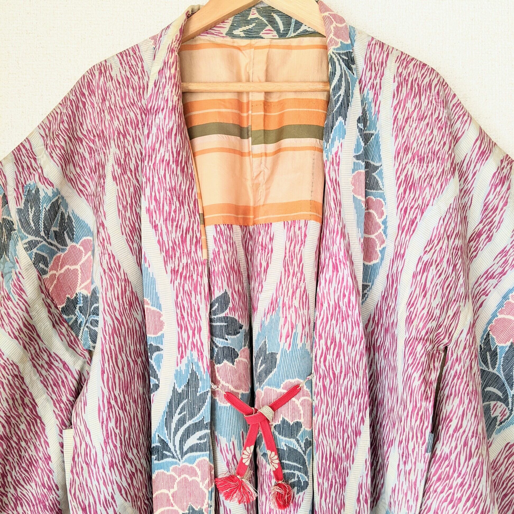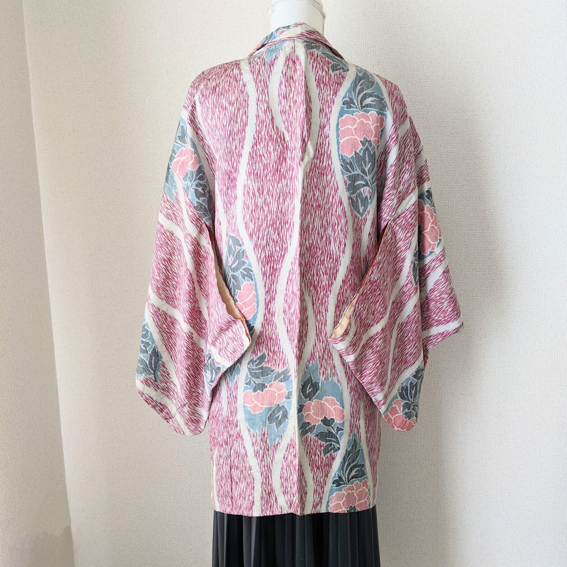【Antique】HAORI 長羽織り 正絹 立涌文様 大正浪漫 シルク 羽織袴 ジャケット コート