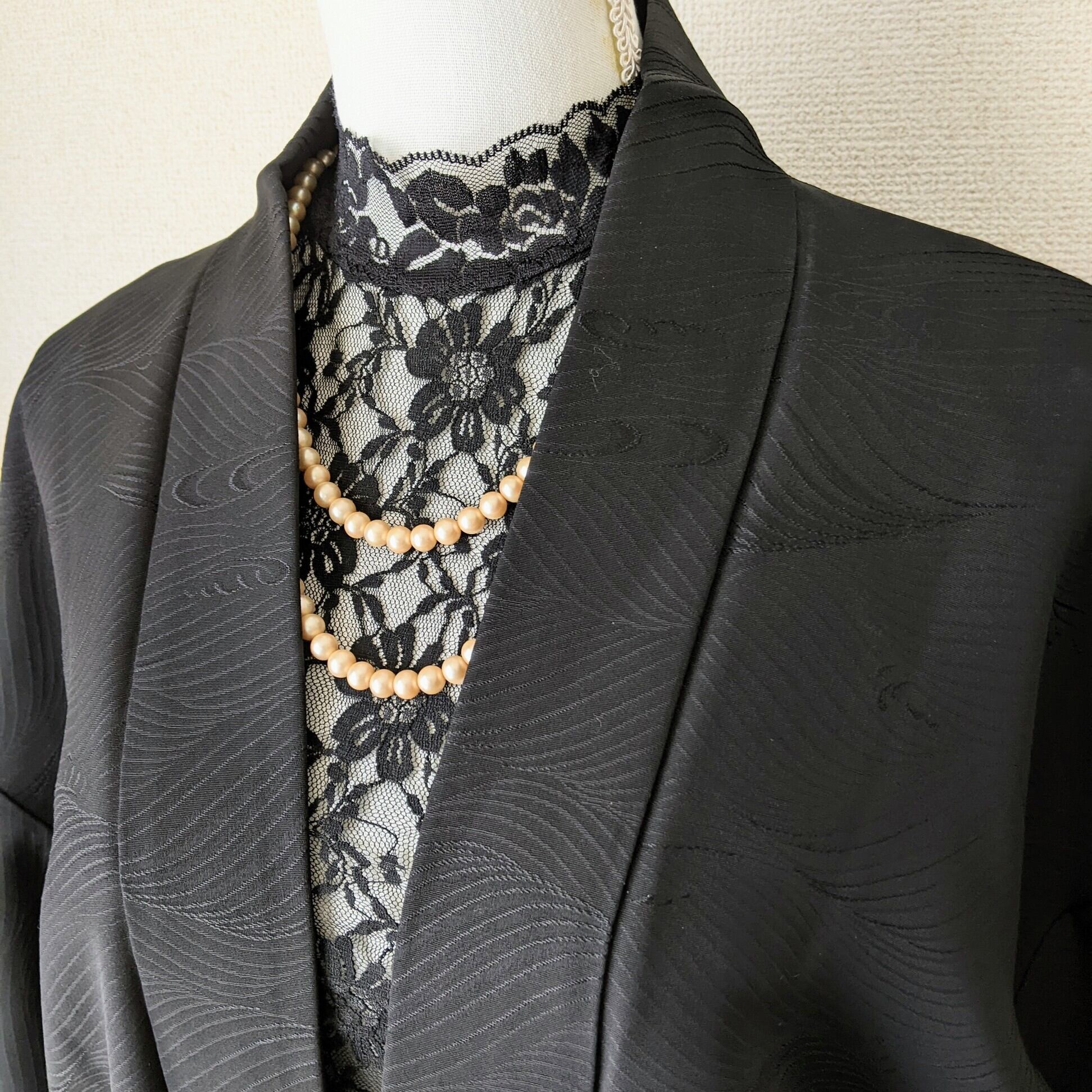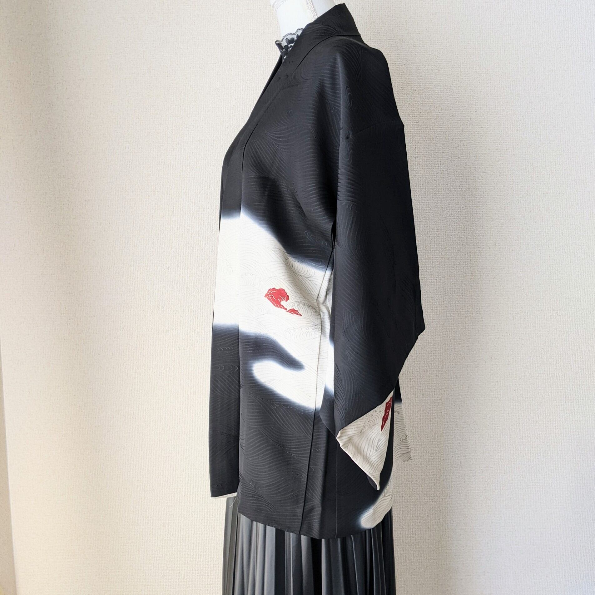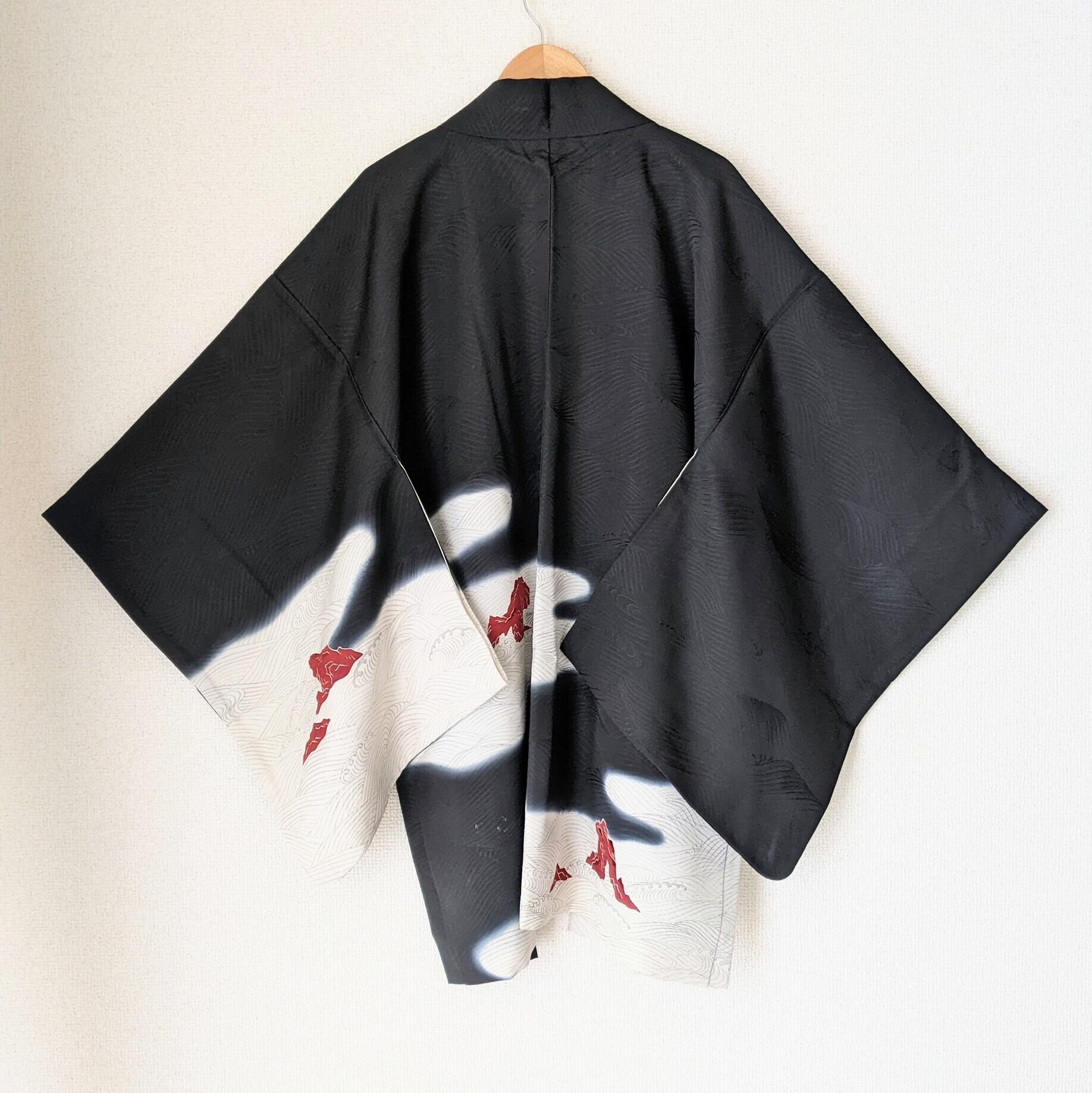 【Vintage】HAORI 羽織 正絹 黒羽織 暈し 荒波に岩 波紋 地紋 シルク 大正浪漫 和洋折衷