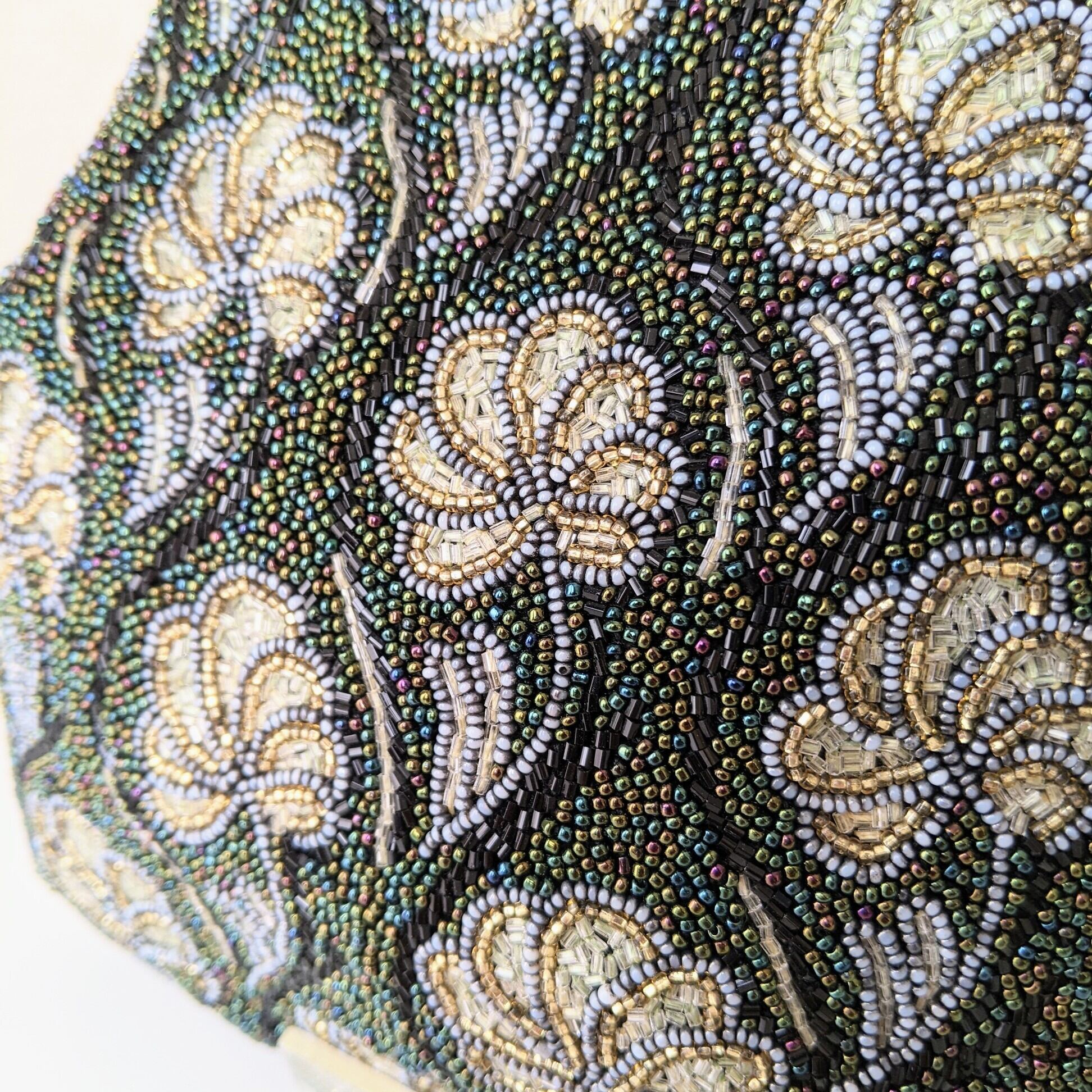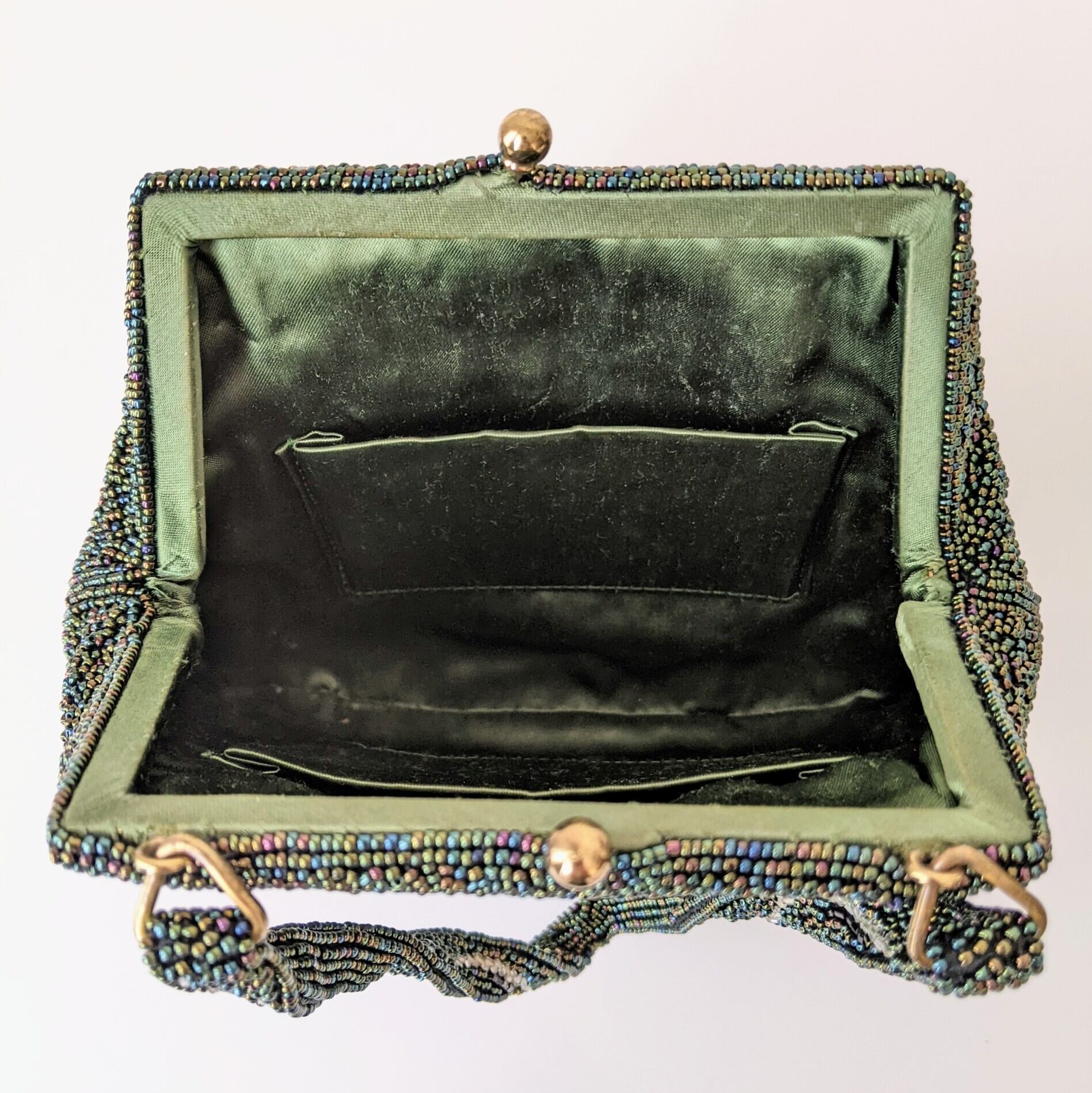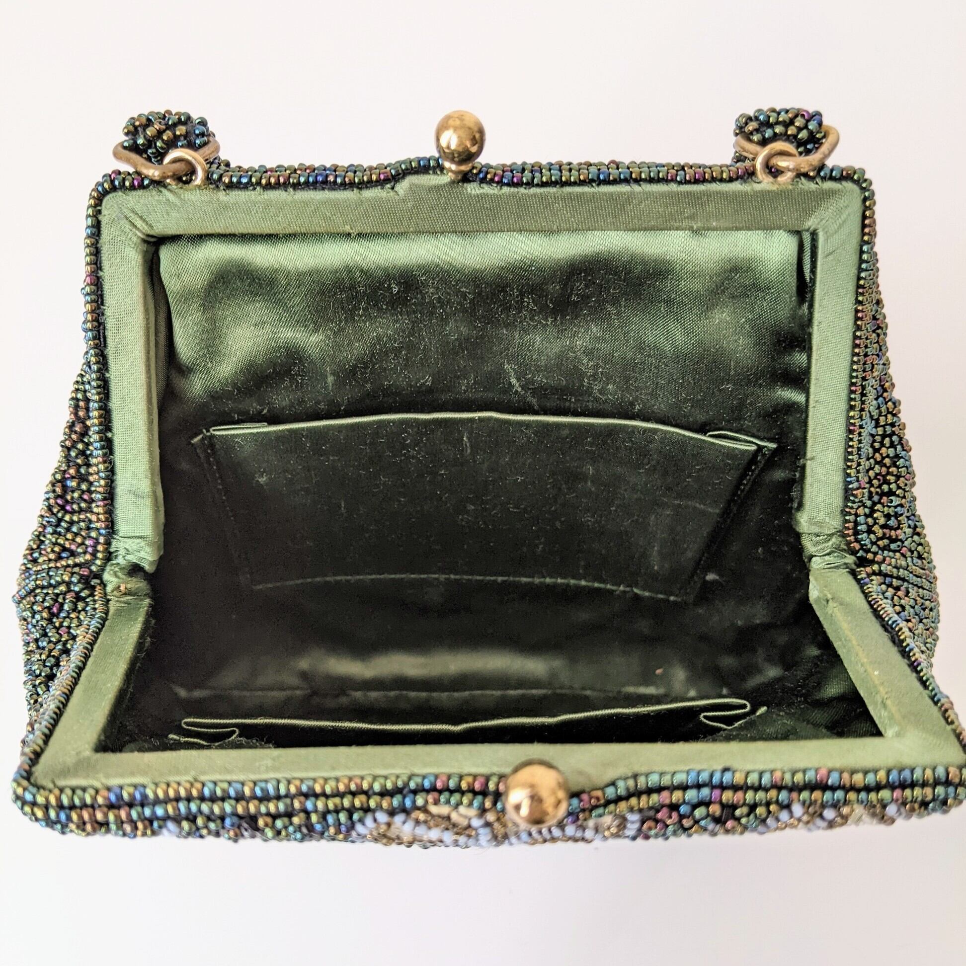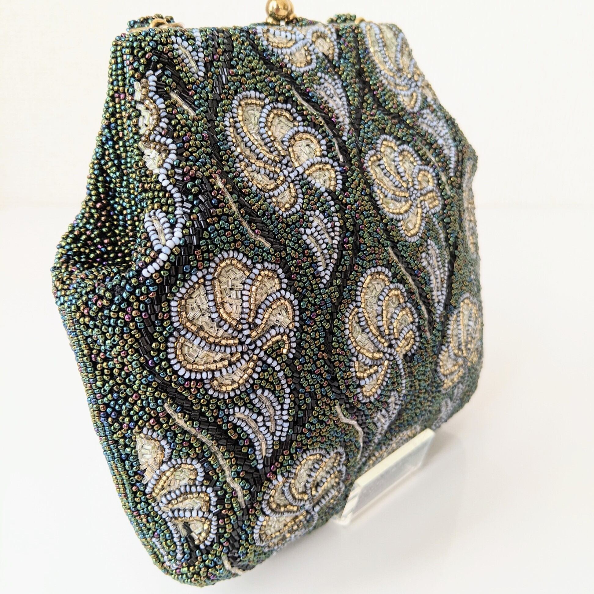 【Vintage】ビーズ刺繍バッグ Vintage Beaded Bag 深緑 花模様 パーティーバッグ 昭和レトロ 大正浪漫 フォーマルバッグ