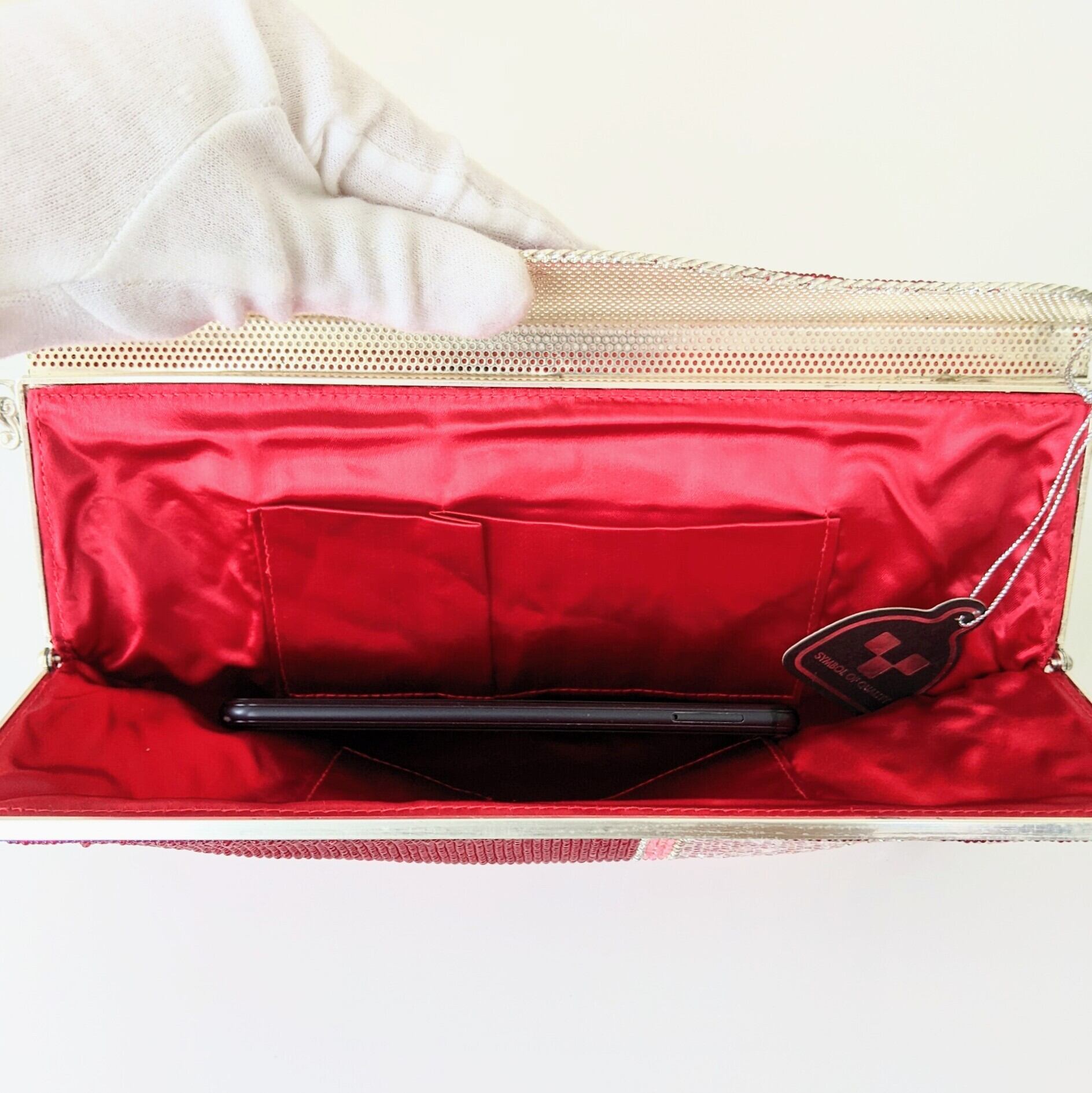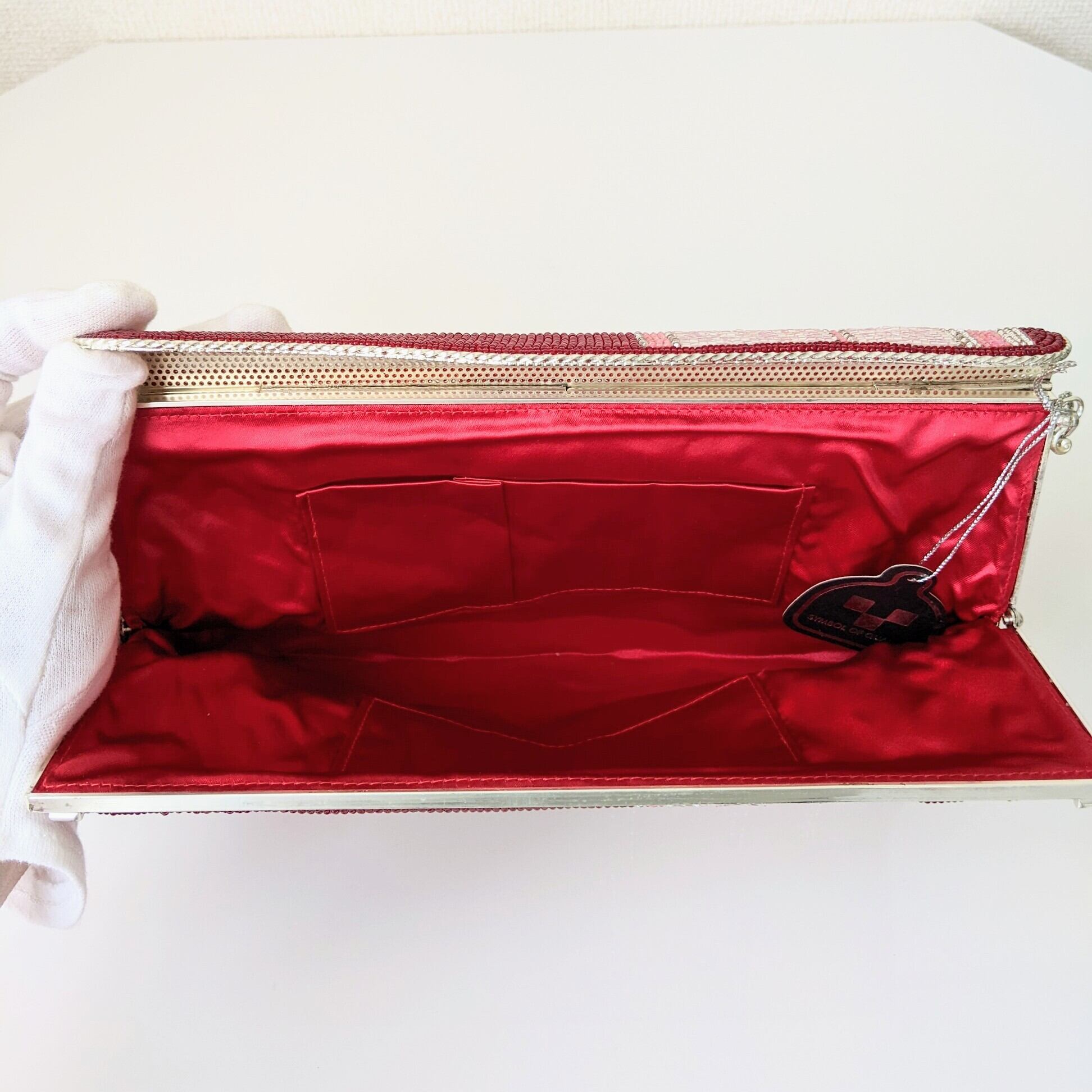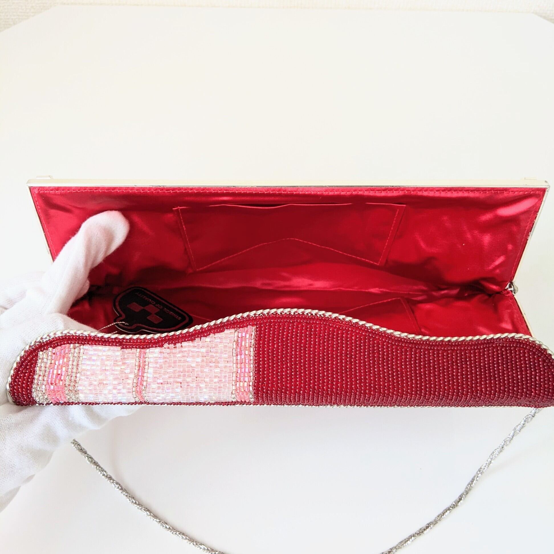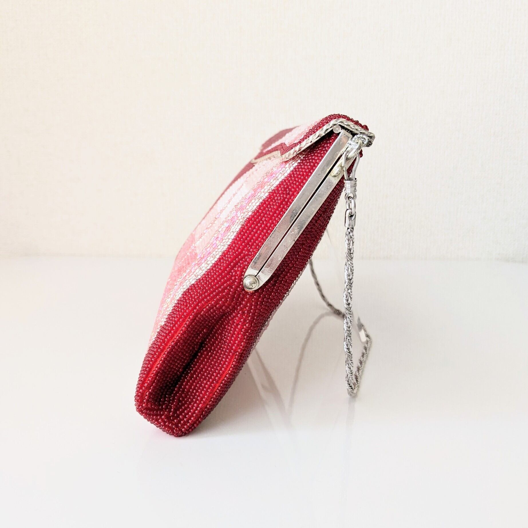 【Vintage】ビーズ刺繍バッグ Vintage Beaded Bag 赤 縞模様 チェーンハンドル パーティーバッグ 昭和レトロ 大正浪漫 フォーマルバッグ