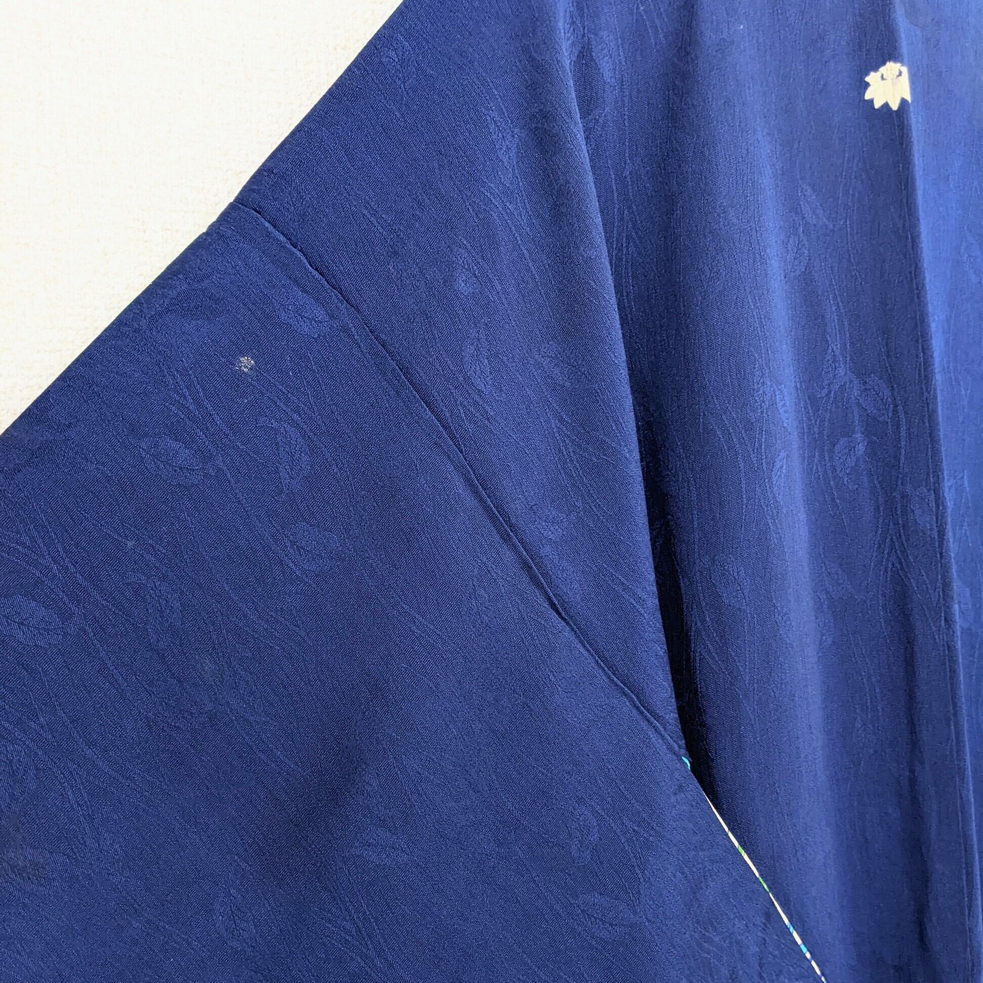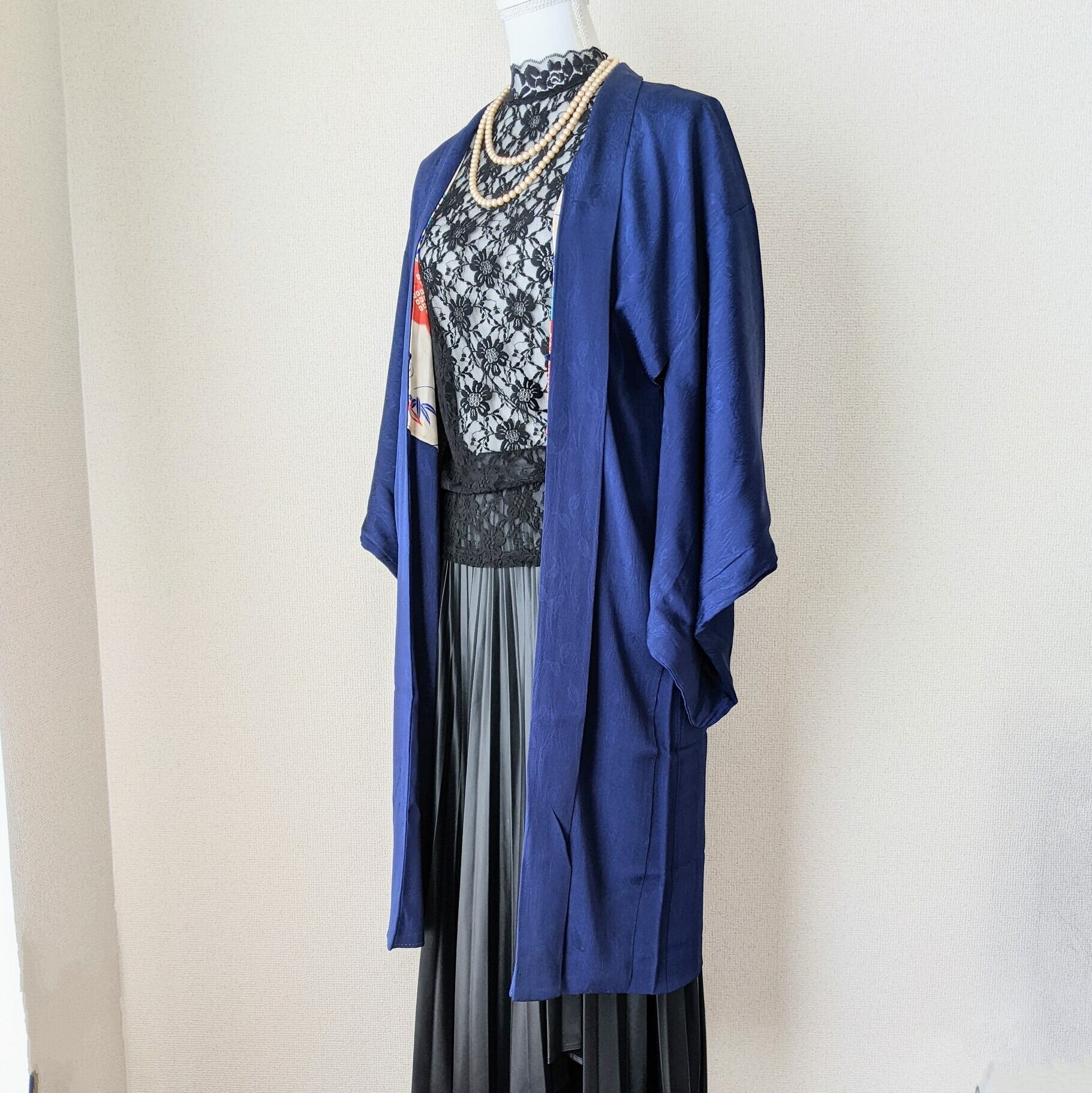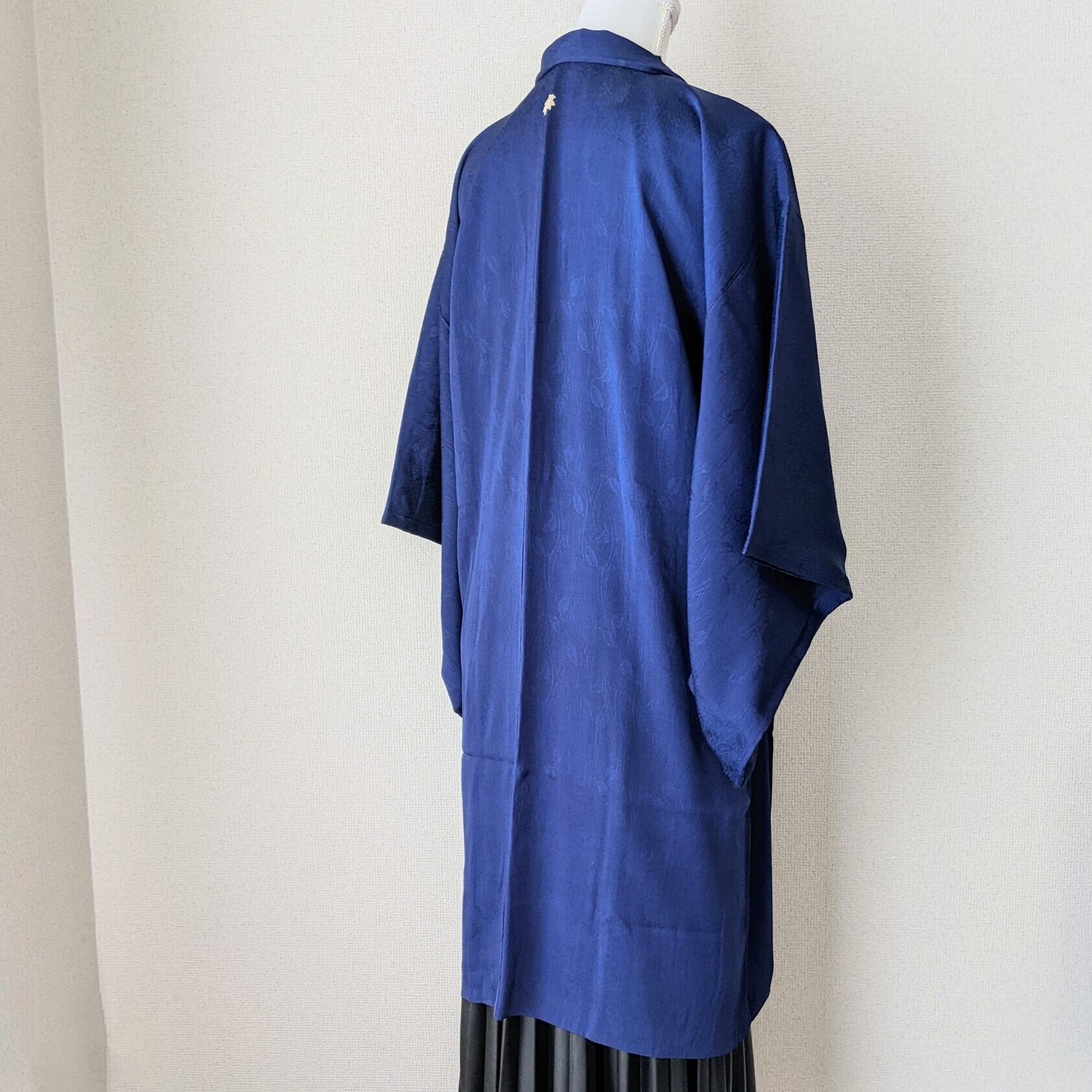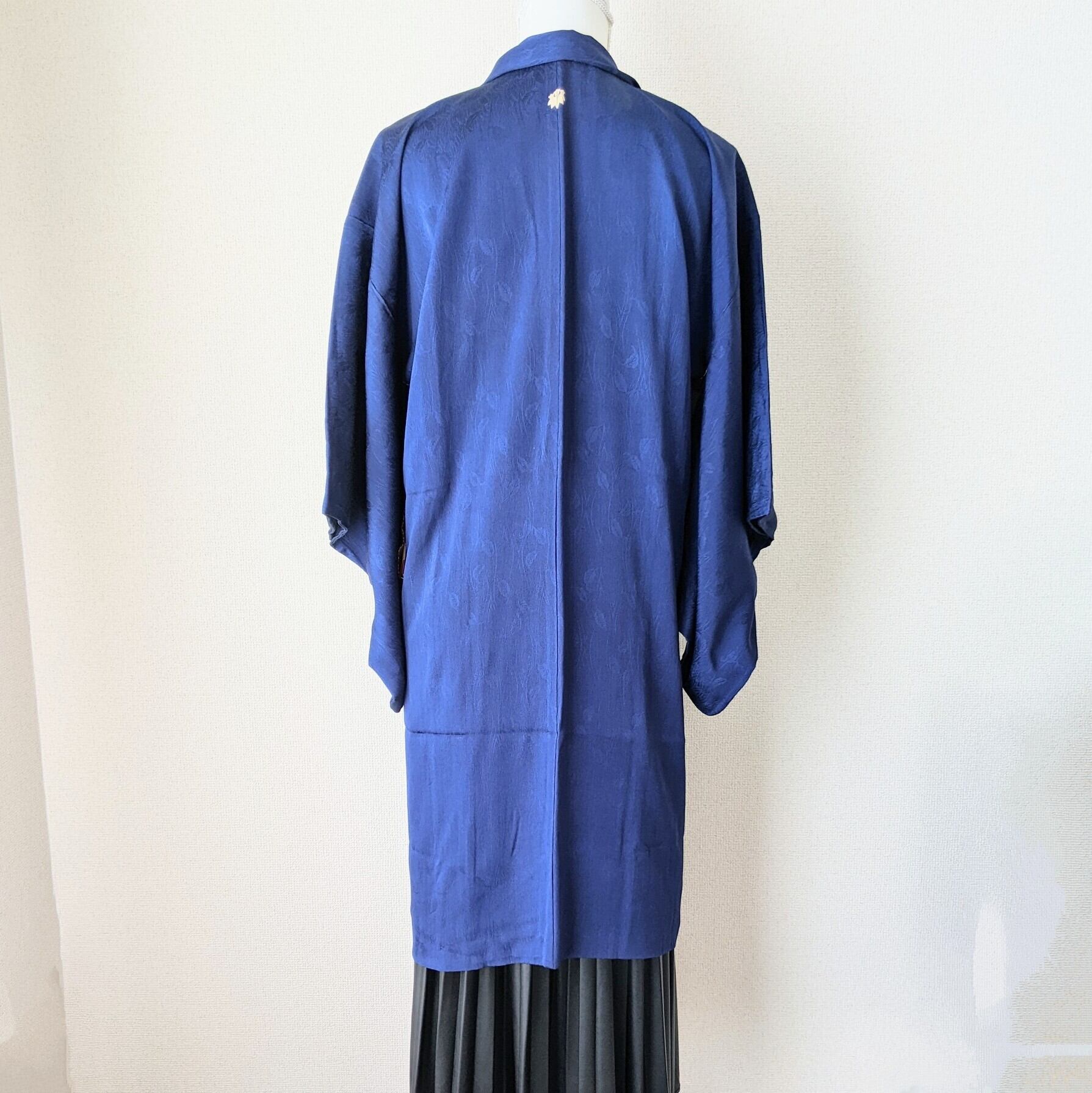 【Vintage】HAORI 長羽織 羽織 正絹 青 色無地 裏地が可愛い 一つ紋 シルク 大正浪漫 和洋折衷