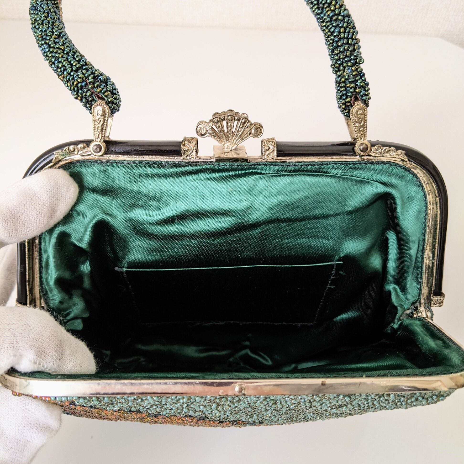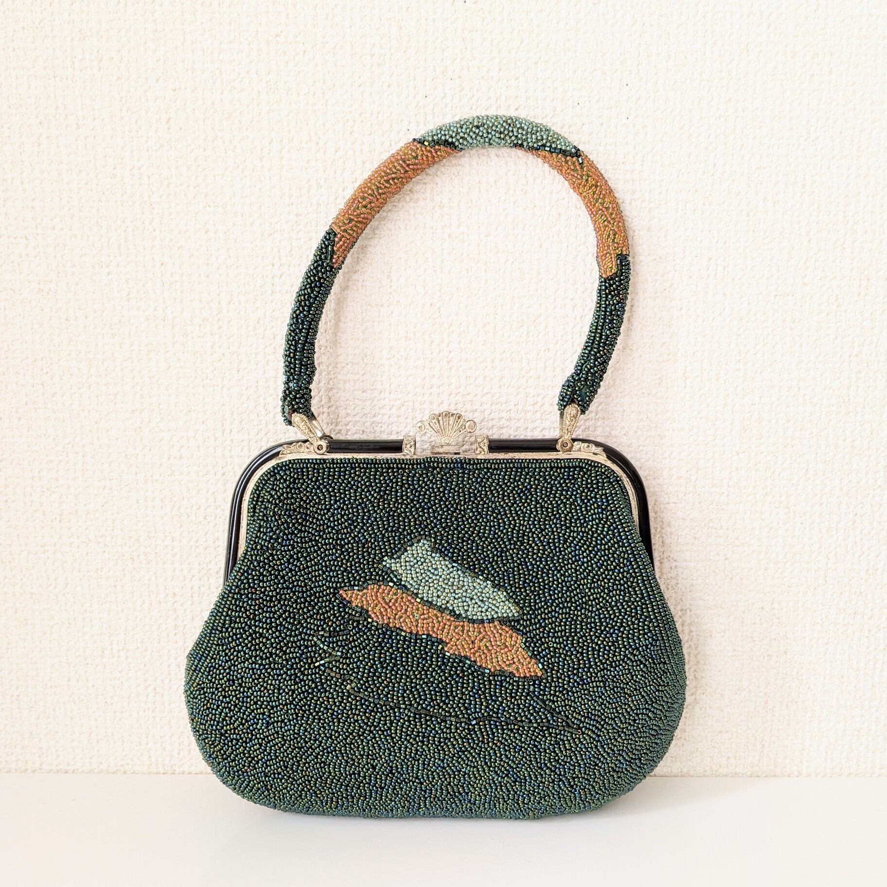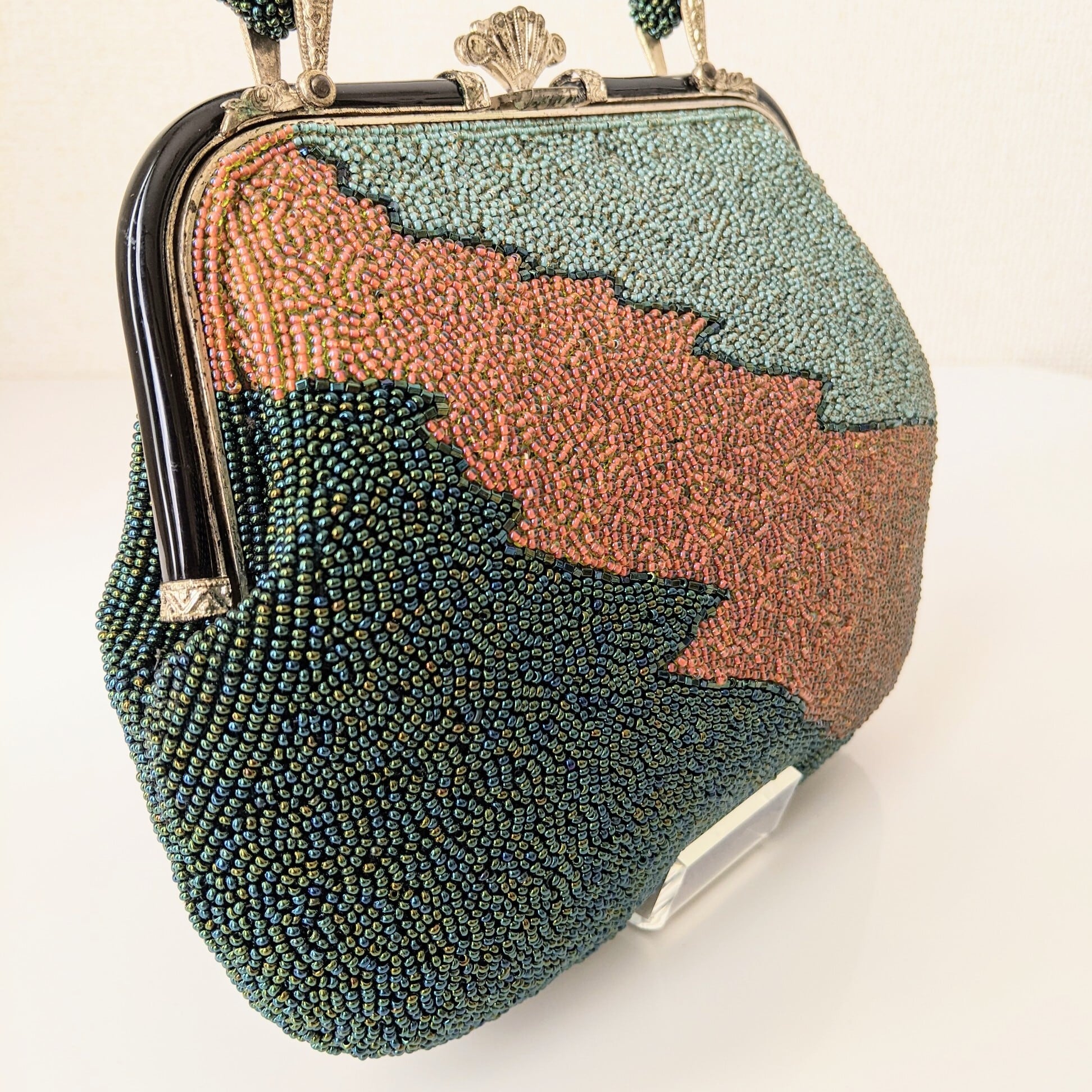 光を受けて美しく輝くヴィンテージビーズバッグ。
