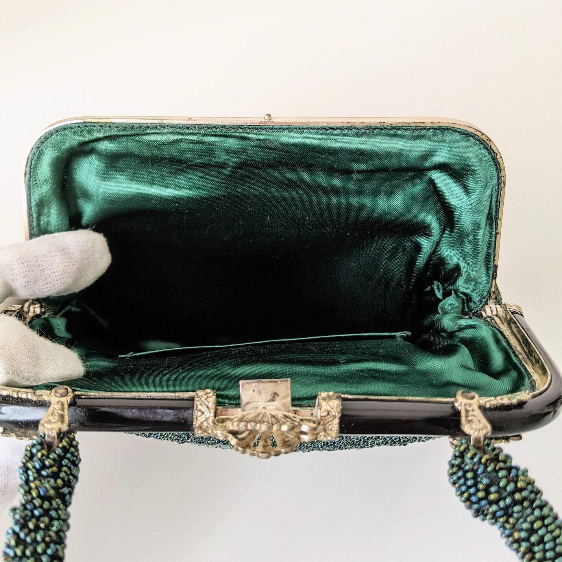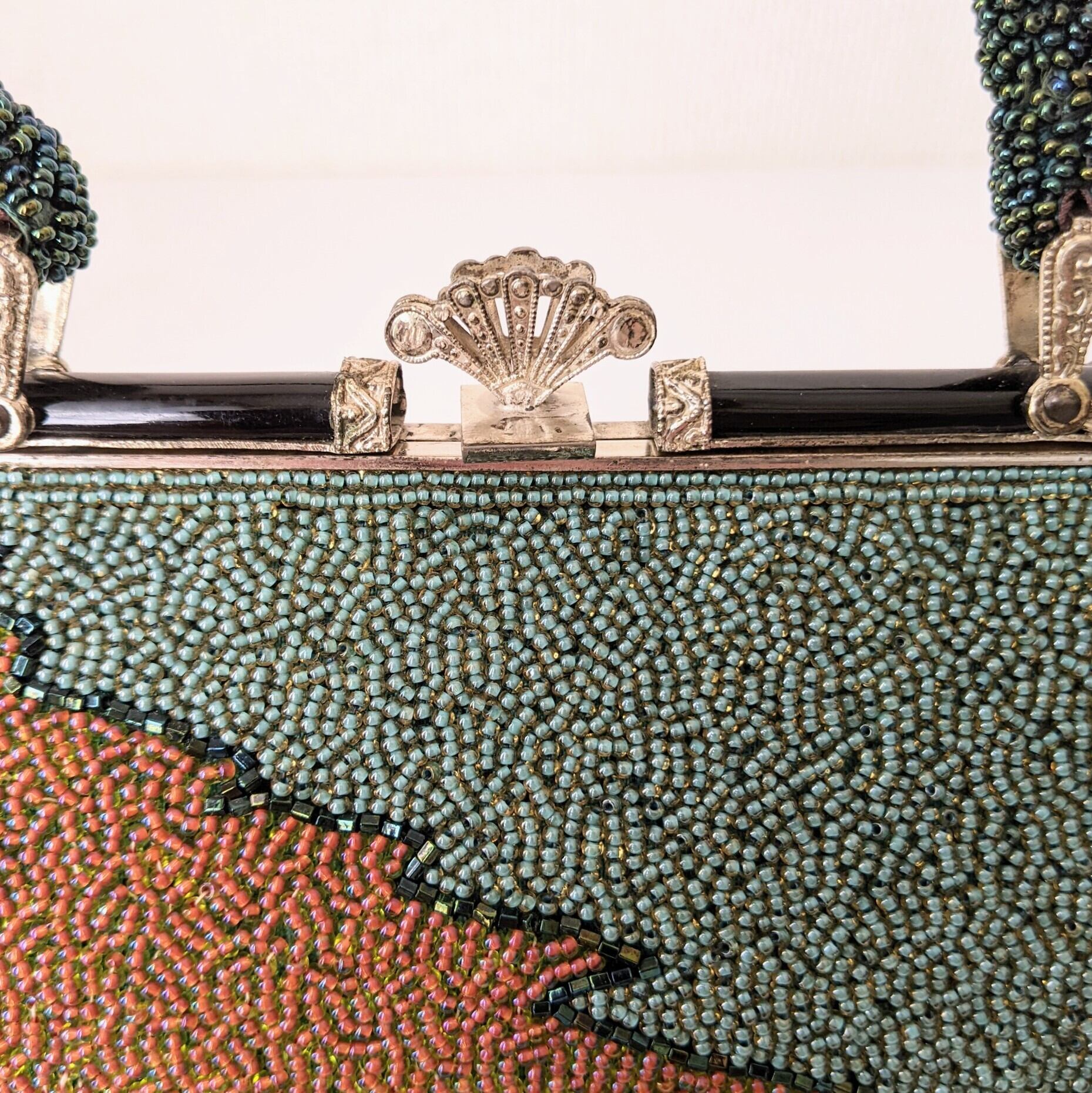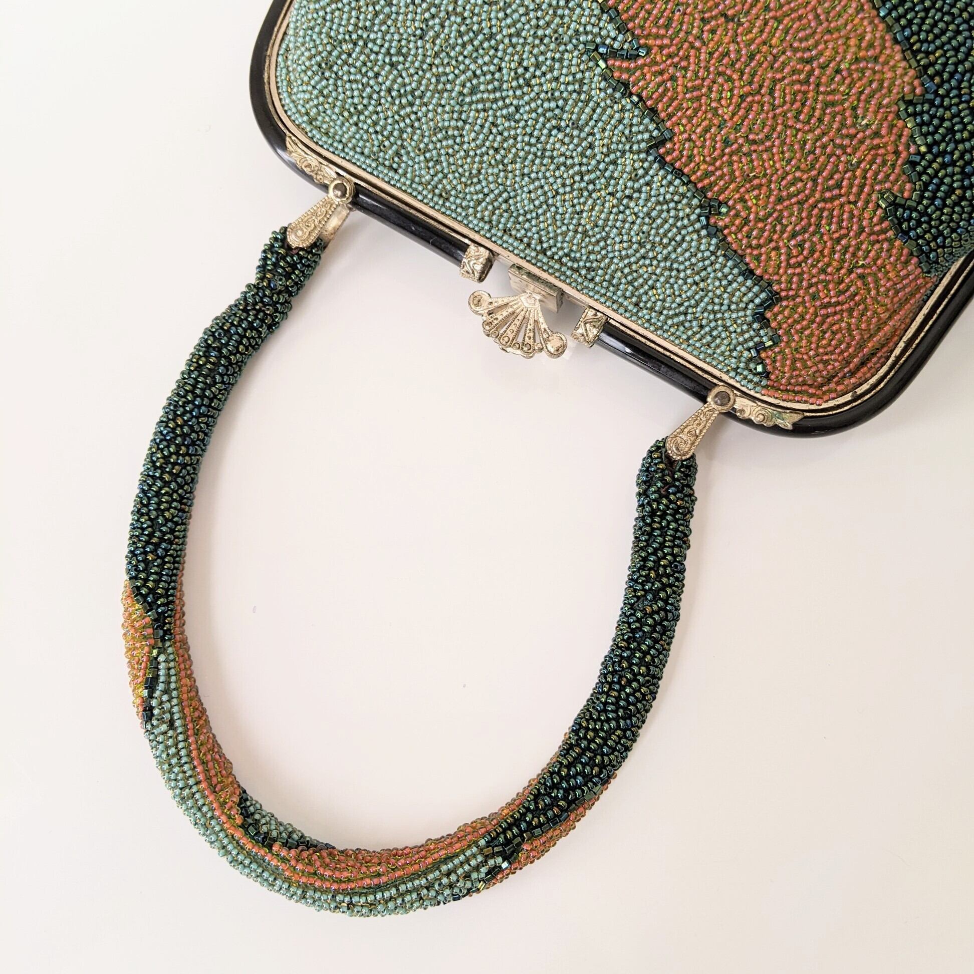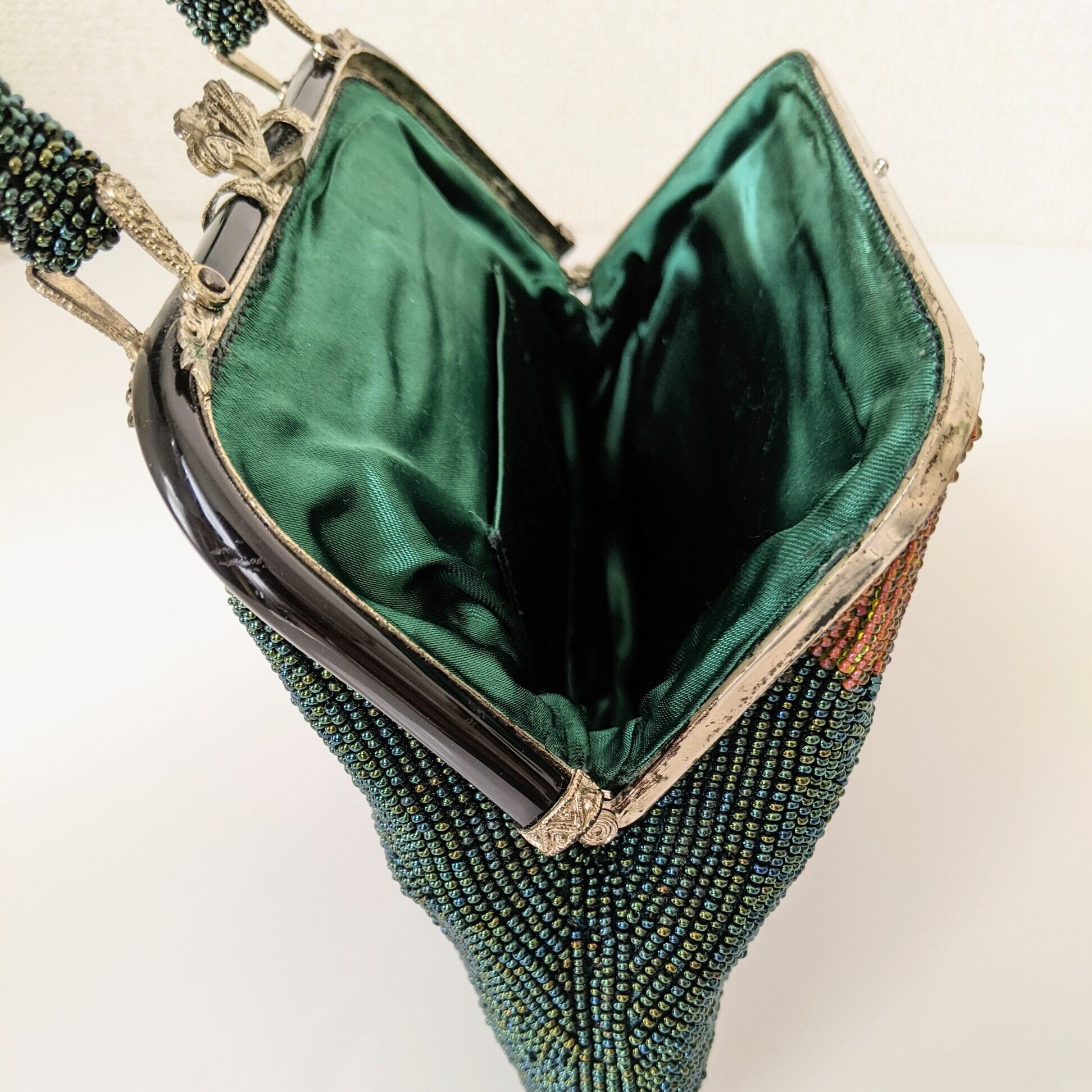 光を受けて美しく輝くヴィンテージビーズバッグ。