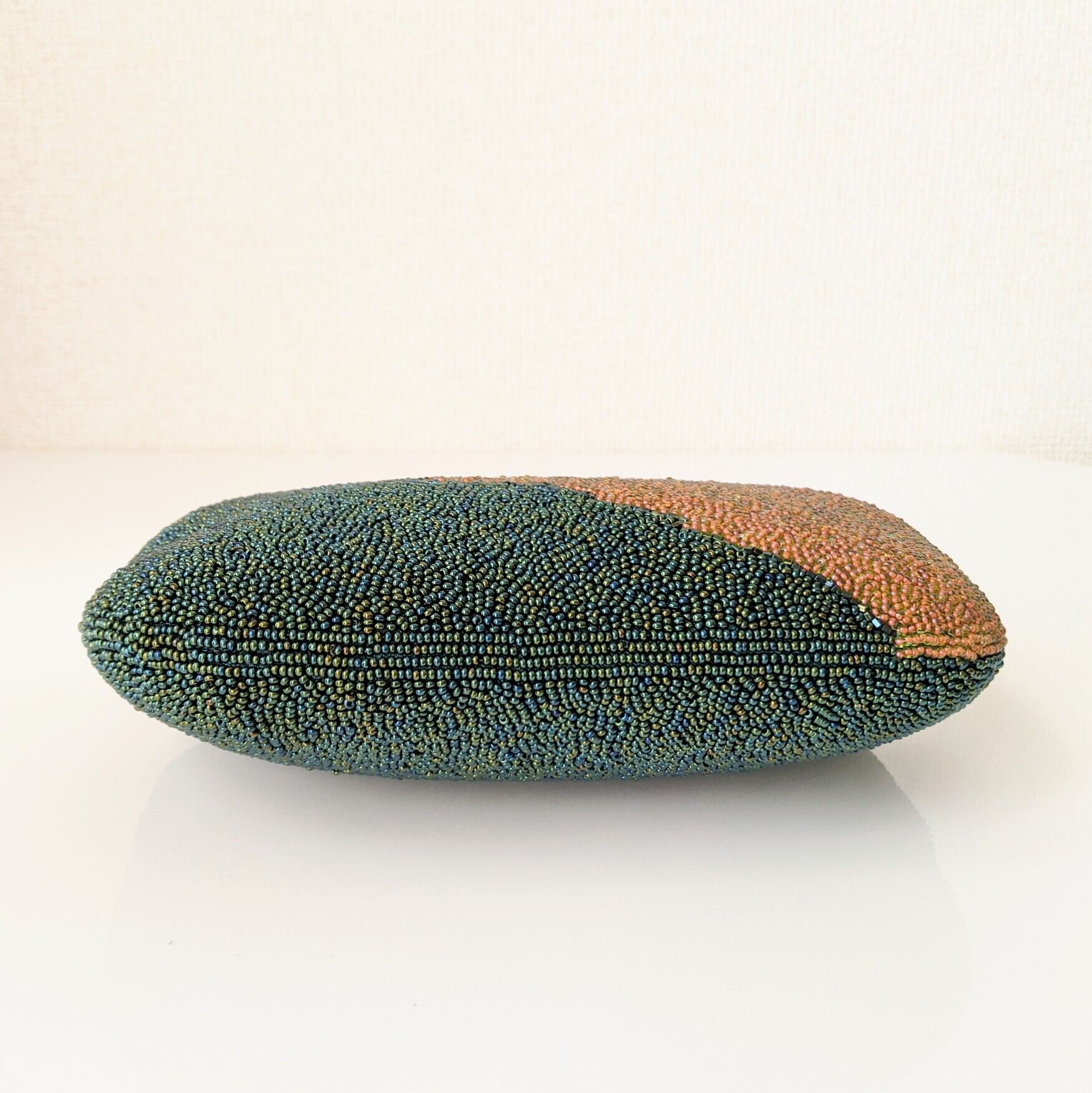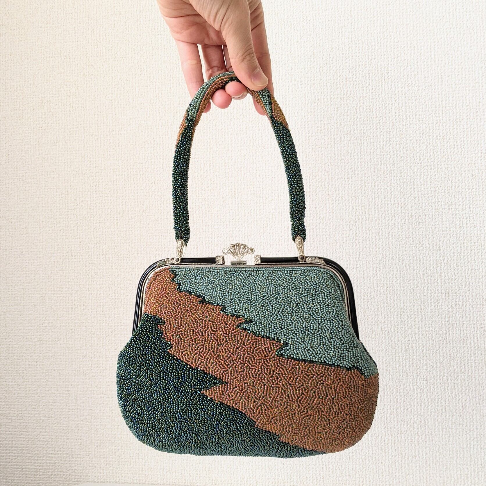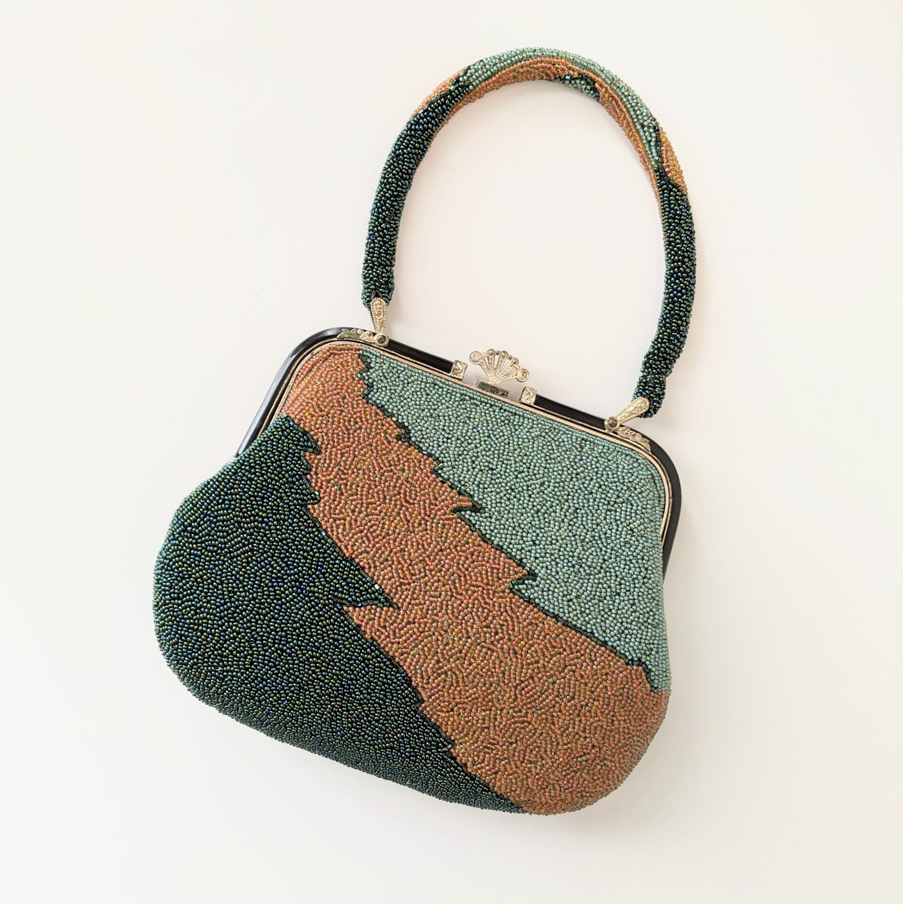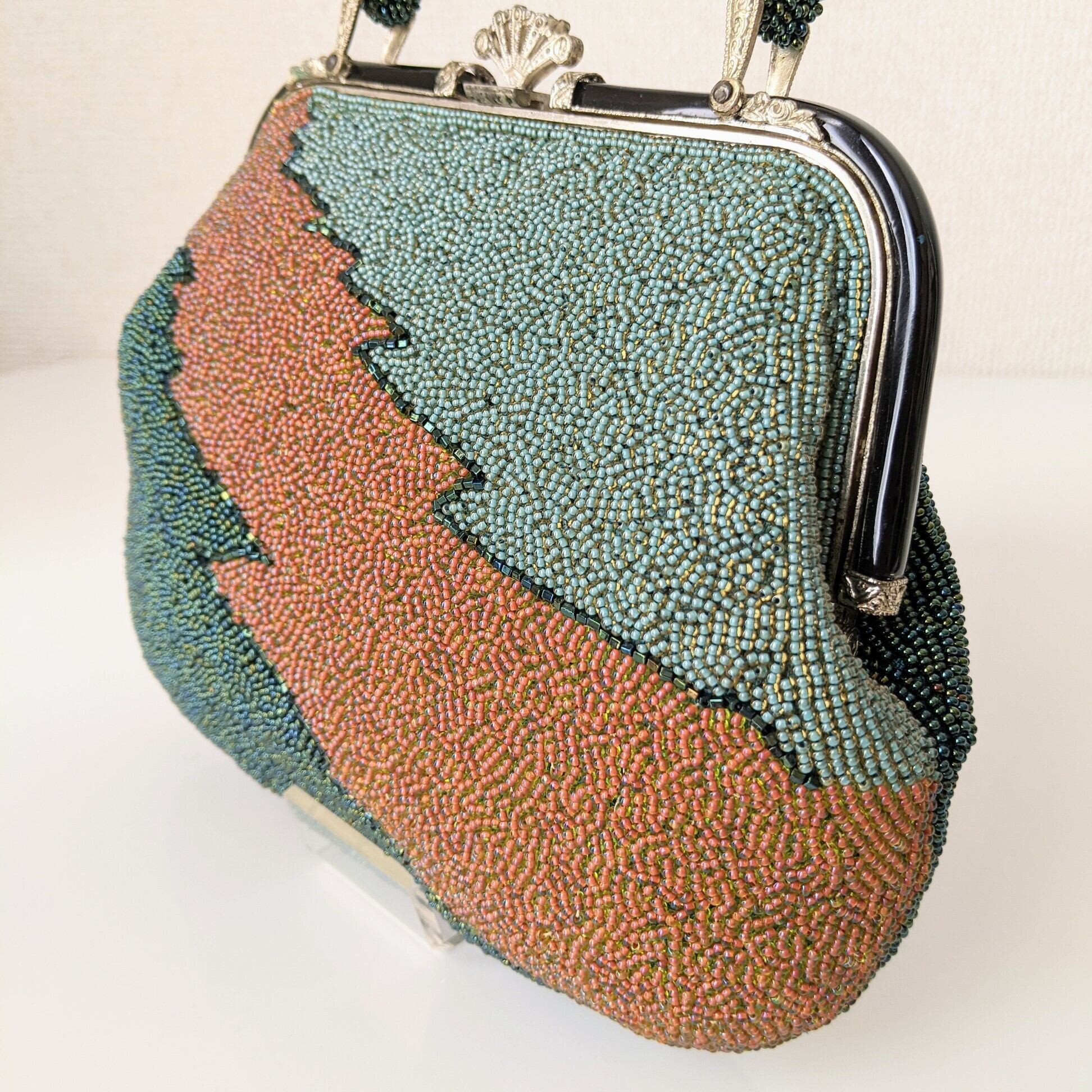 まるで稲妻の閃光が走っているような、(もちろん良い意味で)かなり攻めている斬新な柄のビーズバッグ。いろいろな想像を掻き立てられるところもビーズバッグの柄の楽しみ方の一つですね。