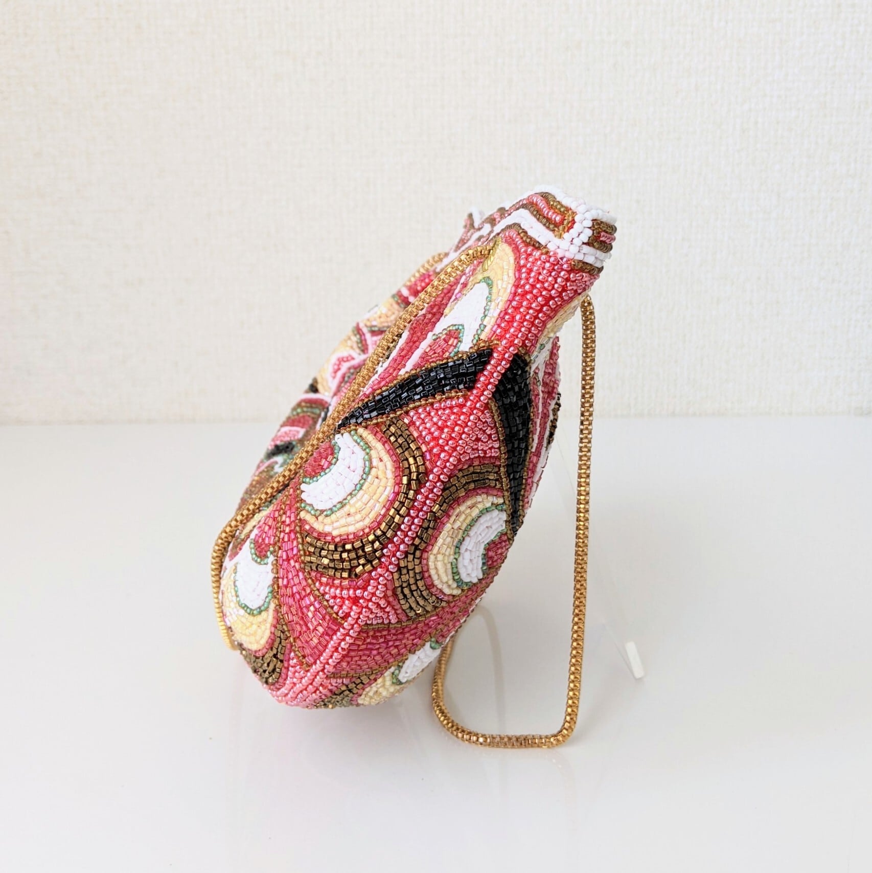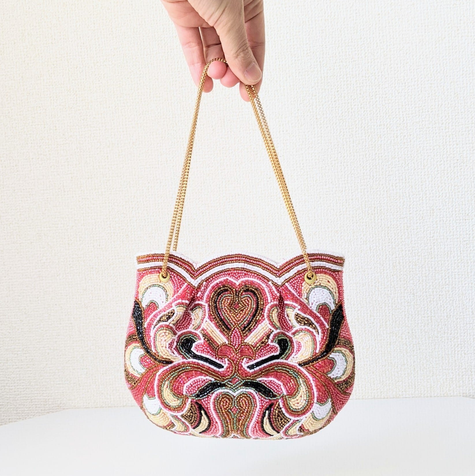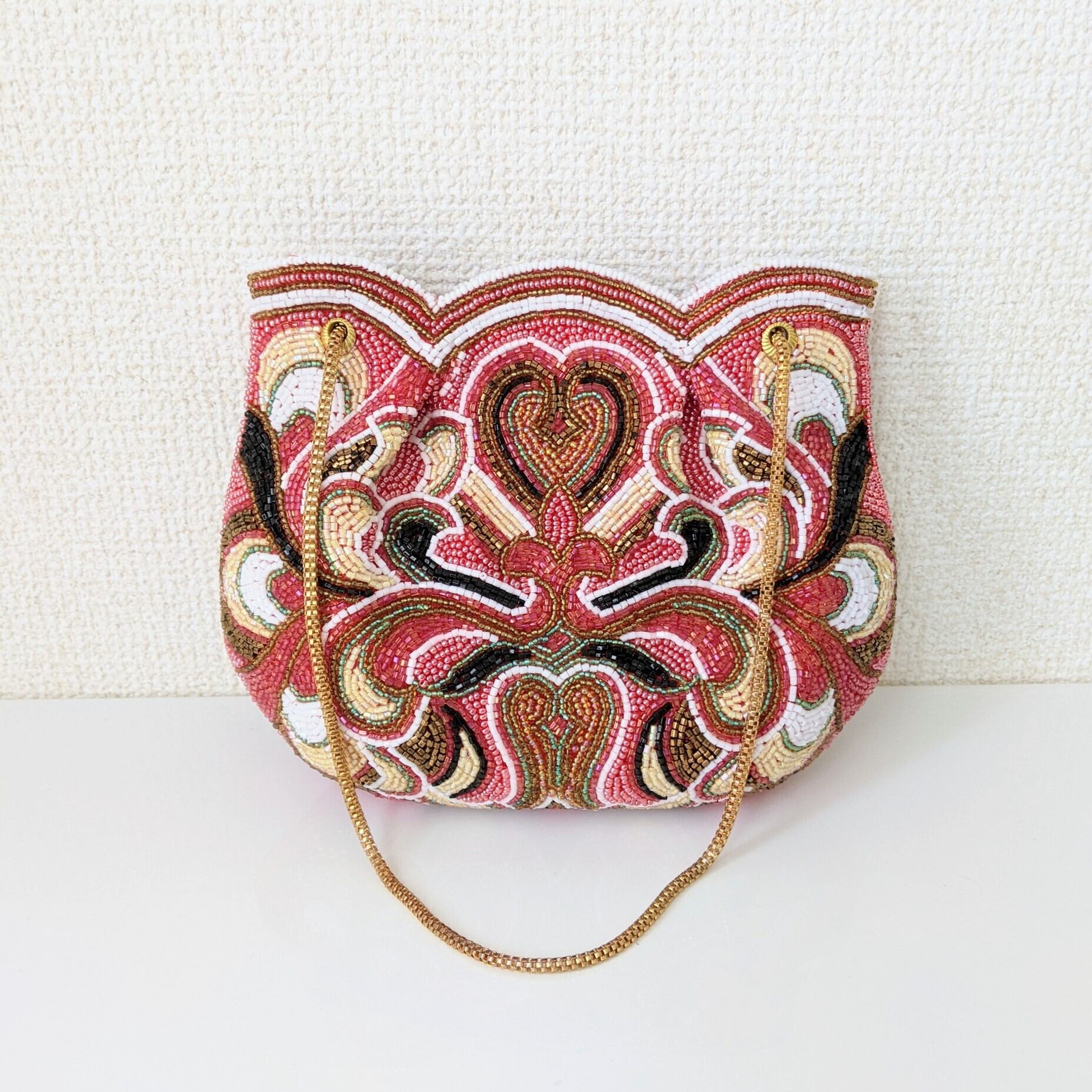 【Vintage】「はしもと」作 ビーズ刺繍バッグ Vintage Beaded Bag チェーンショルダー アラベスク柄 パーティーバッグ 昭和レトロ 大正浪漫 フォーマルバッグ