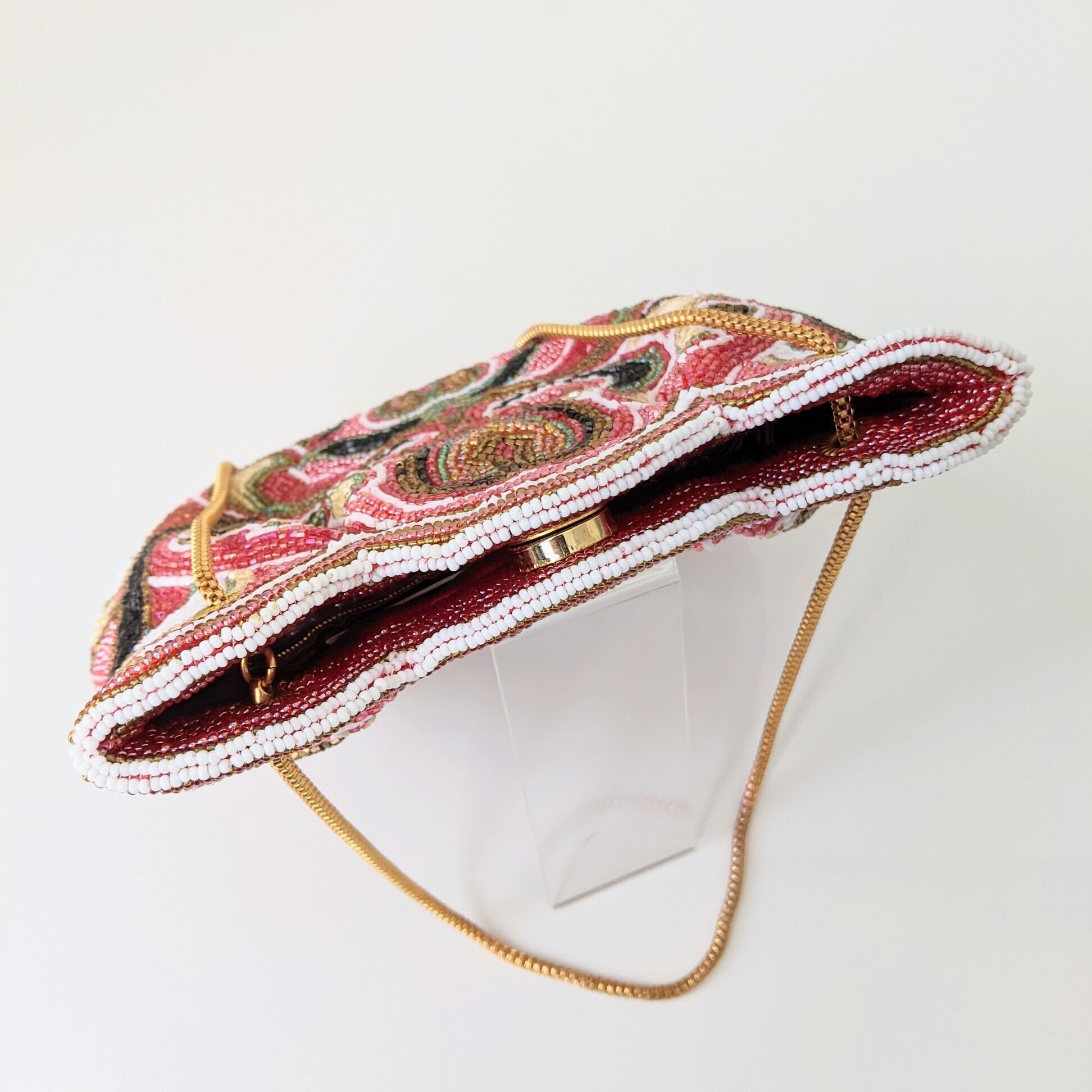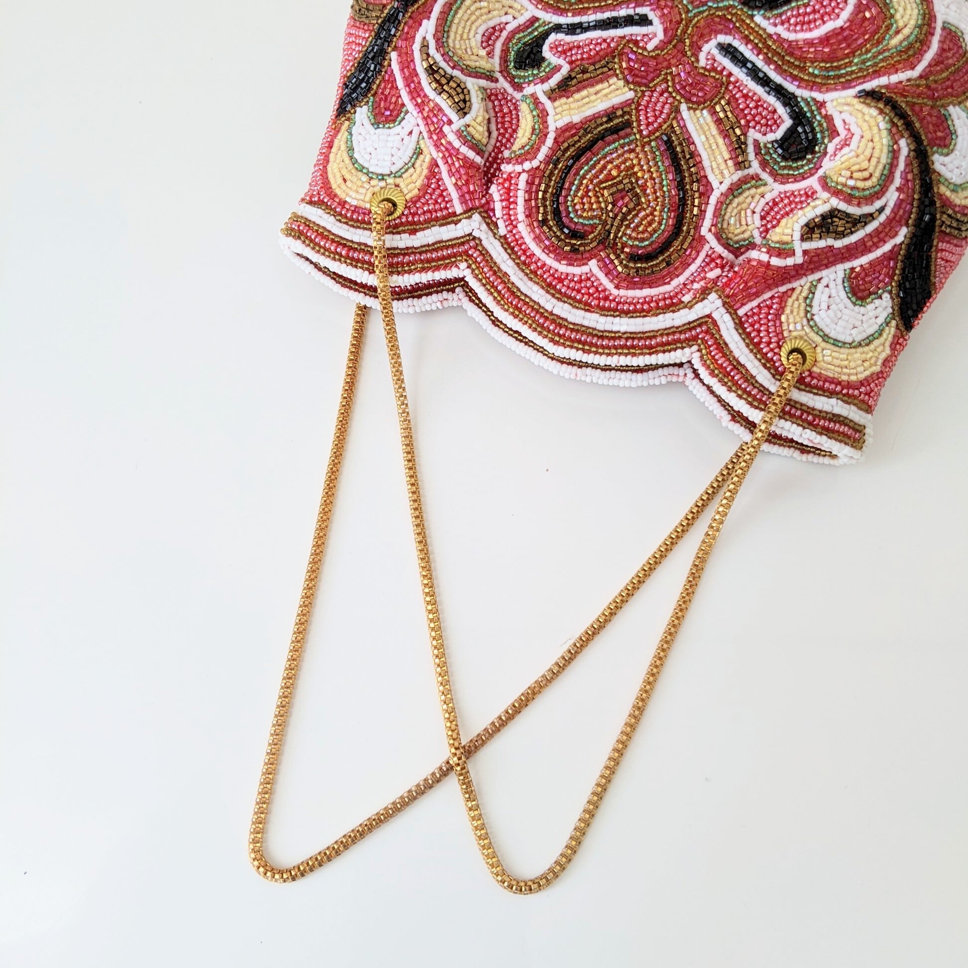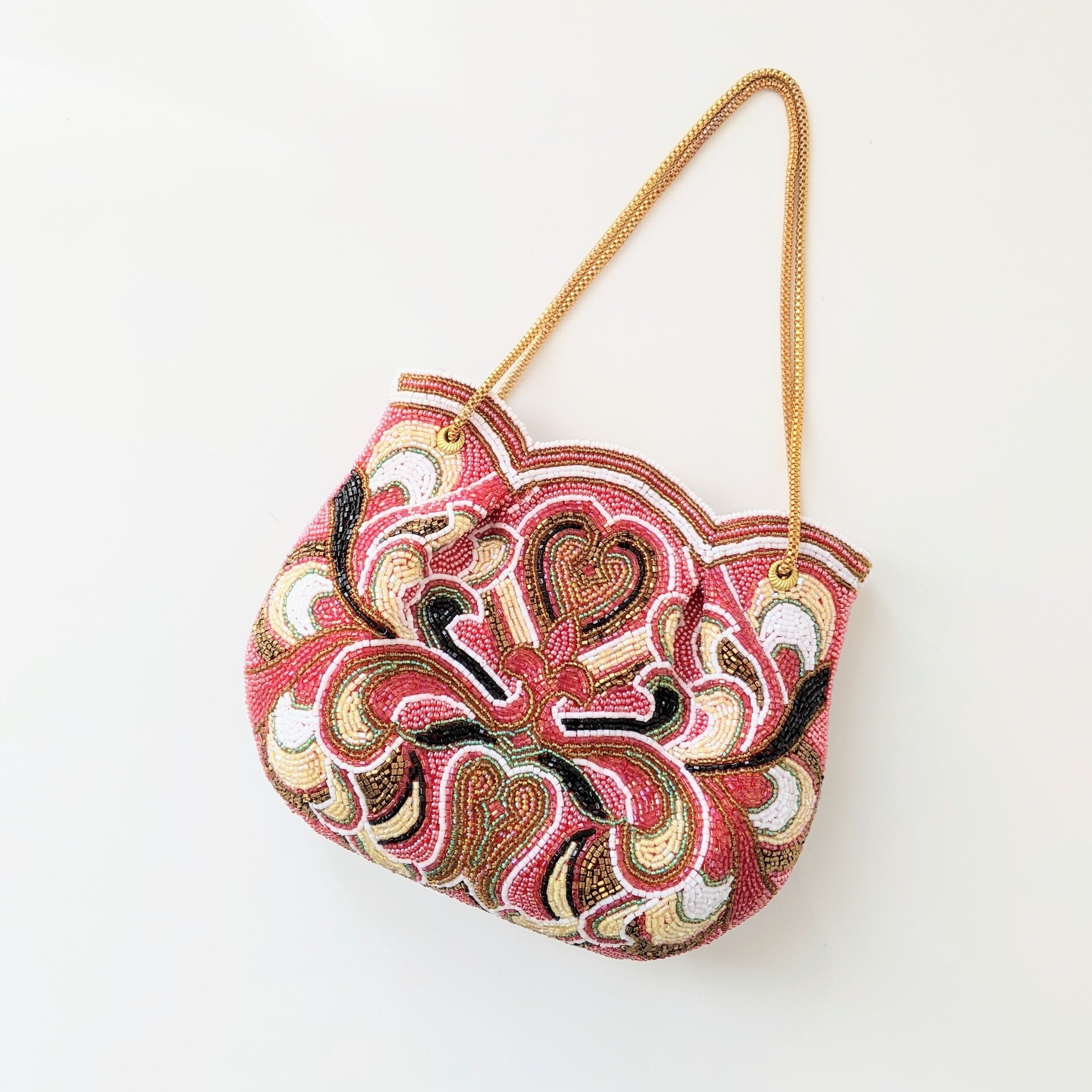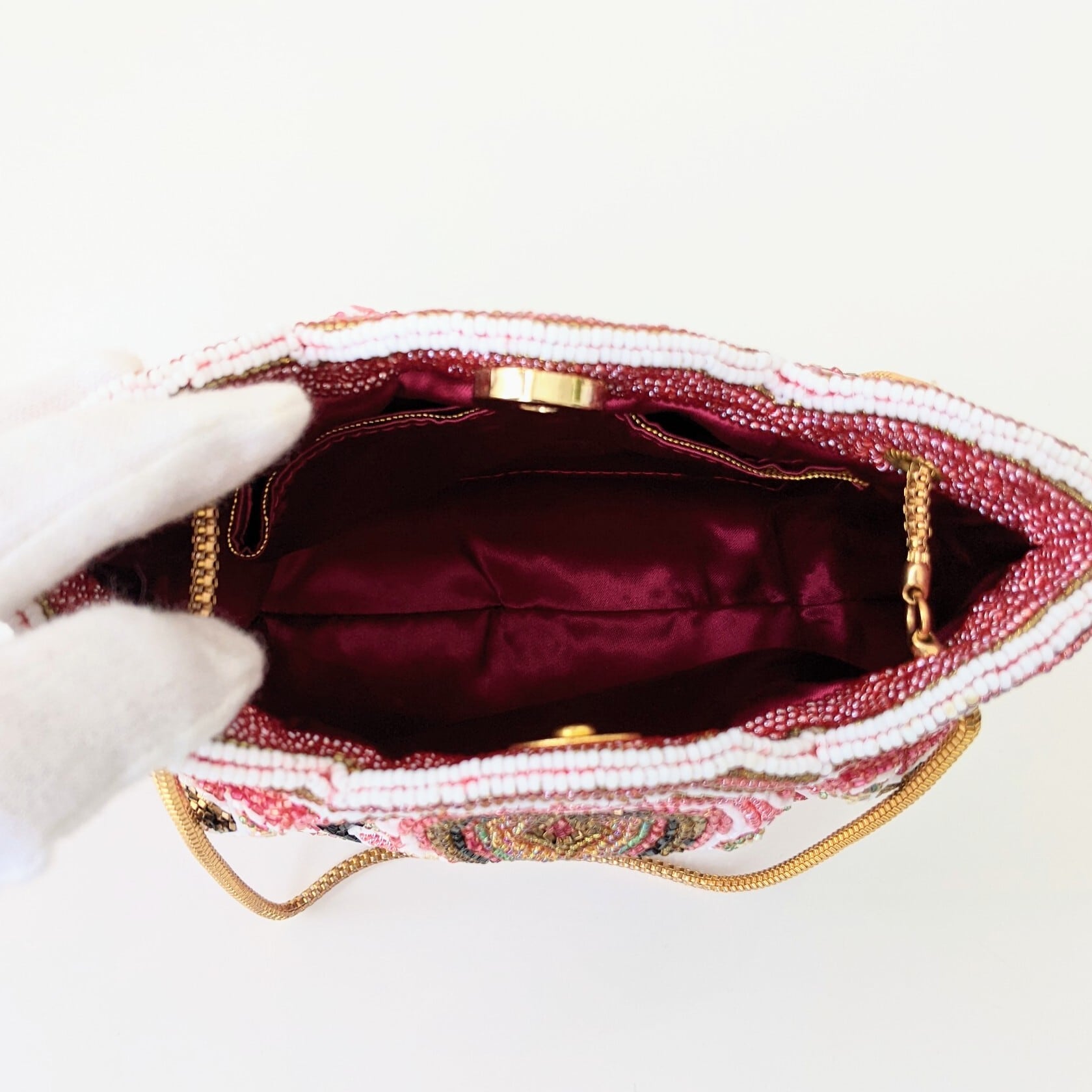 【Vintage】「はしもと」作 ビーズ刺繍バッグ Vintage Beaded Bag チェーンショルダー アラベスク柄 パーティーバッグ 昭和レトロ 大正浪漫 フォーマルバッグ