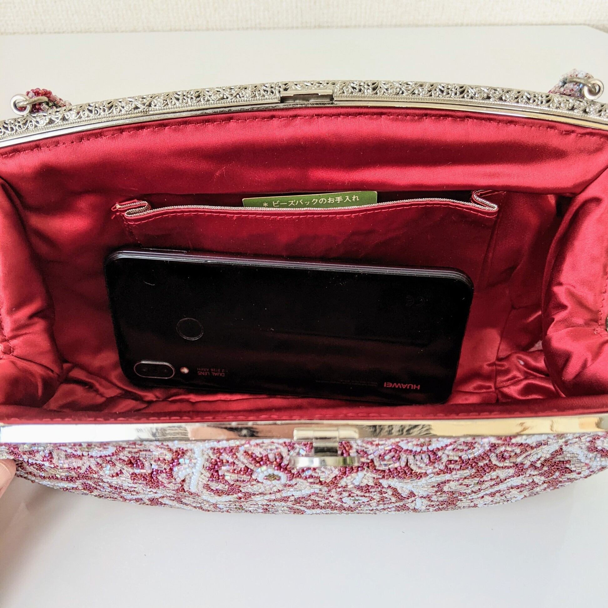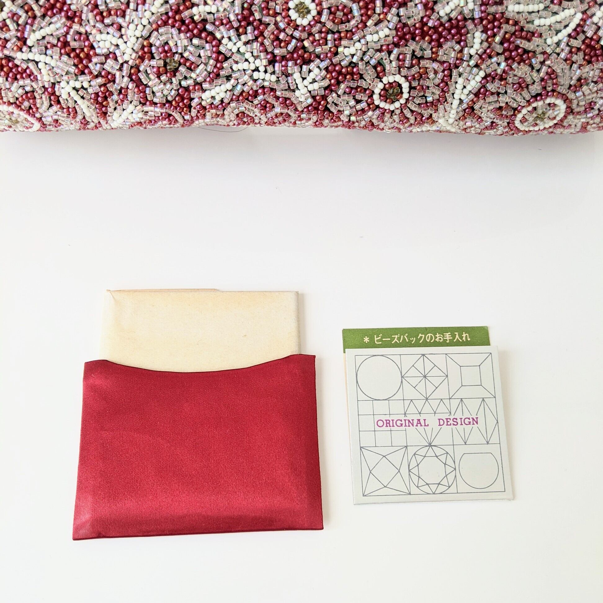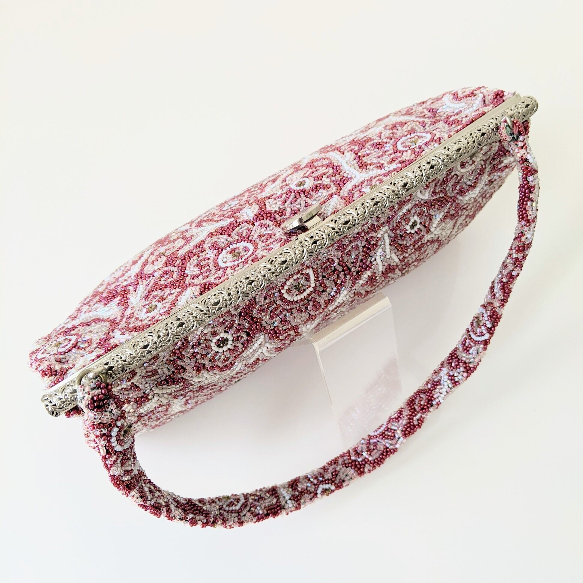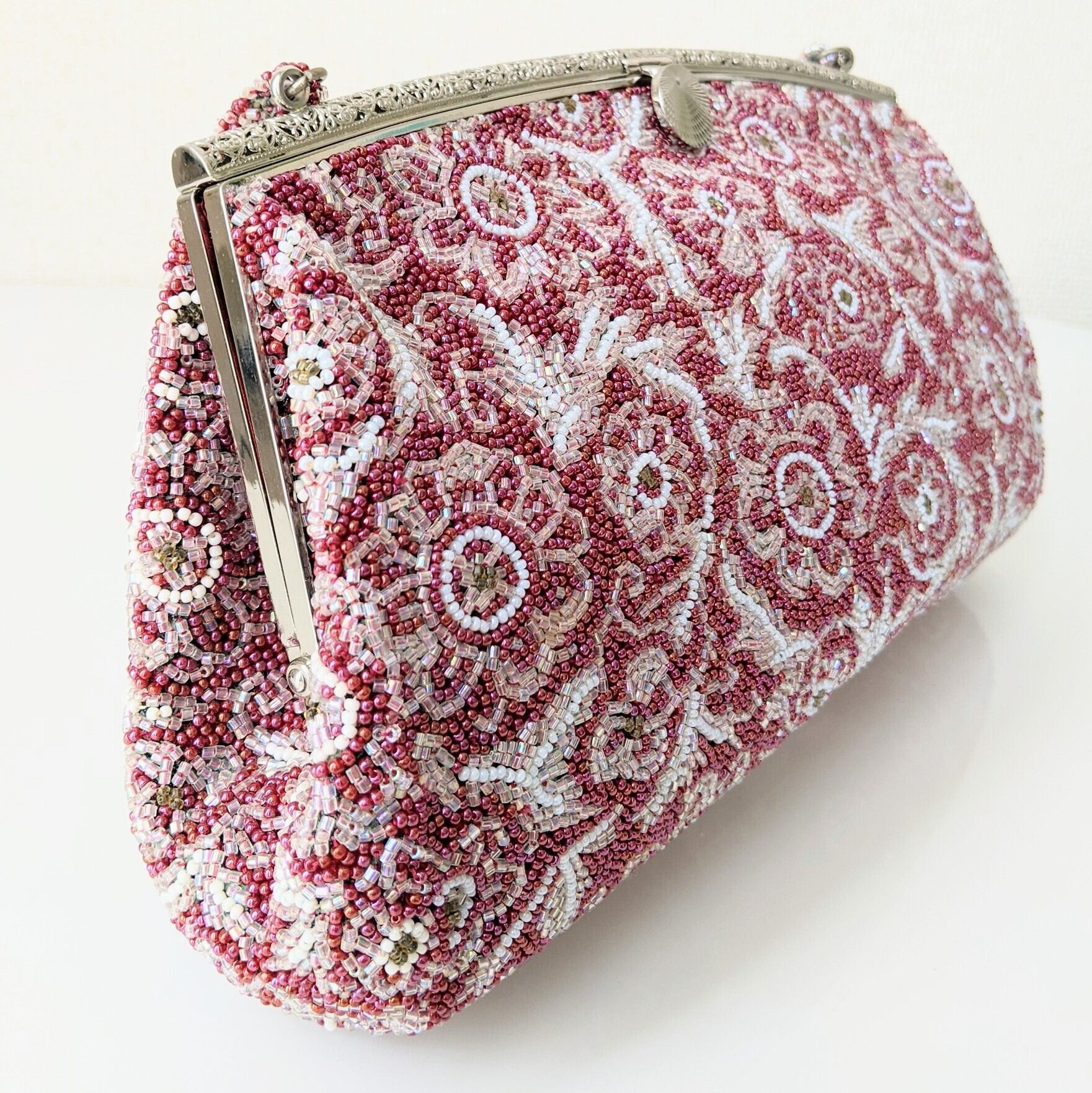 【Vintage】「はしもと」作 ビーズ刺繍バッグ Beaded Bag 赤系 小花柄 パーティーバッグ 昭和レトロ 大正浪漫 フォーマルバッグ