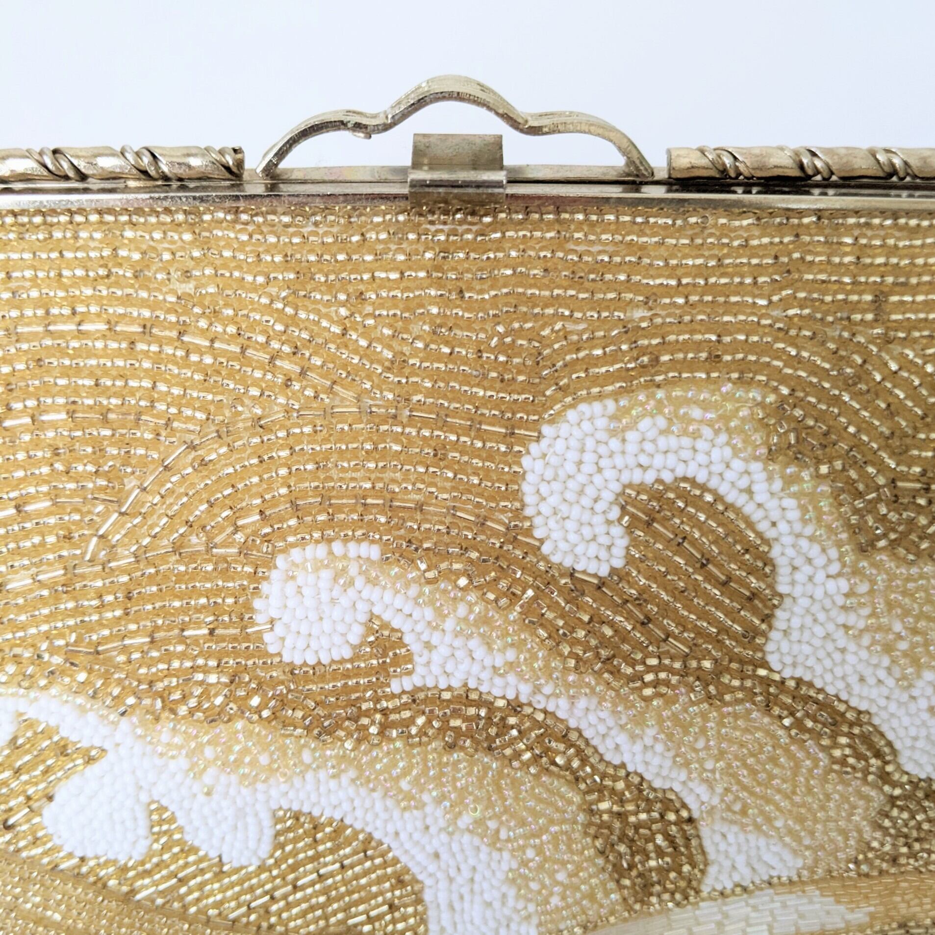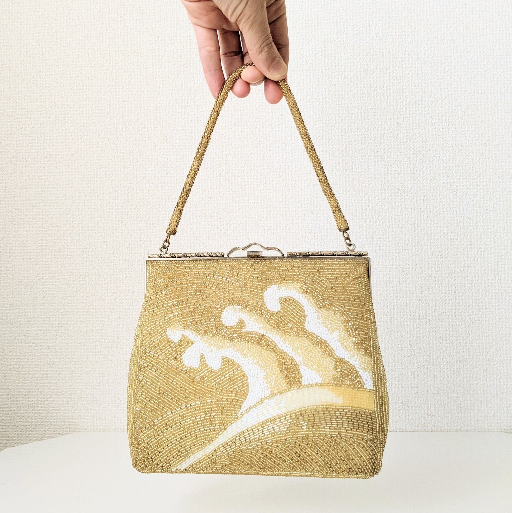 サンセットに輝く海に立つ波頭。そんな光景を思い浮かべてしまうようなビーズバッグです。