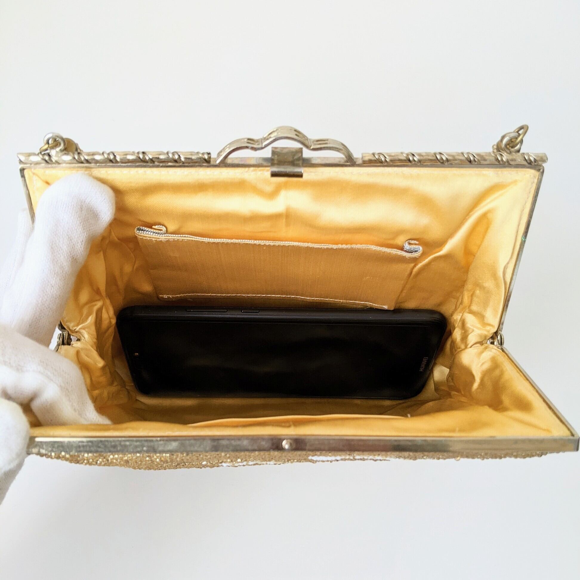 光を受けて美しく輝くヴィンテージビーズバッグ。