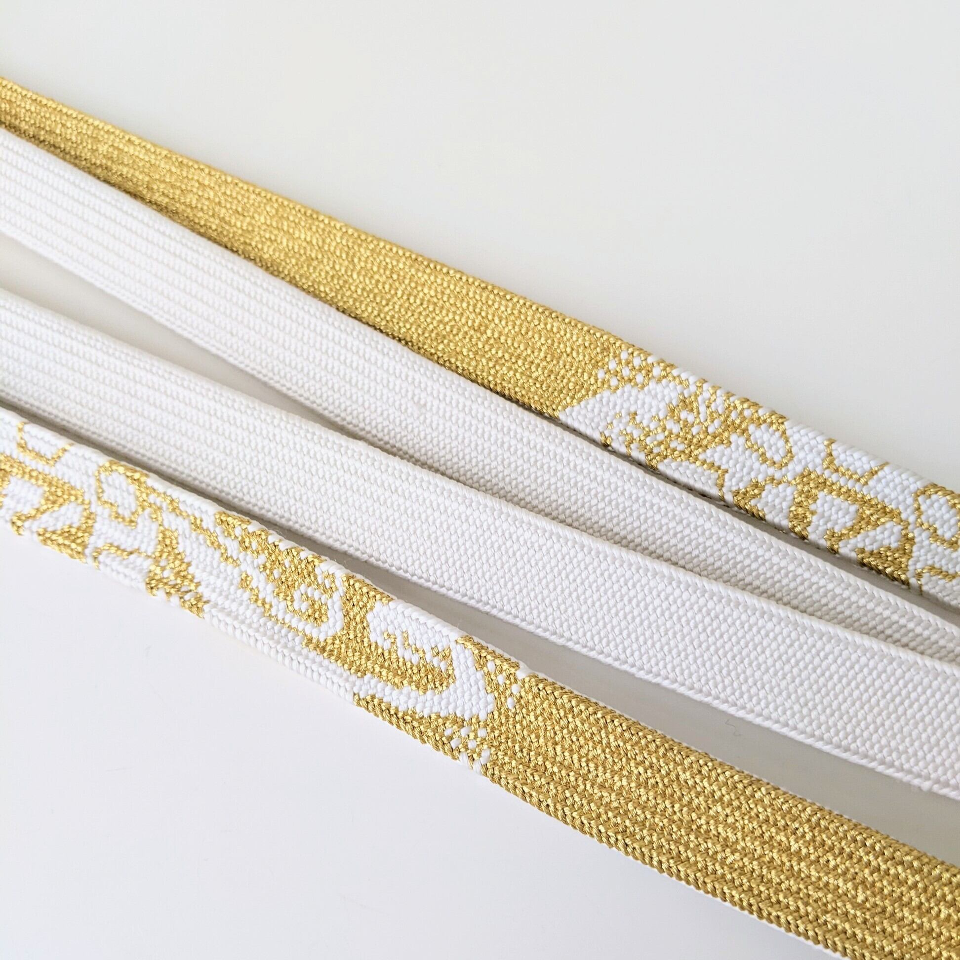 白とゴールド色合いが豪華な印象の平組の帯締めです。