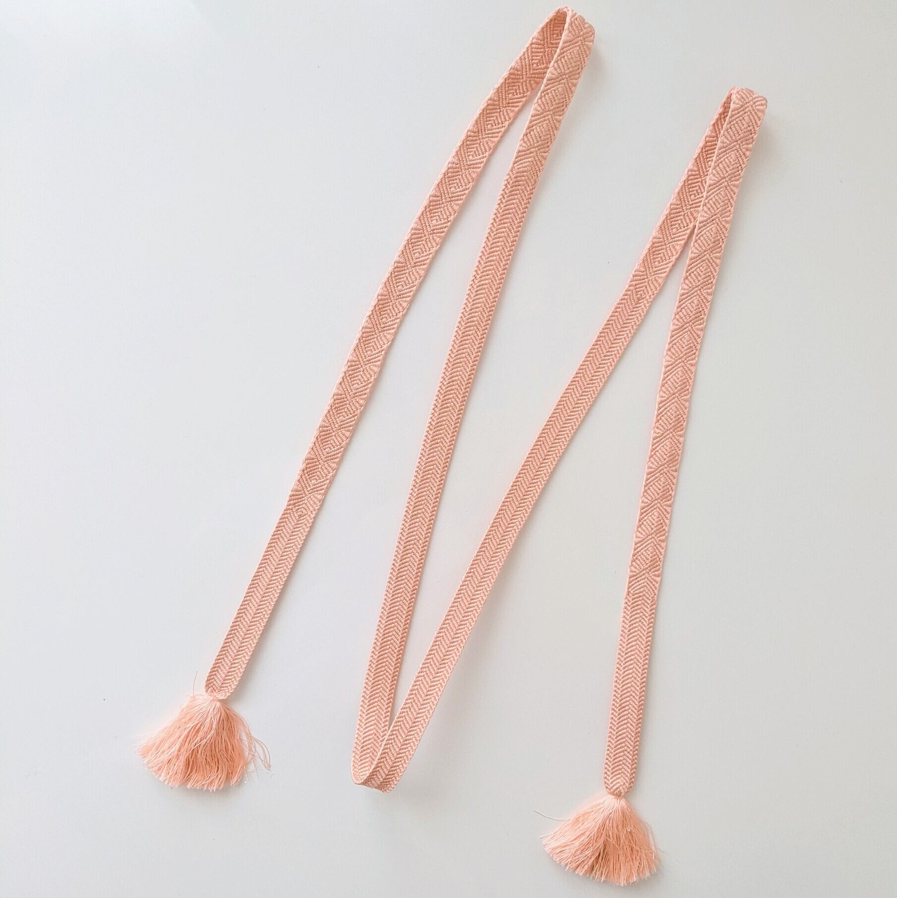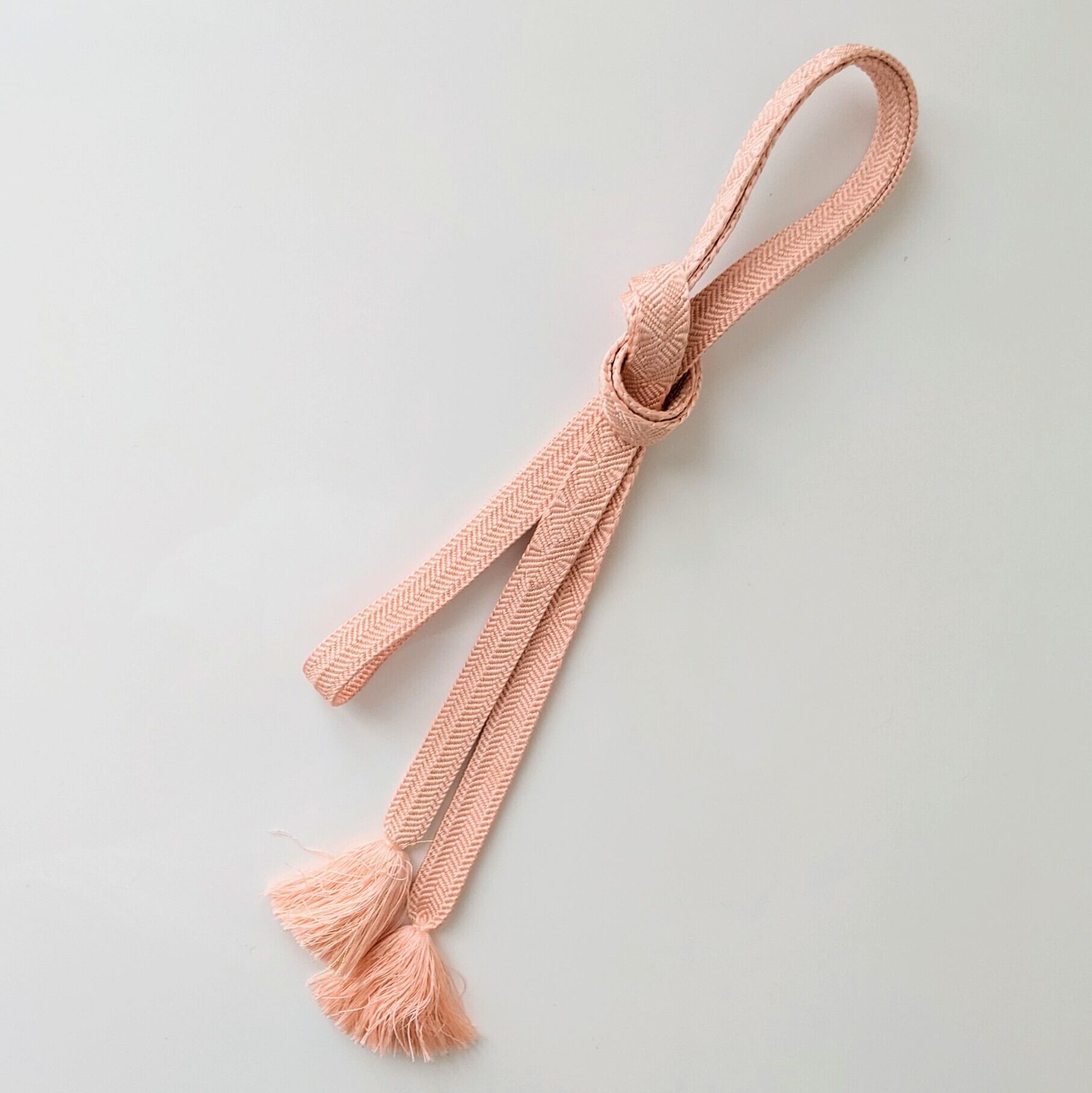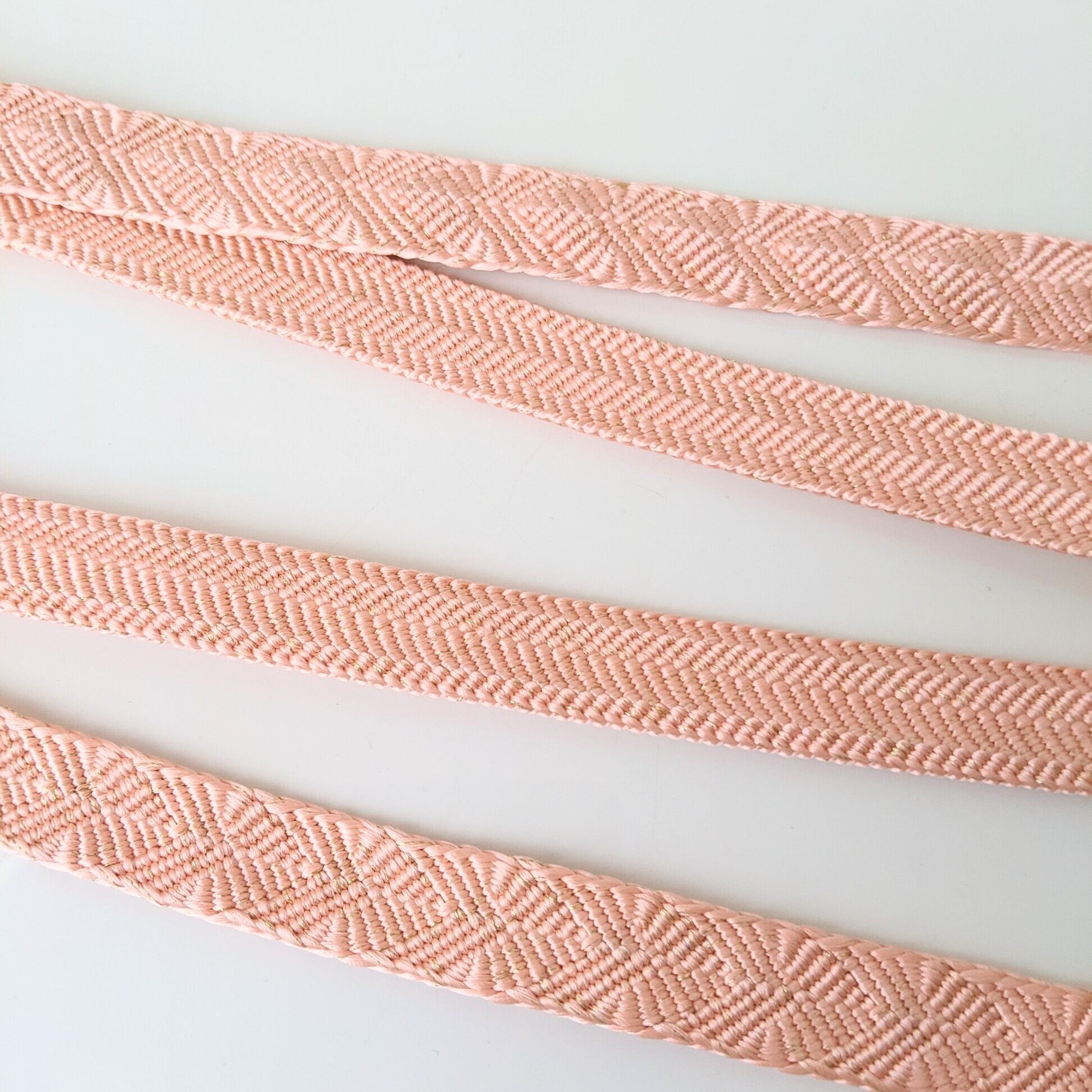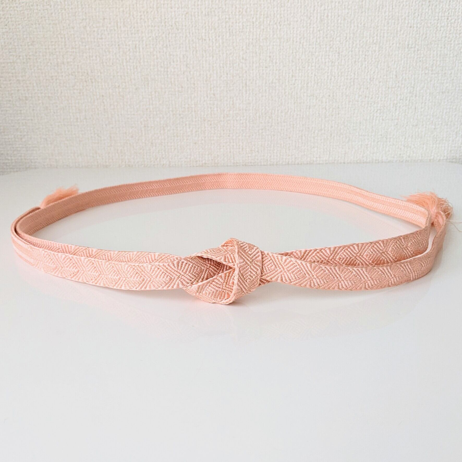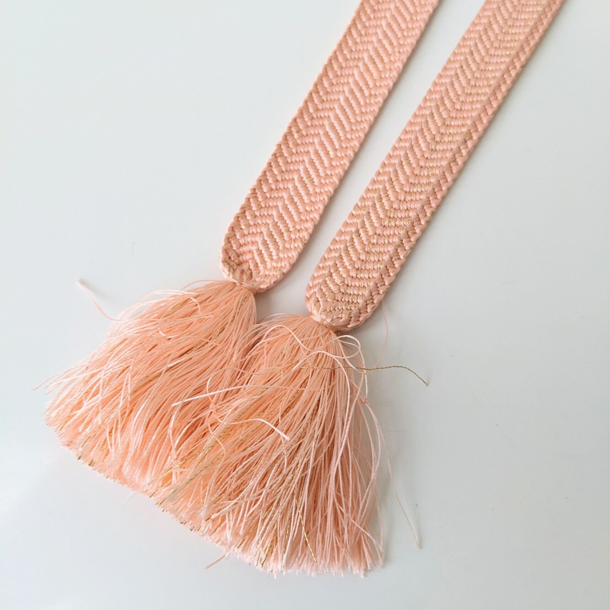 ベビーピンクの優しい色合いの平組(唐組)の帯締めです。