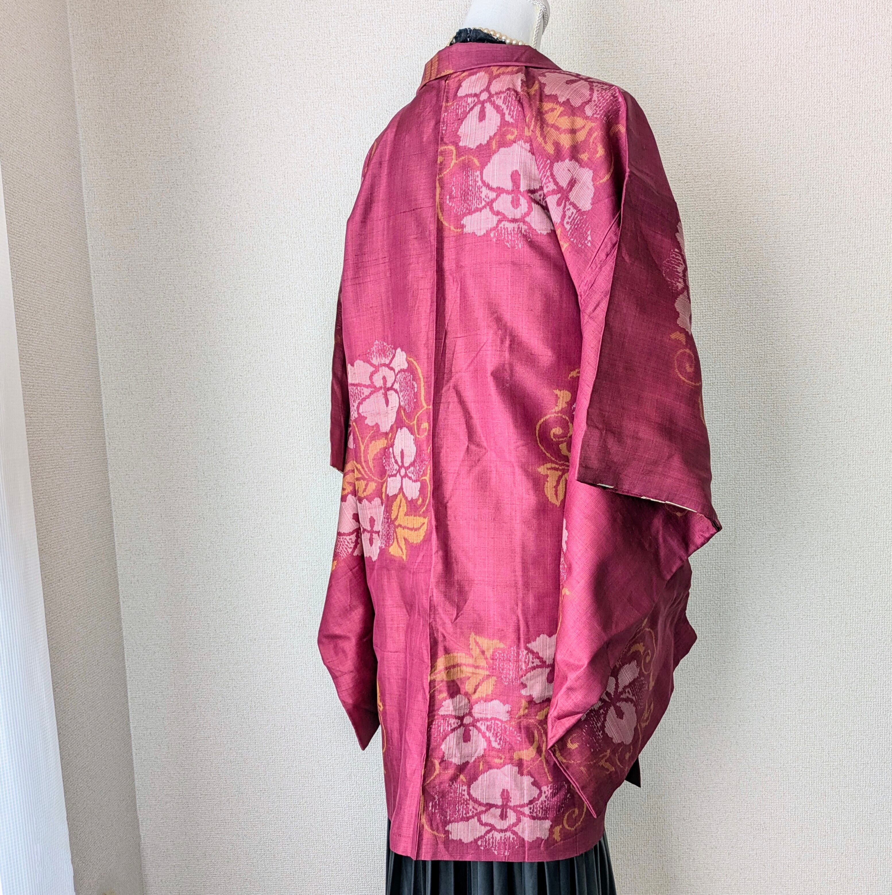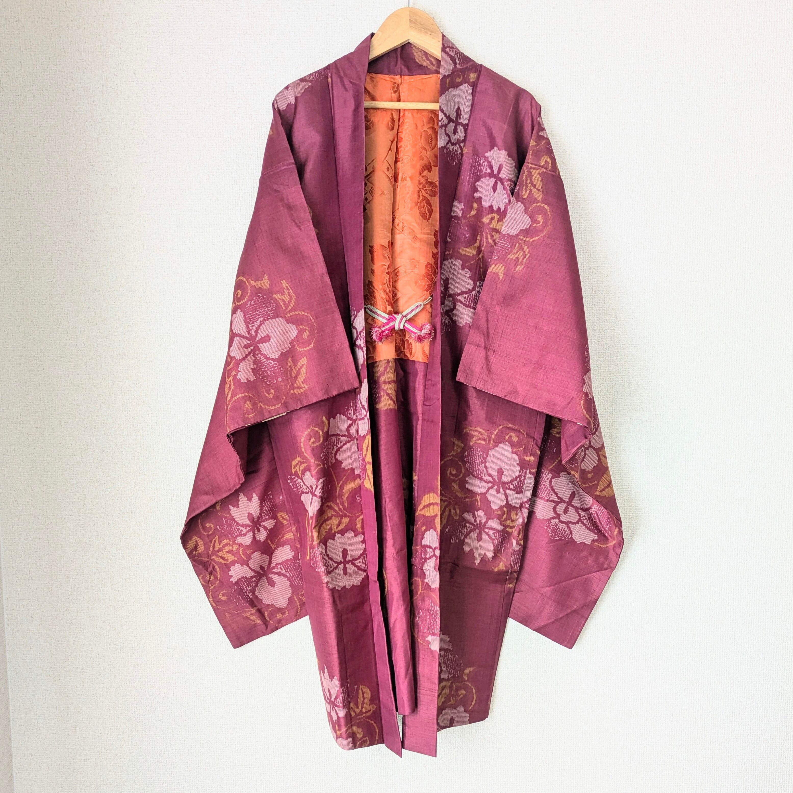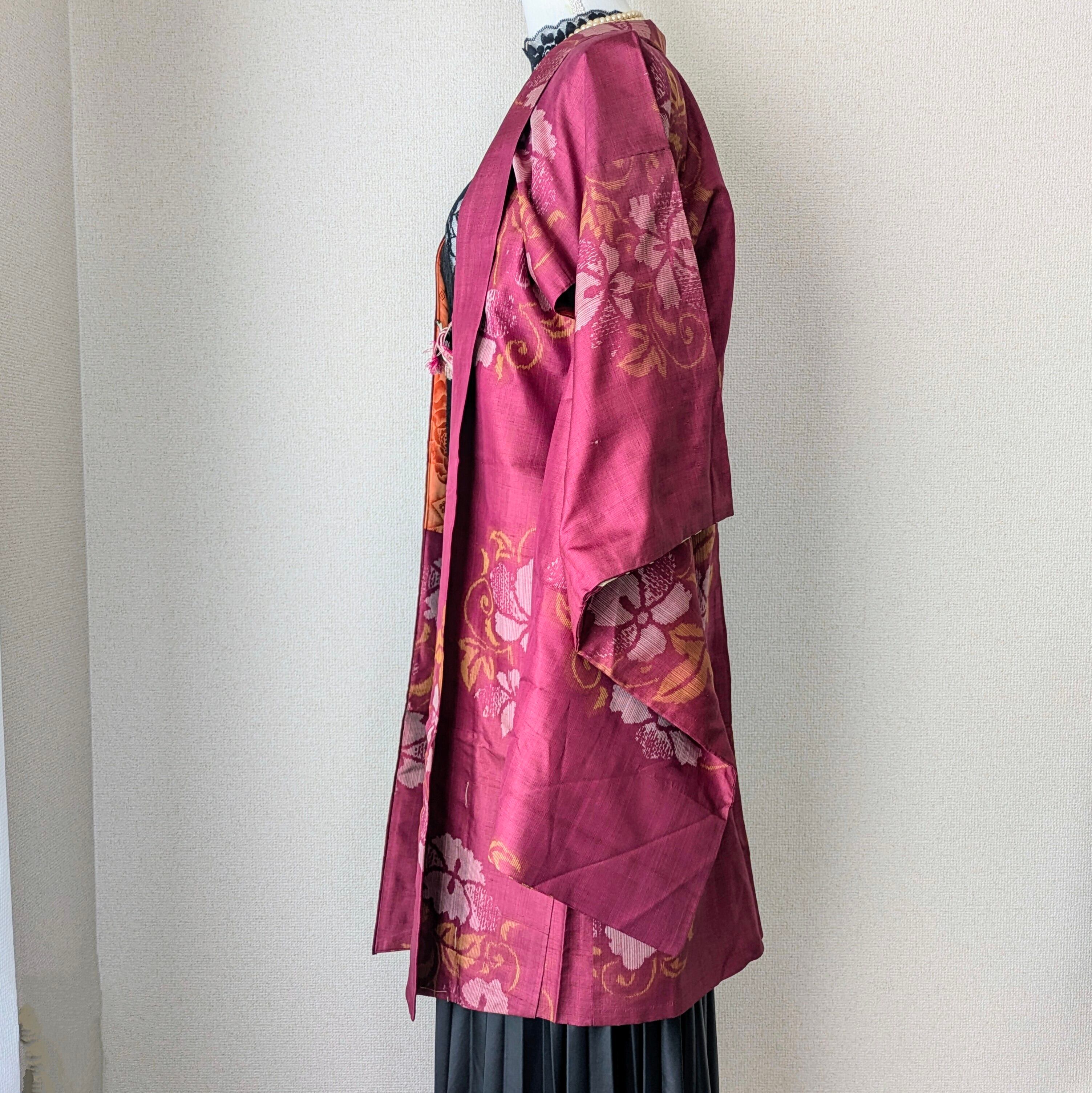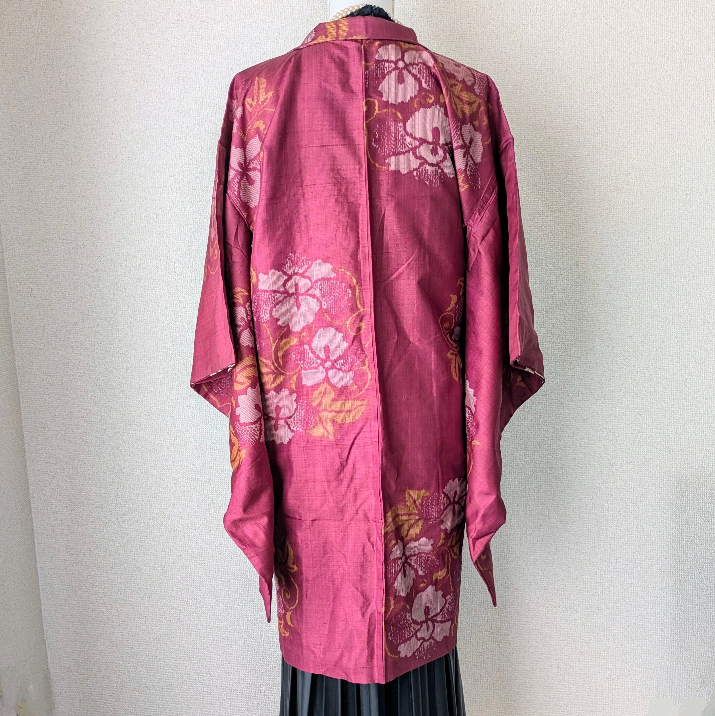 【Vintage】HAORI 長羽織 羽織 正絹 銘仙 蘇枋色 赤紫 花丸文様 シルク 大正浪漫
