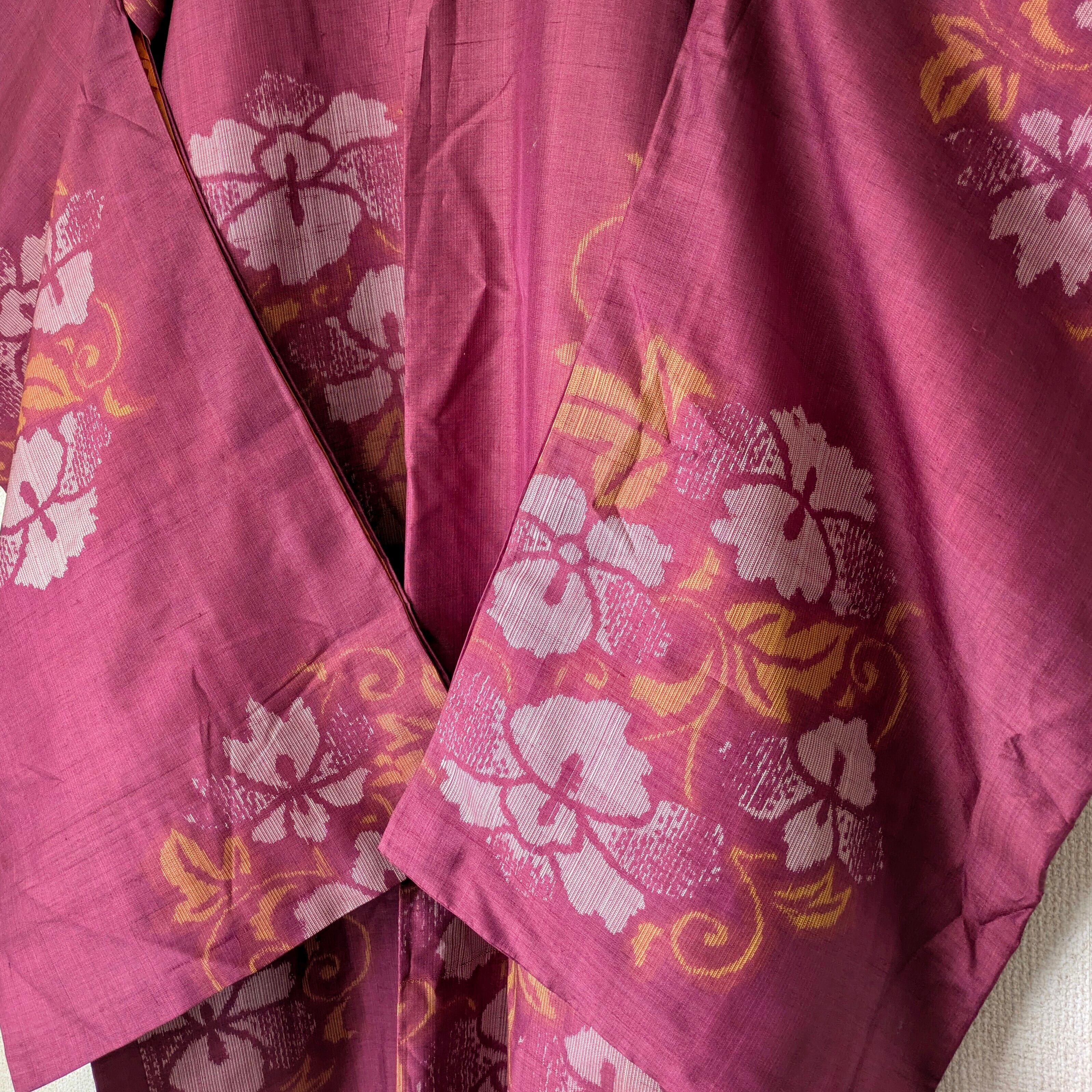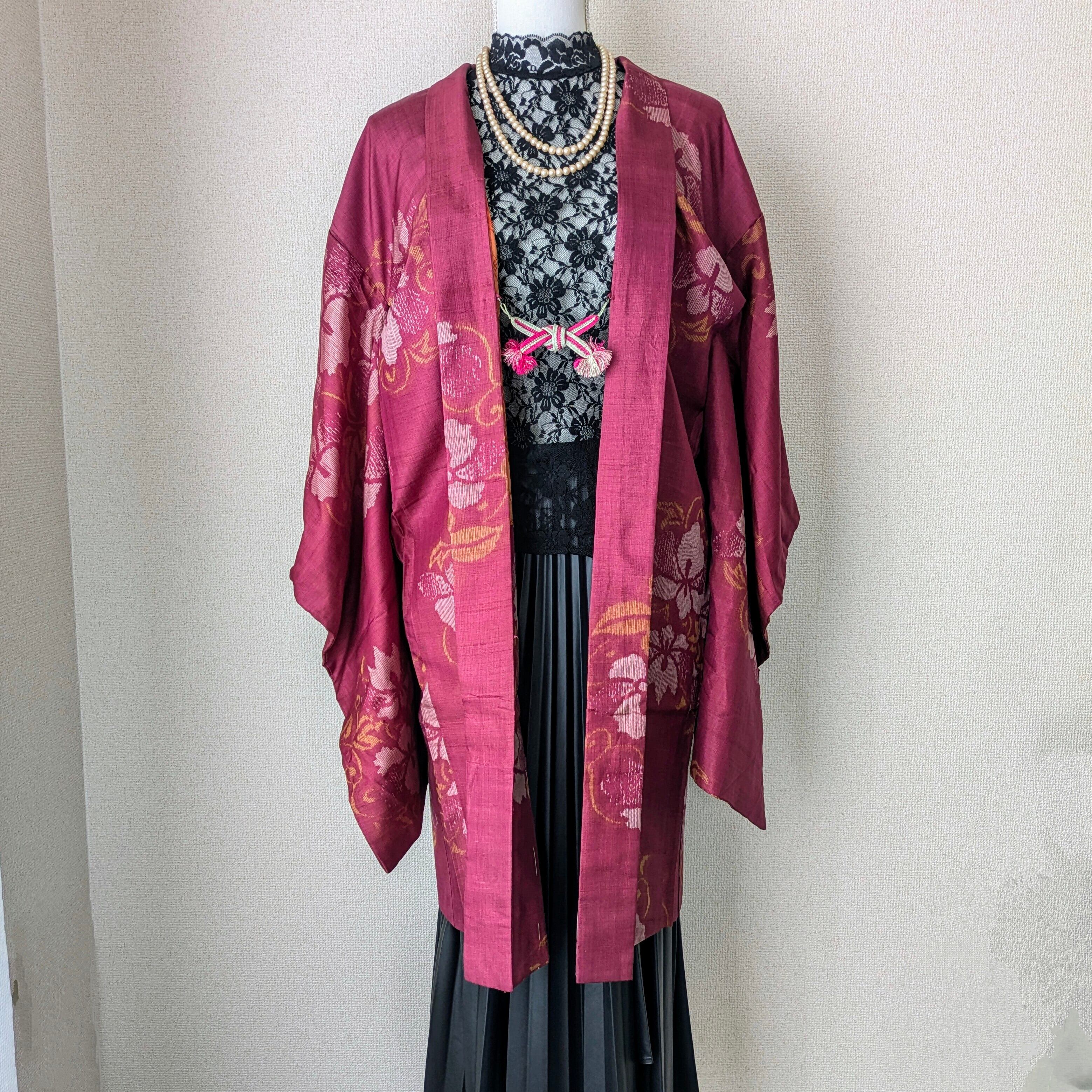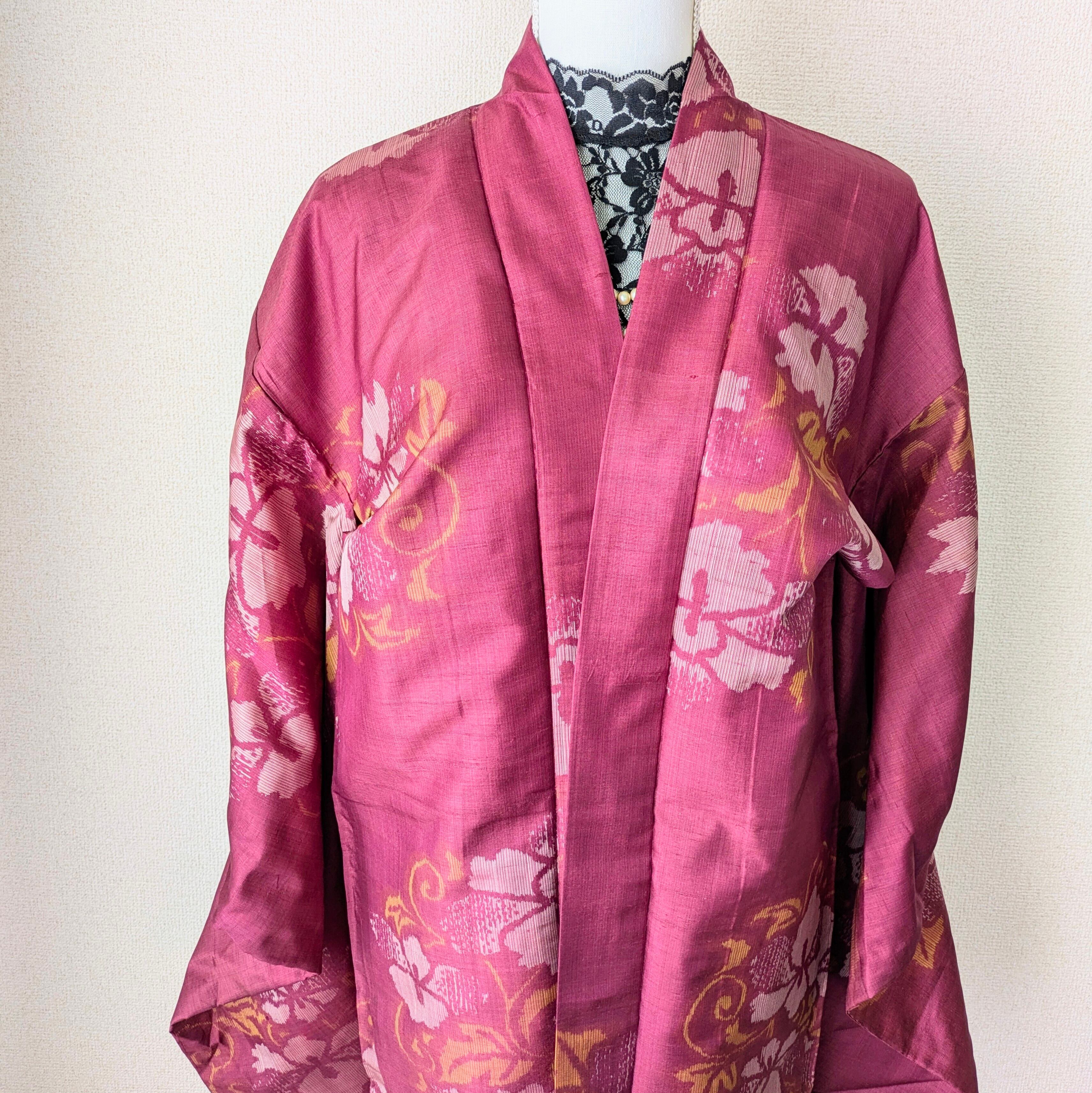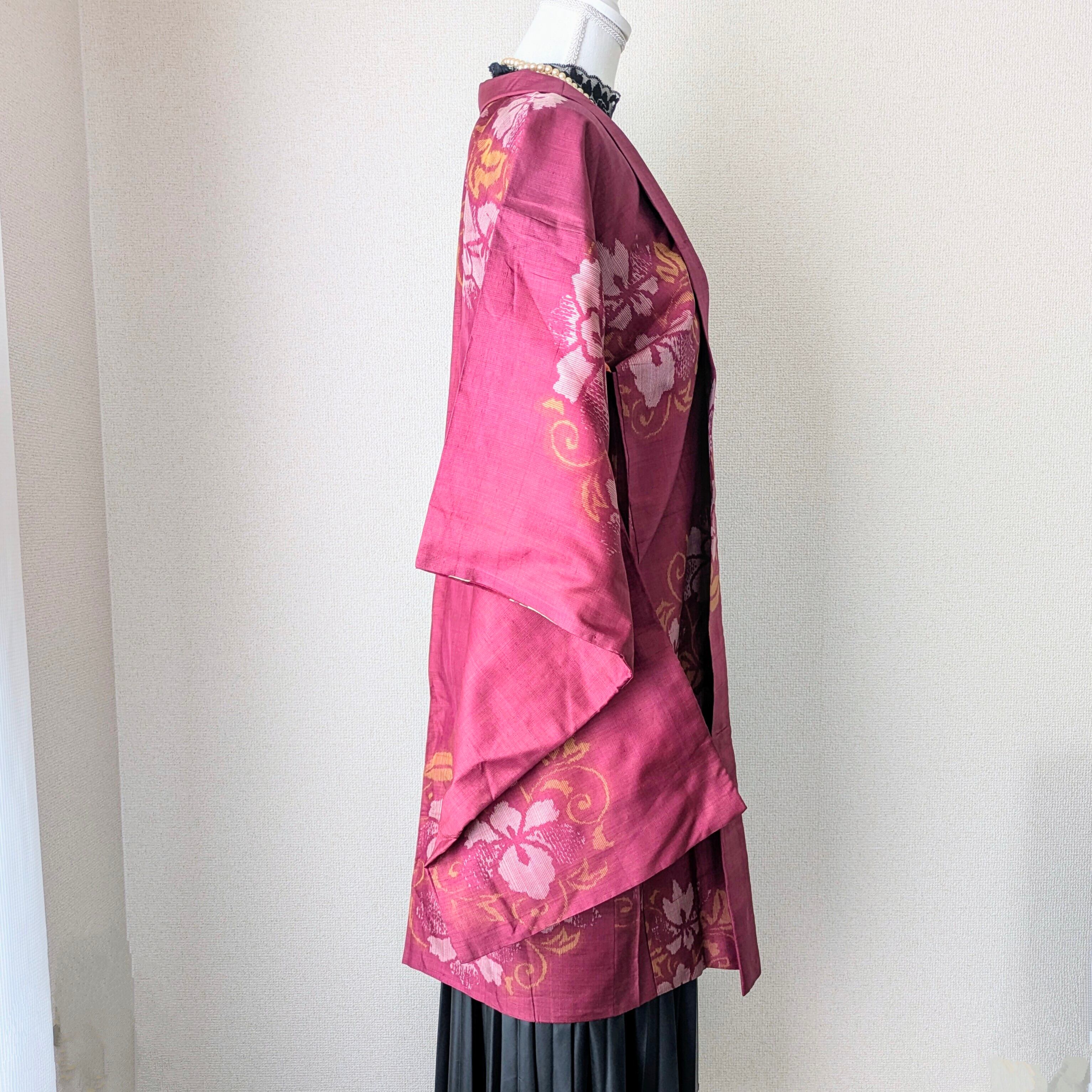 【Vintage】HAORI 長羽織 羽織 正絹 銘仙 蘇枋色 赤紫 花丸文様 シルク 大正浪漫