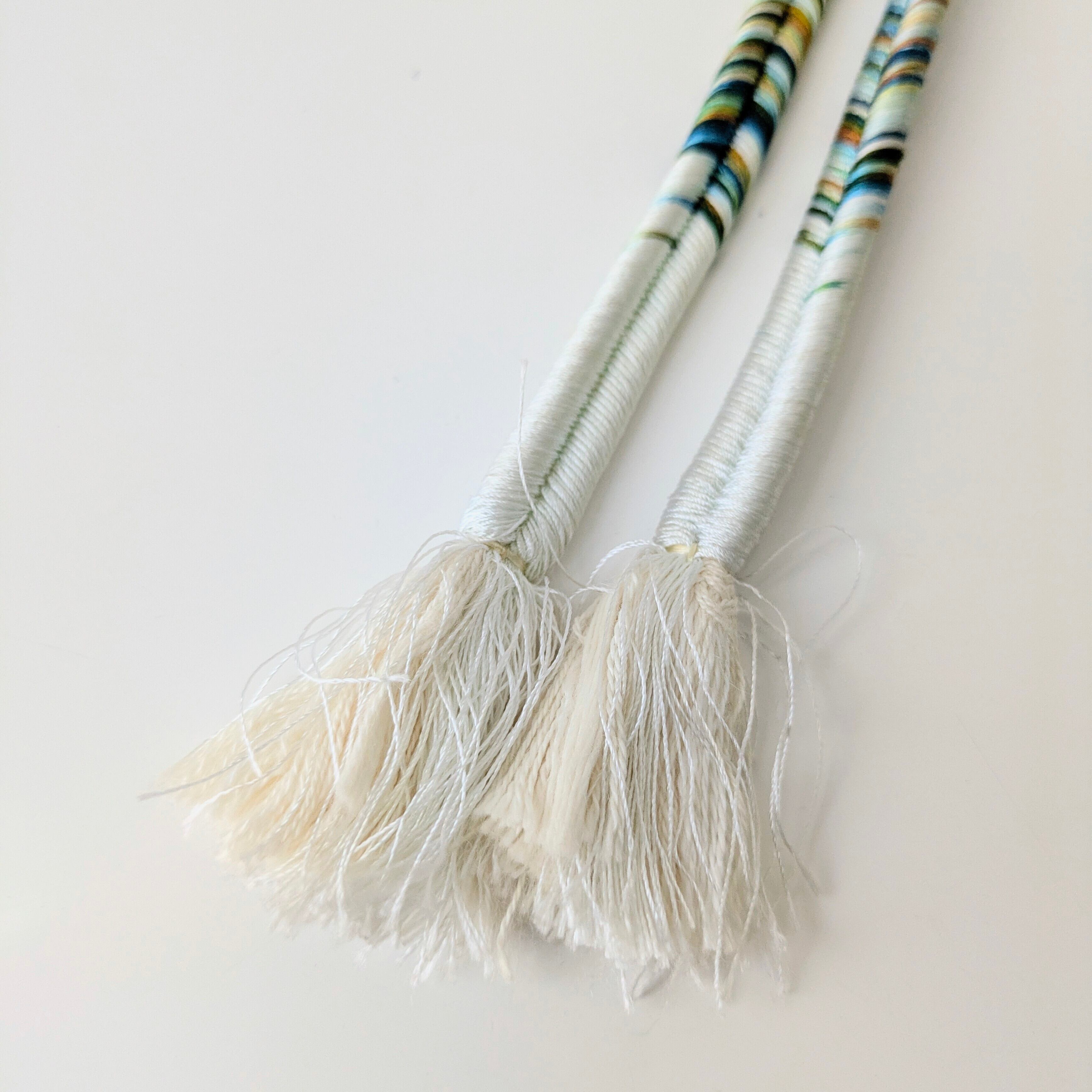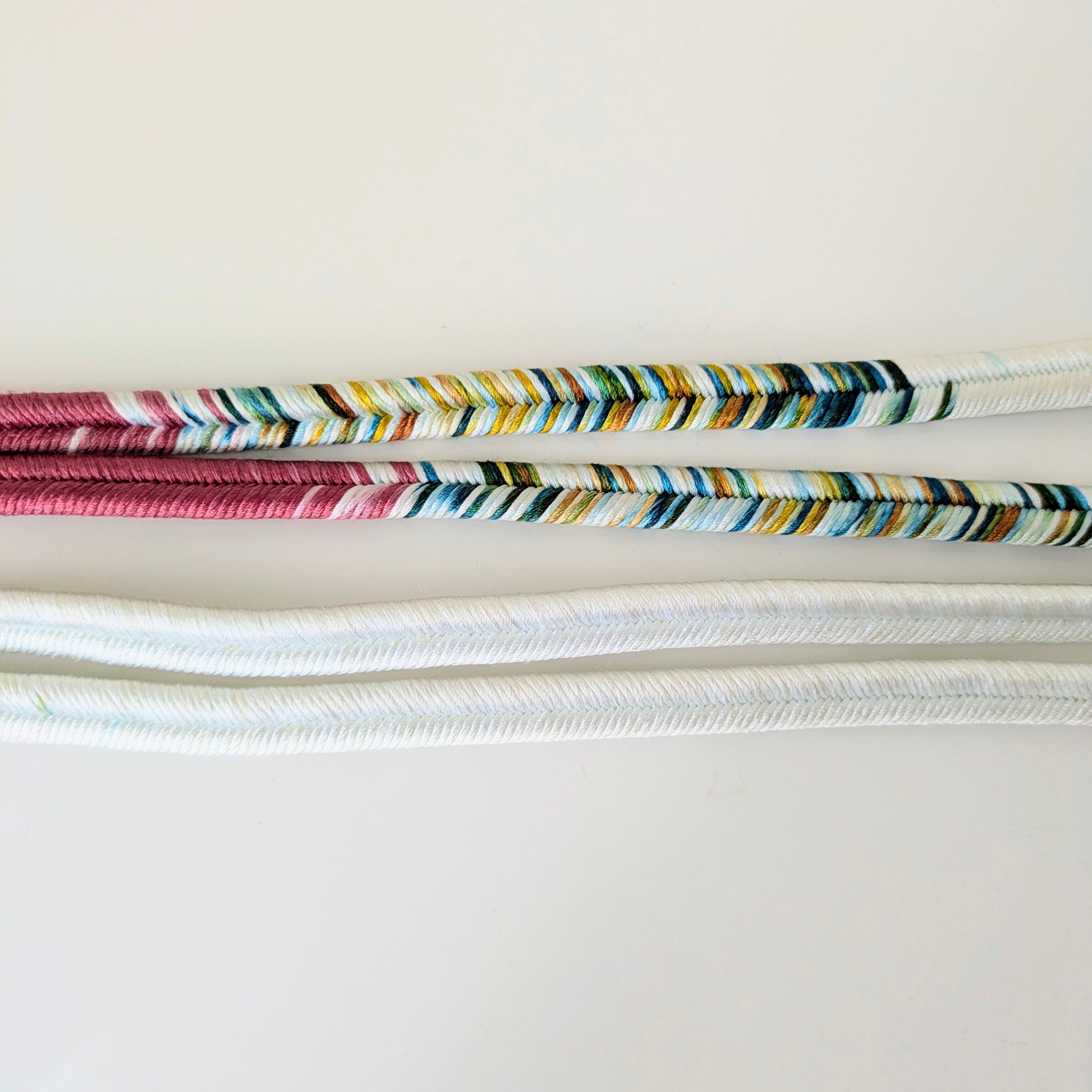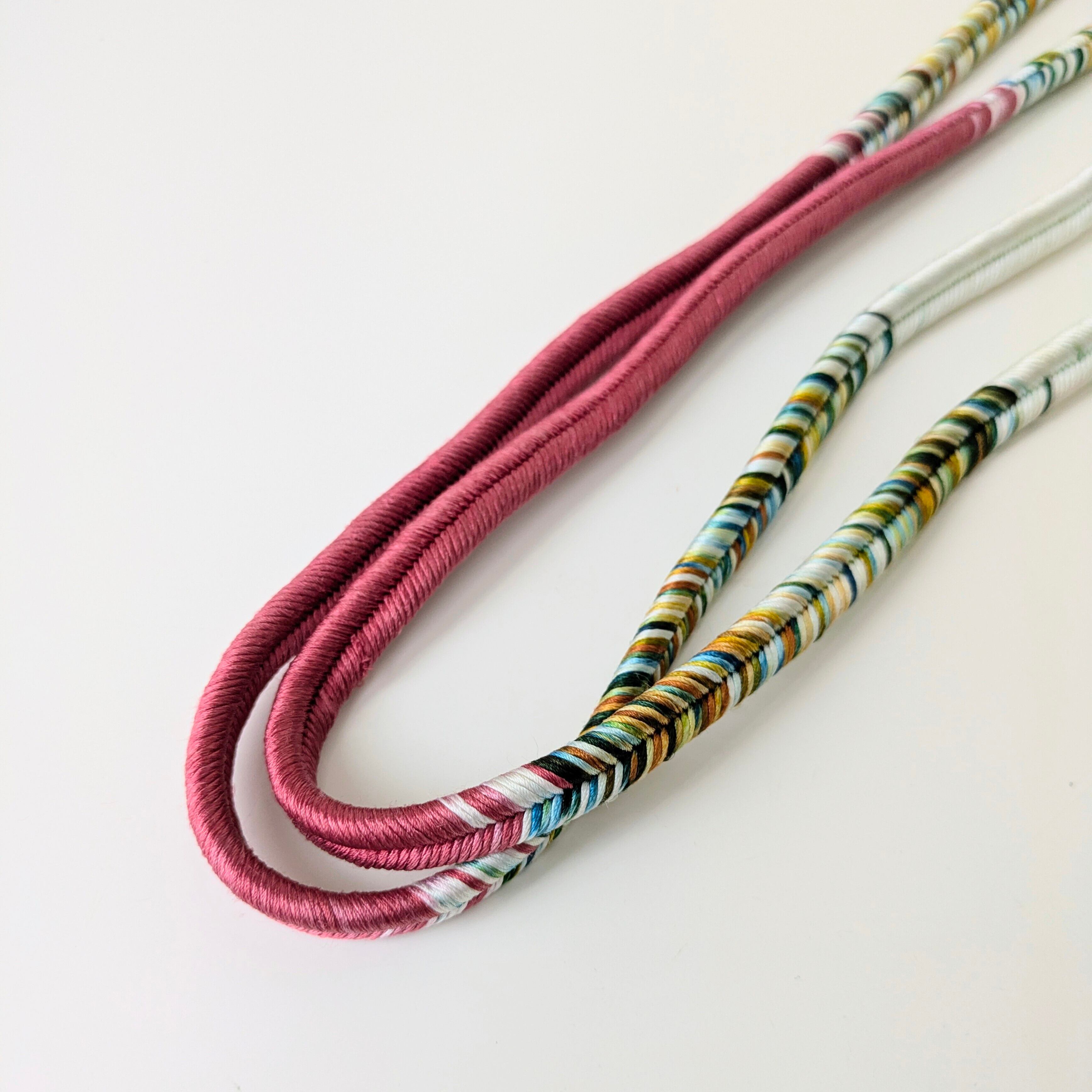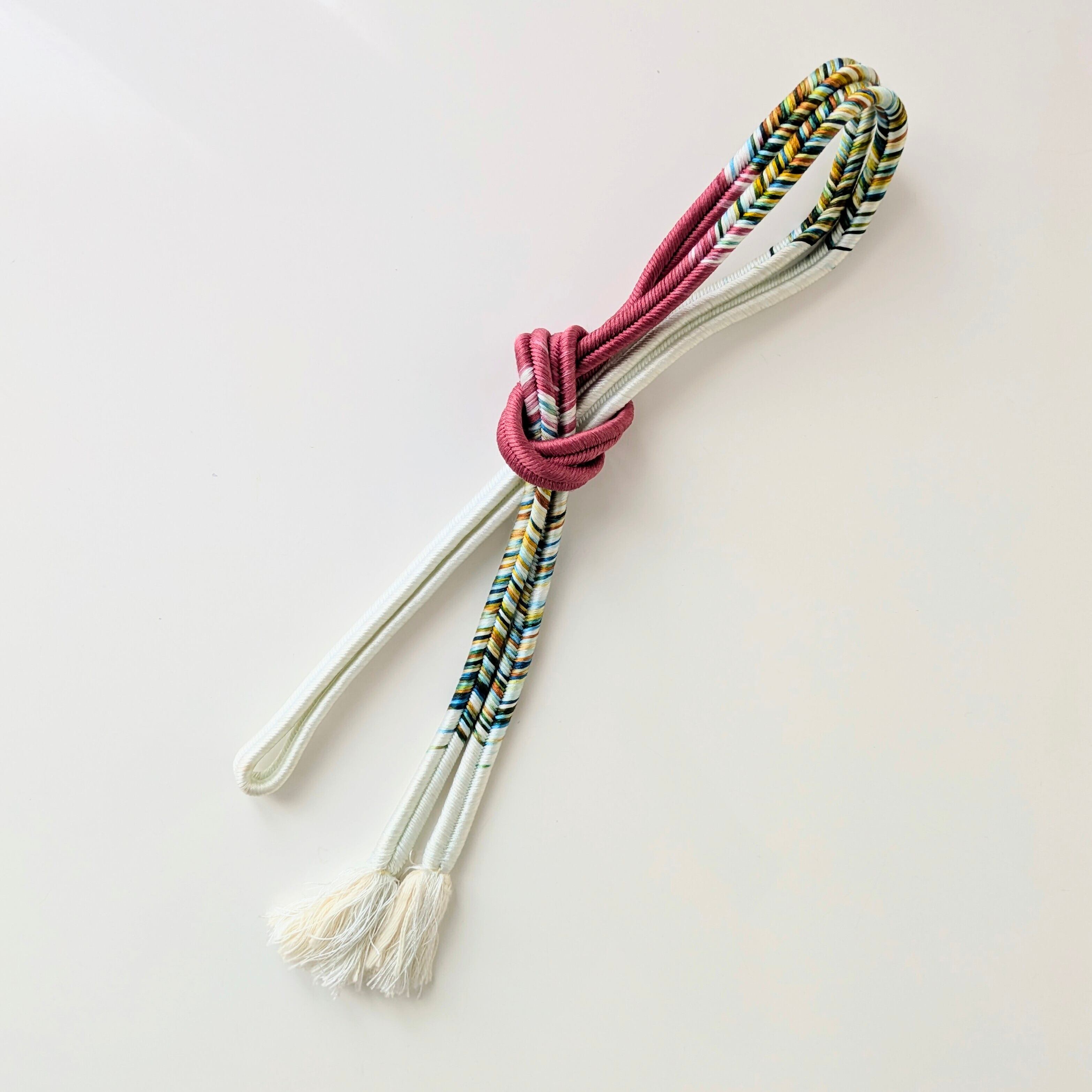 色の変化の楽しめるミックスカラーの平組の帯締めです。