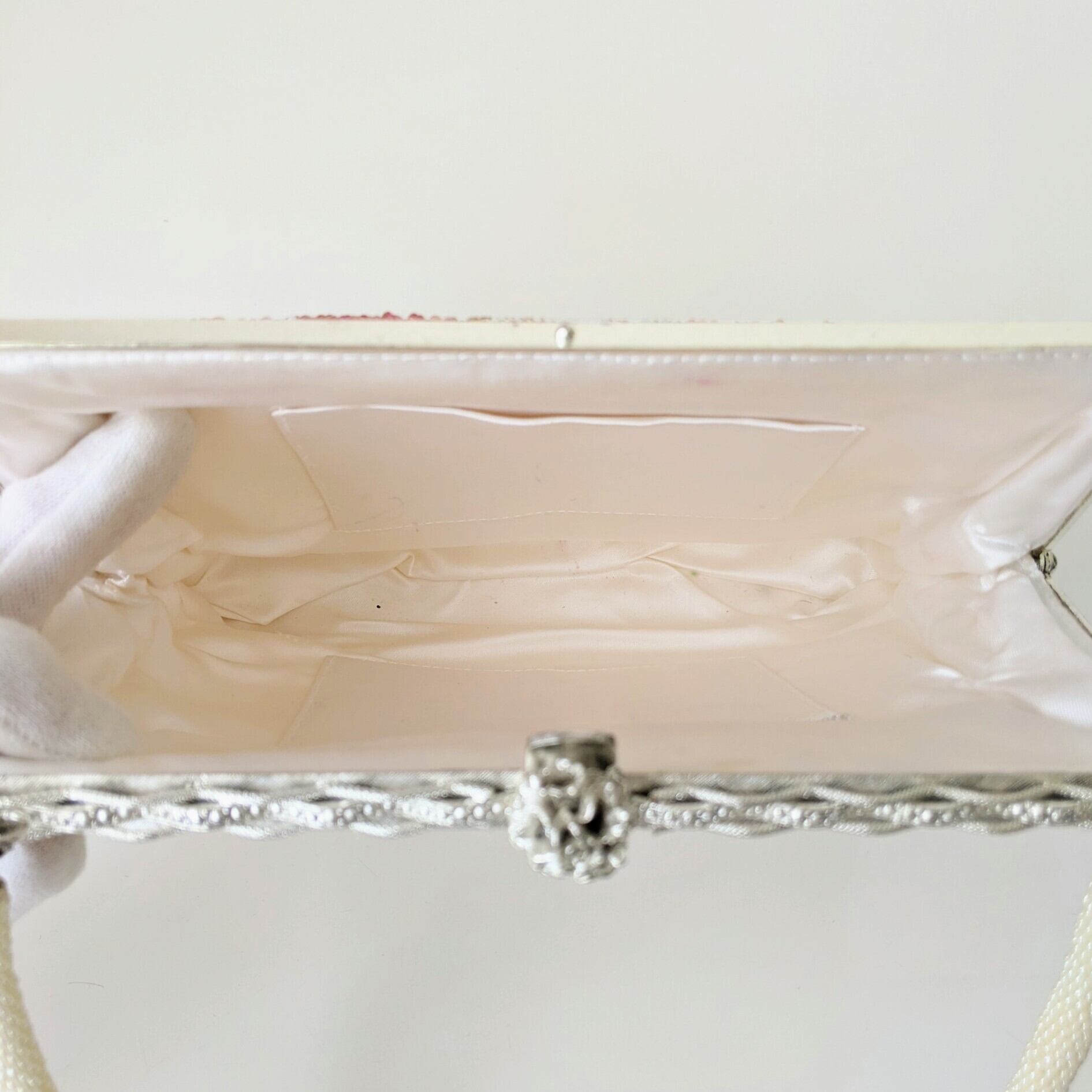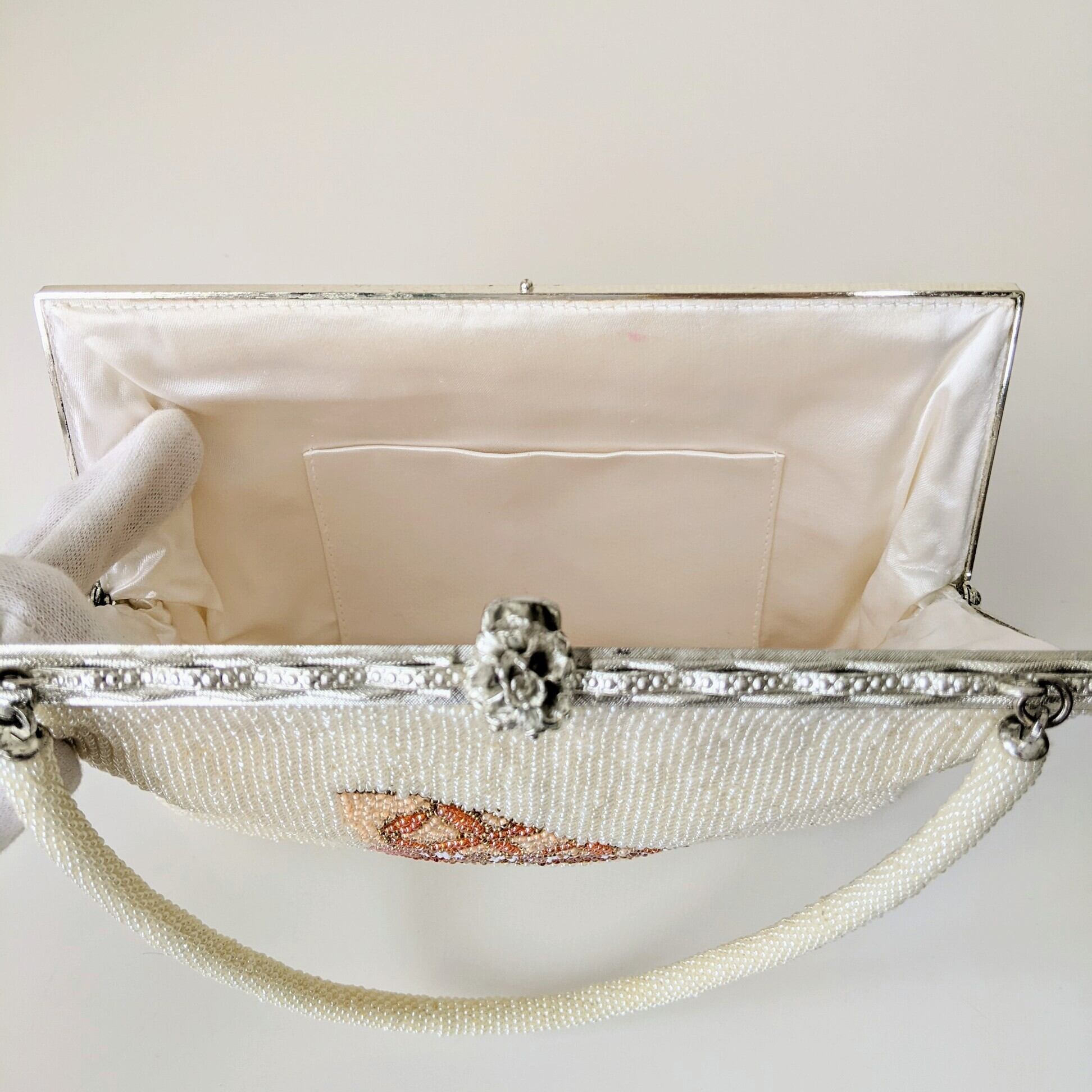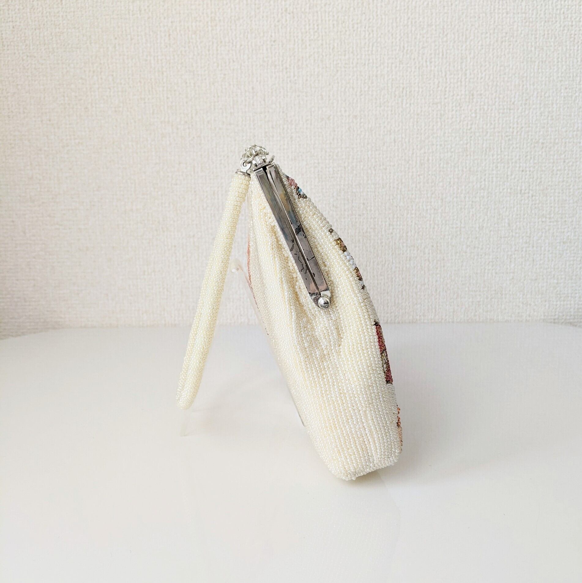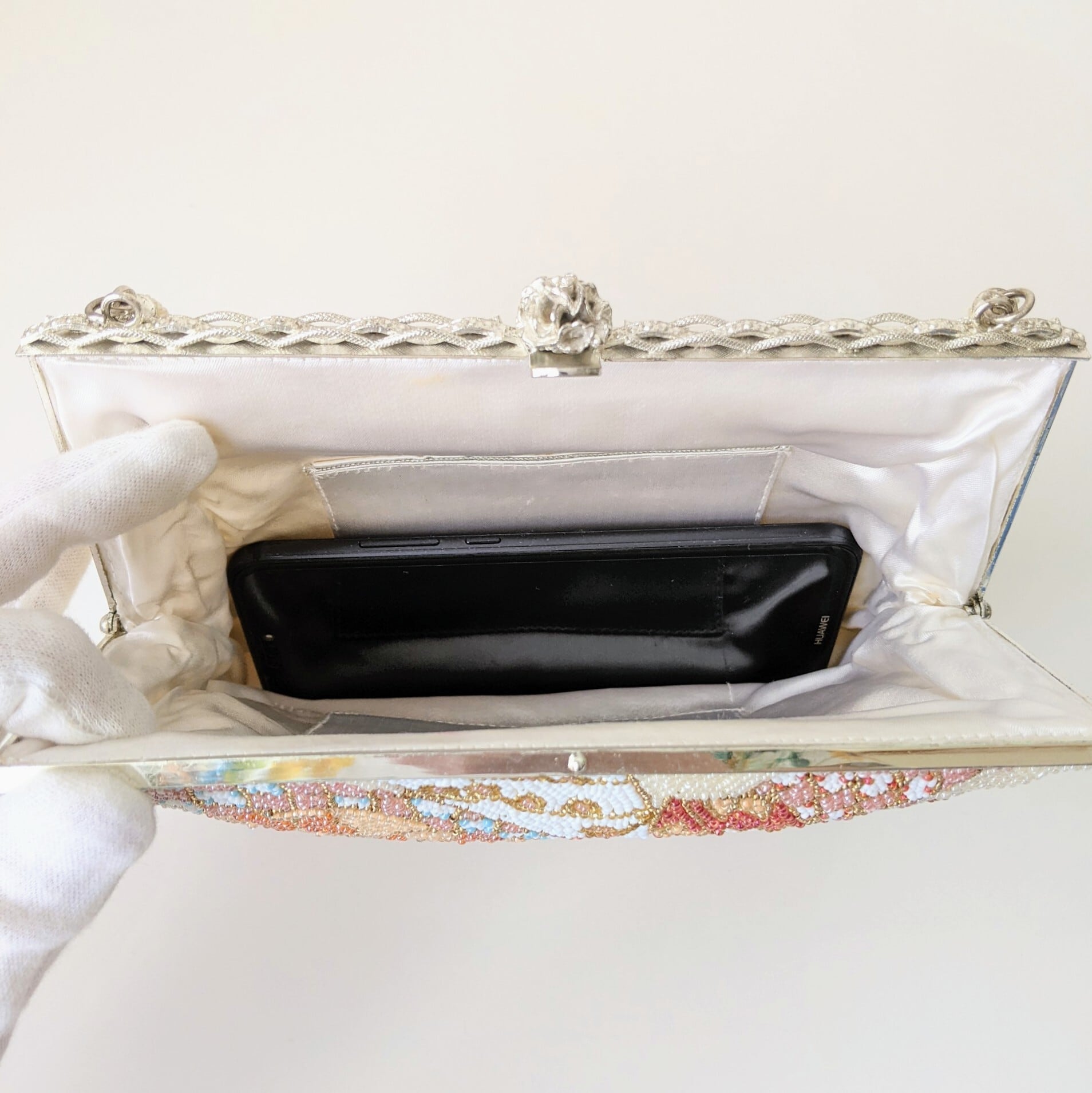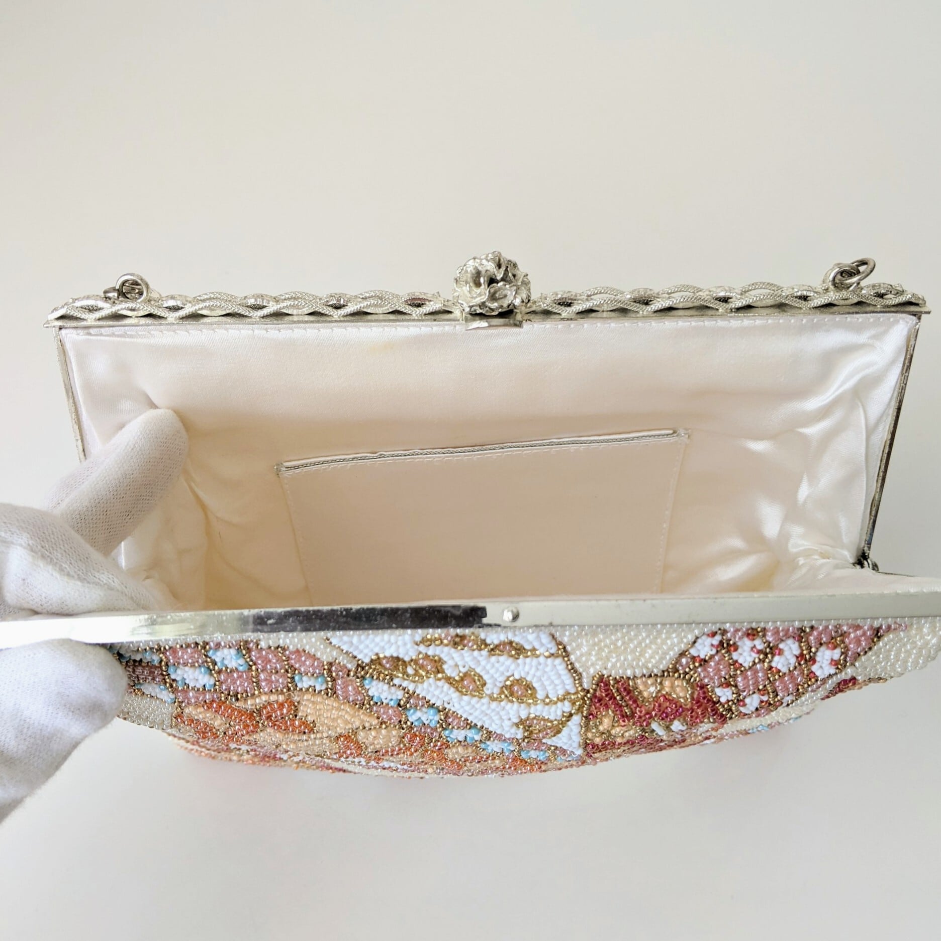 【Vintage】ビーズ刺繍バッグ Beaded Bag オフホワイト 束熨斗 縁起柄 パーティーバッグ 昭和レトロ 大正浪漫 フォーマルバッグ