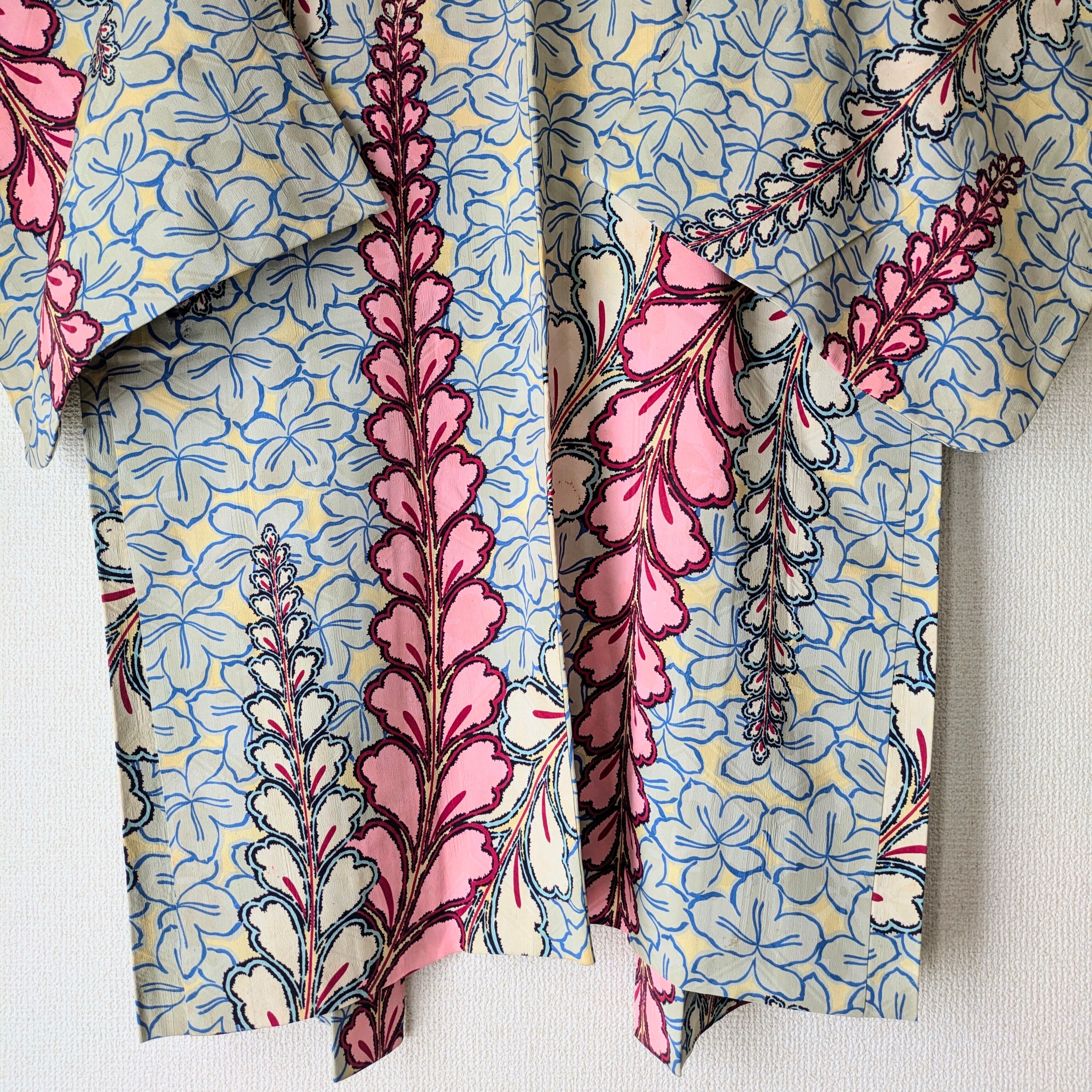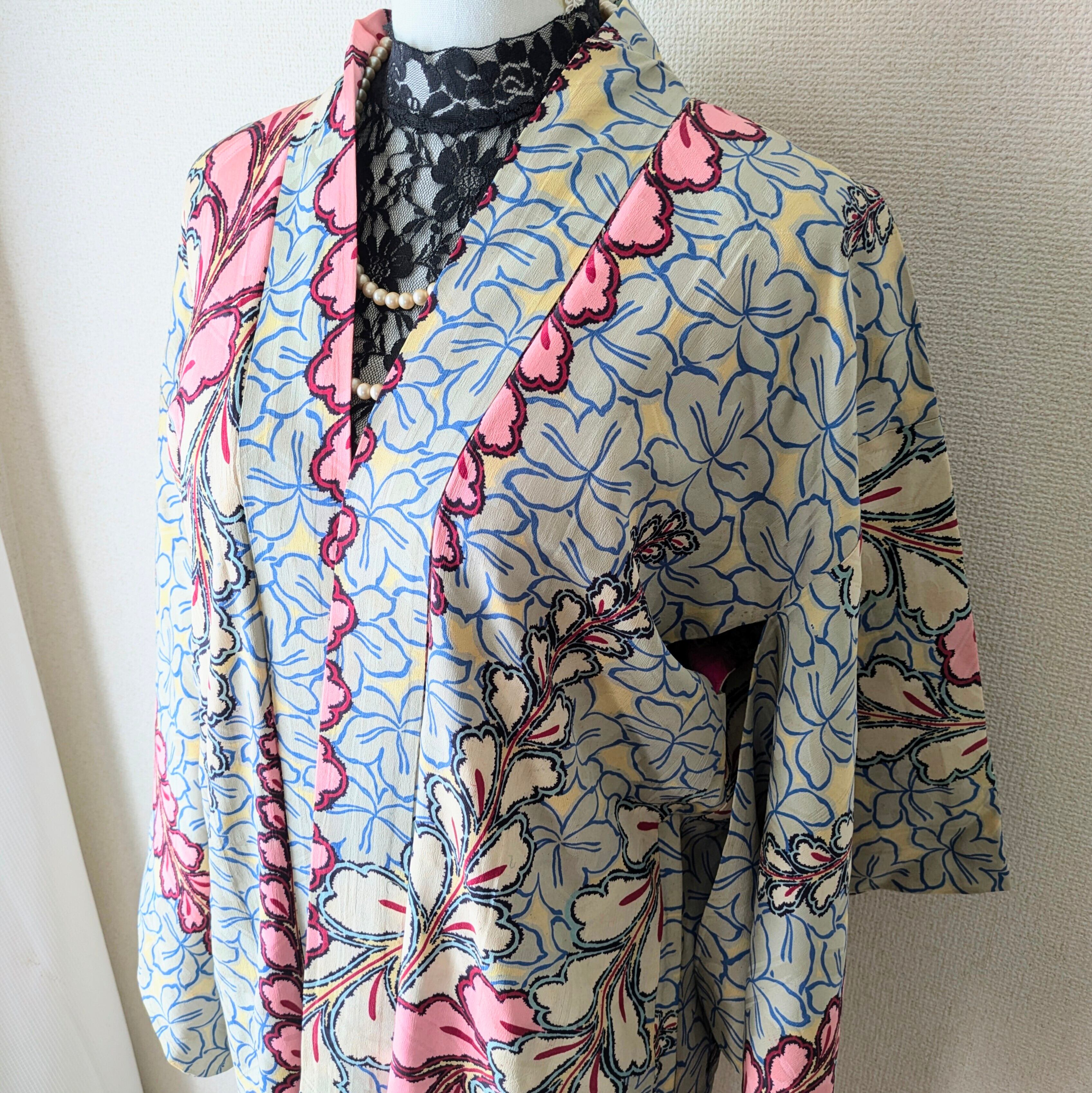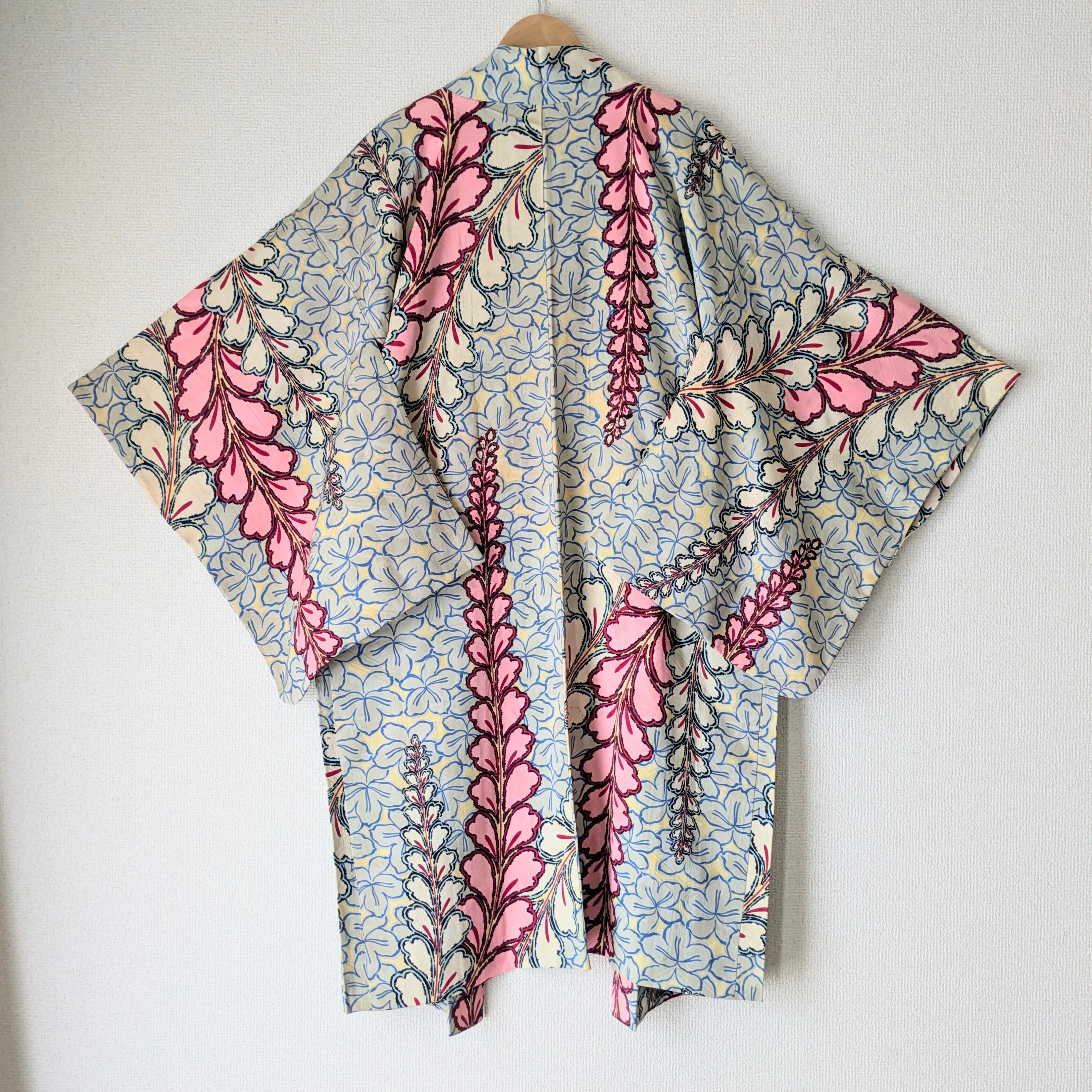 【Vintage】HAORI 長羽織 羽織 正絹 縮緬 藤の花 豪華 大正浪漫 古布 時代布 和洋折衷