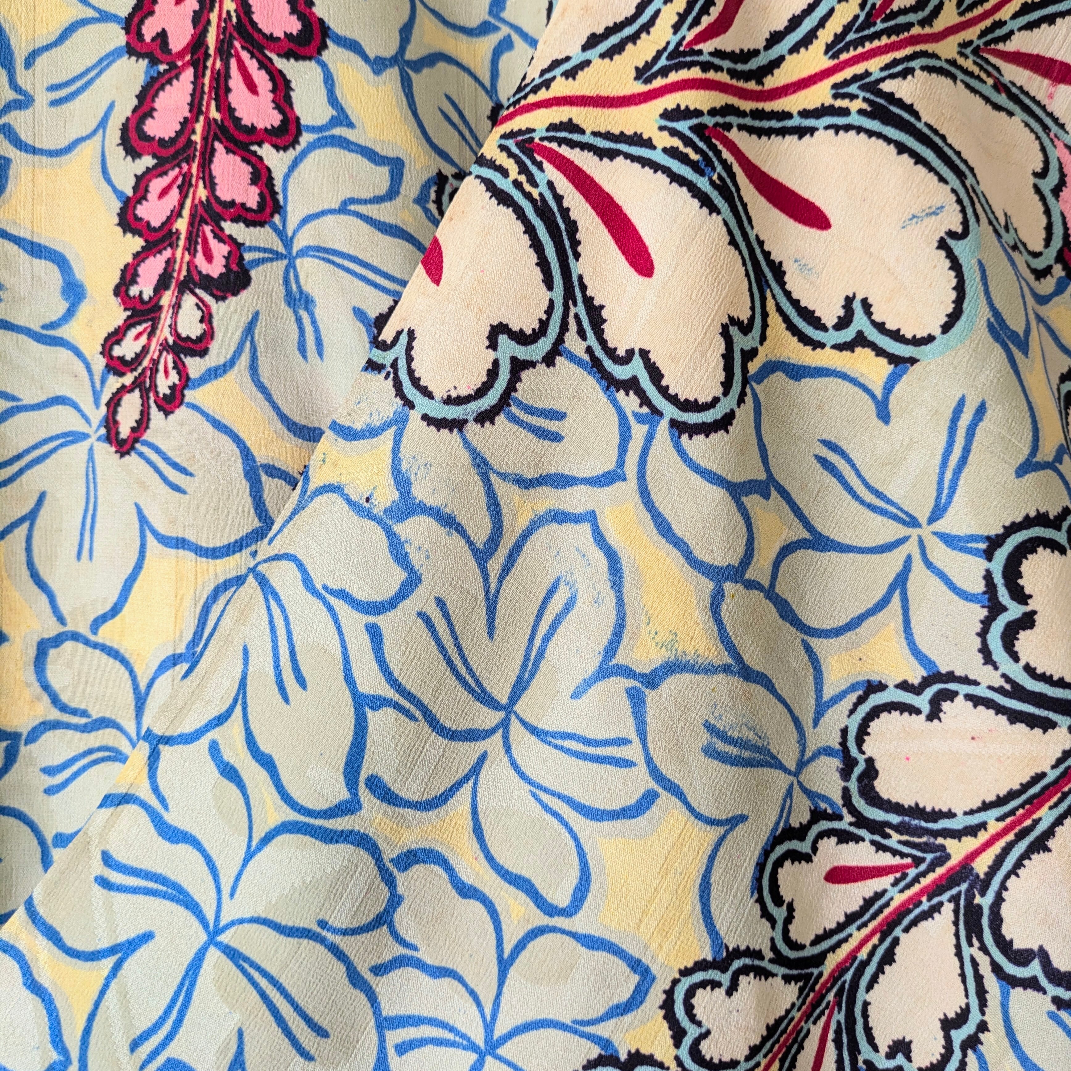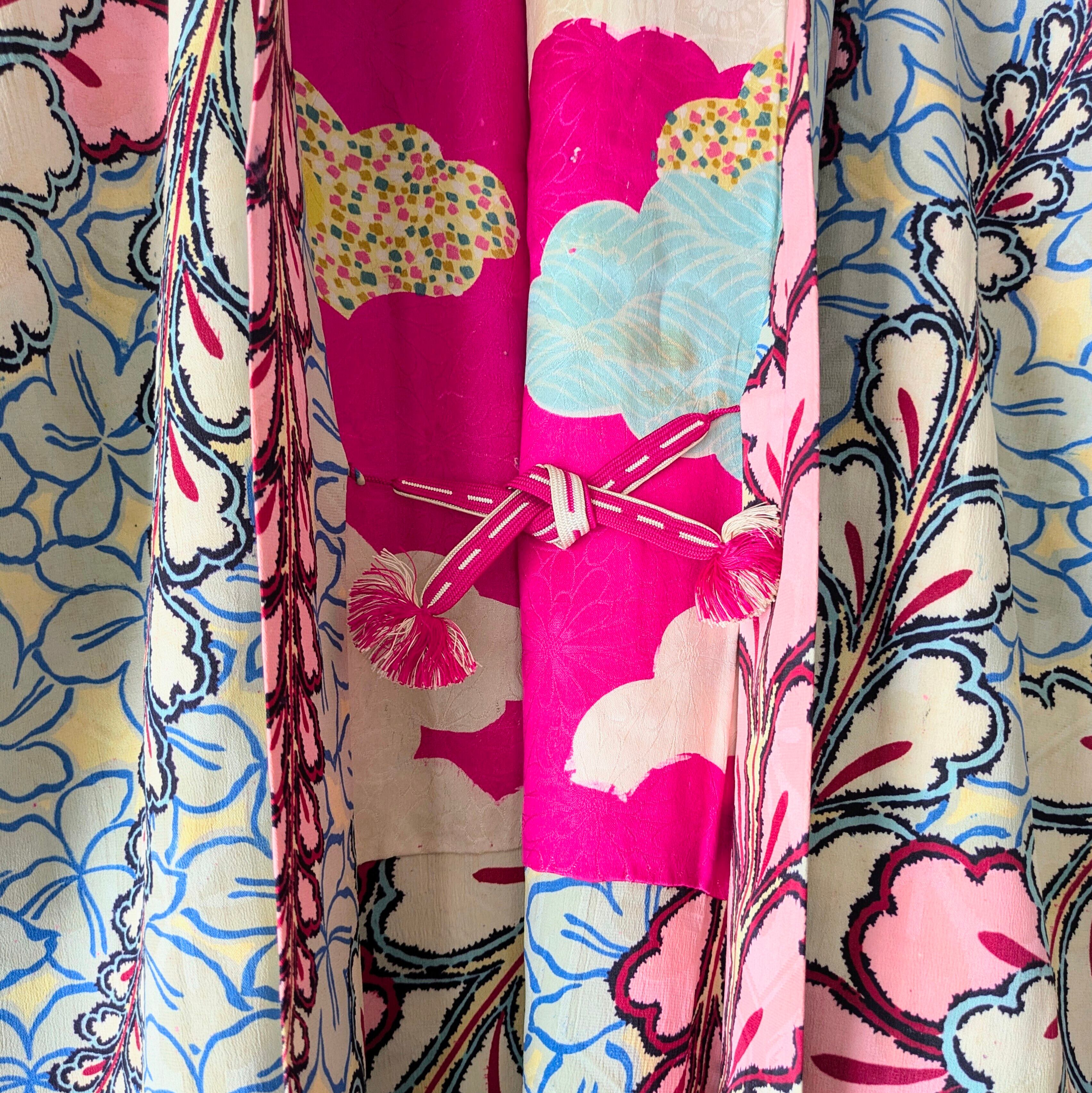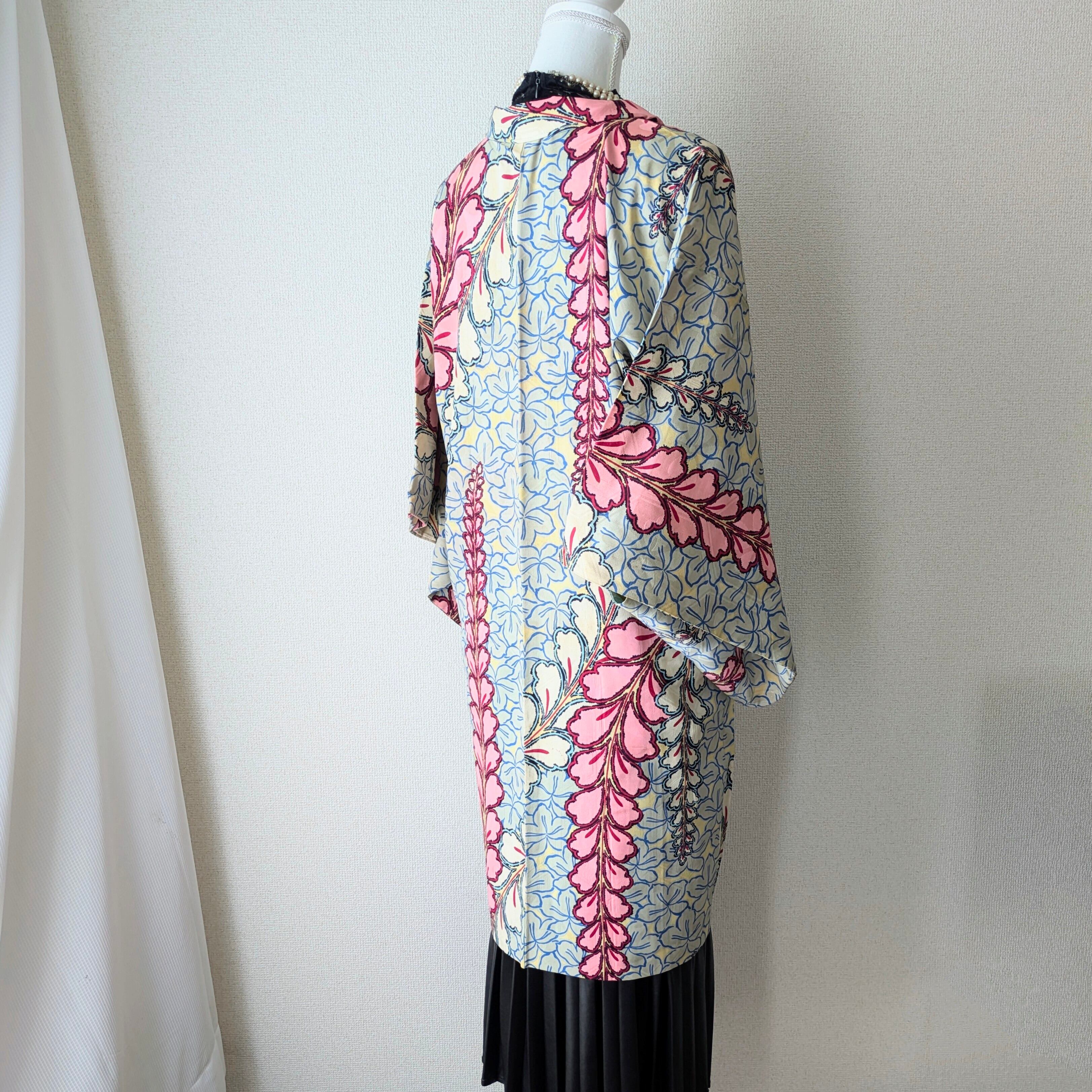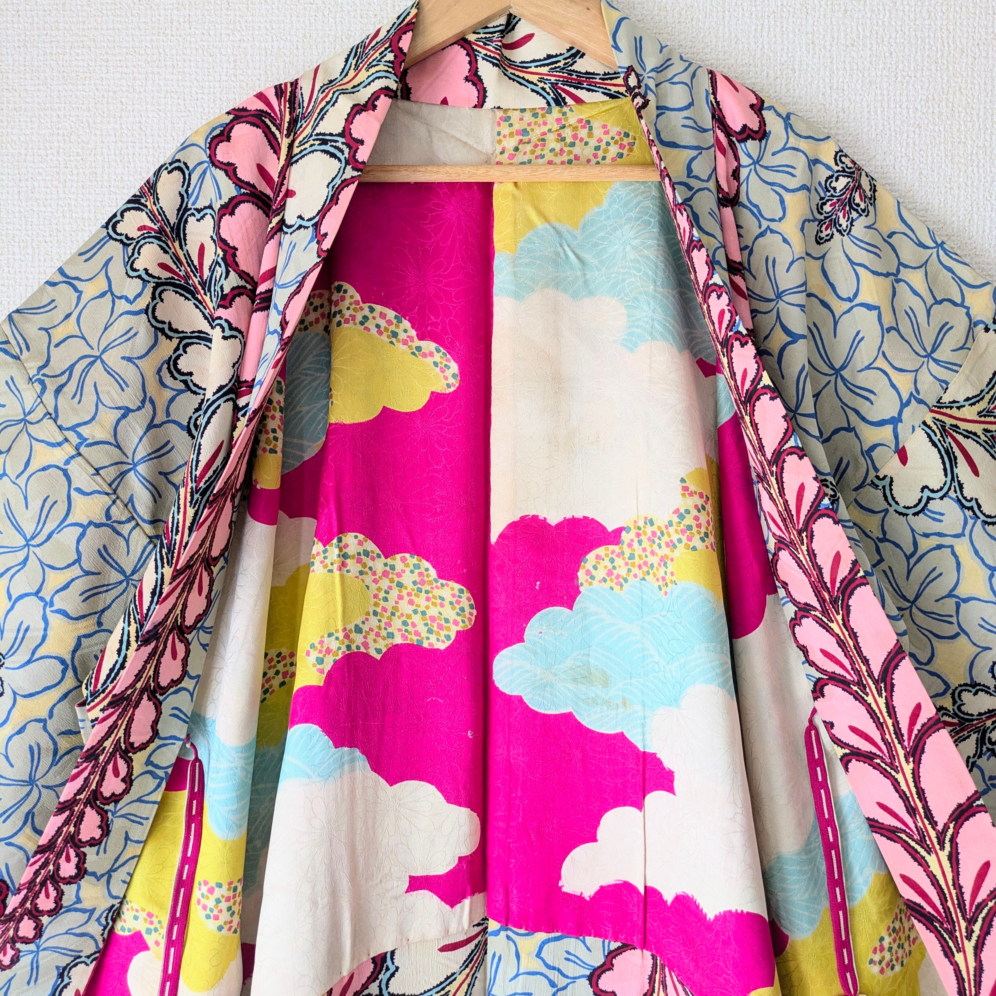 【Vintage】HAORI 長羽織 羽織 正絹 縮緬 藤の花 豪華 大正浪漫 古布 時代布 和洋折衷