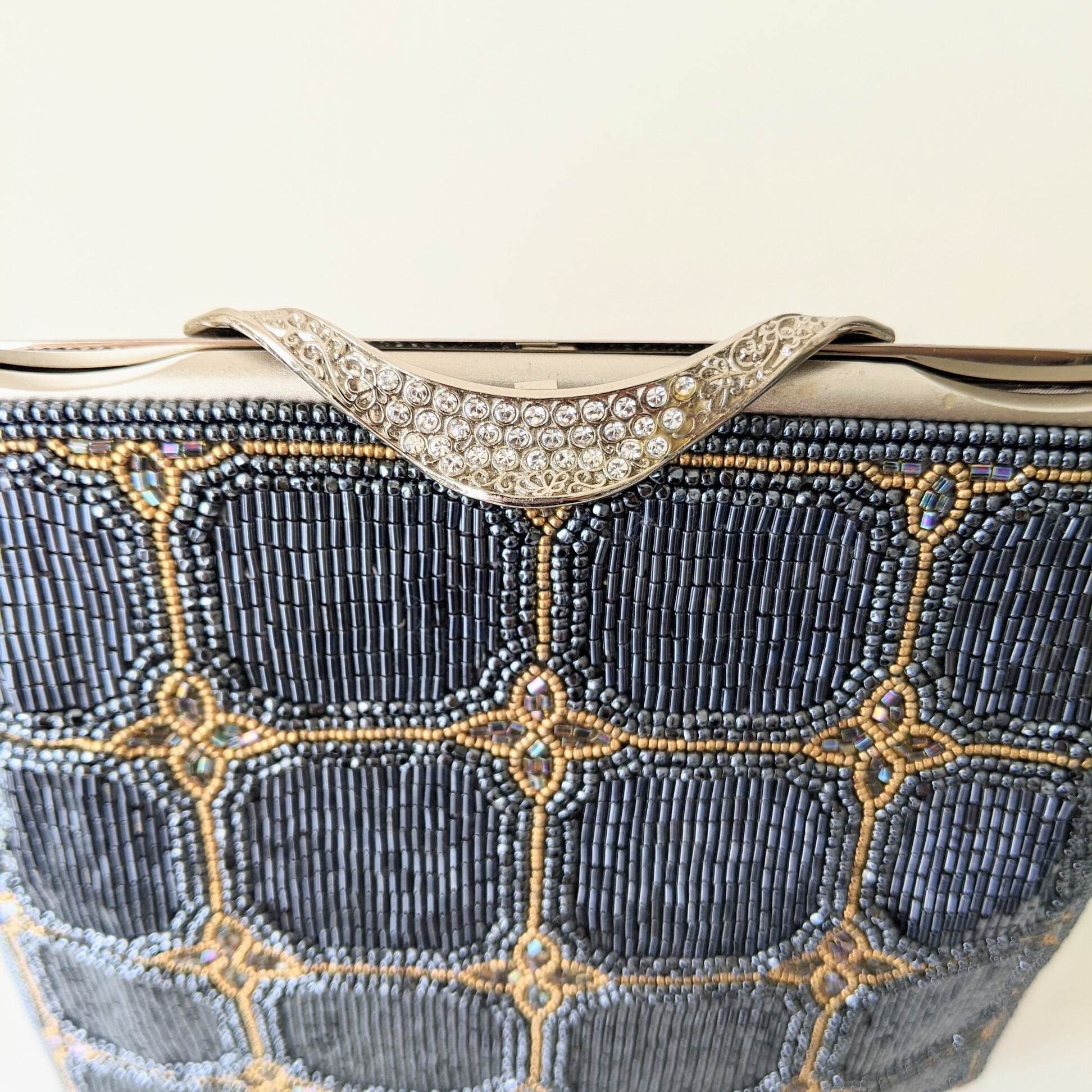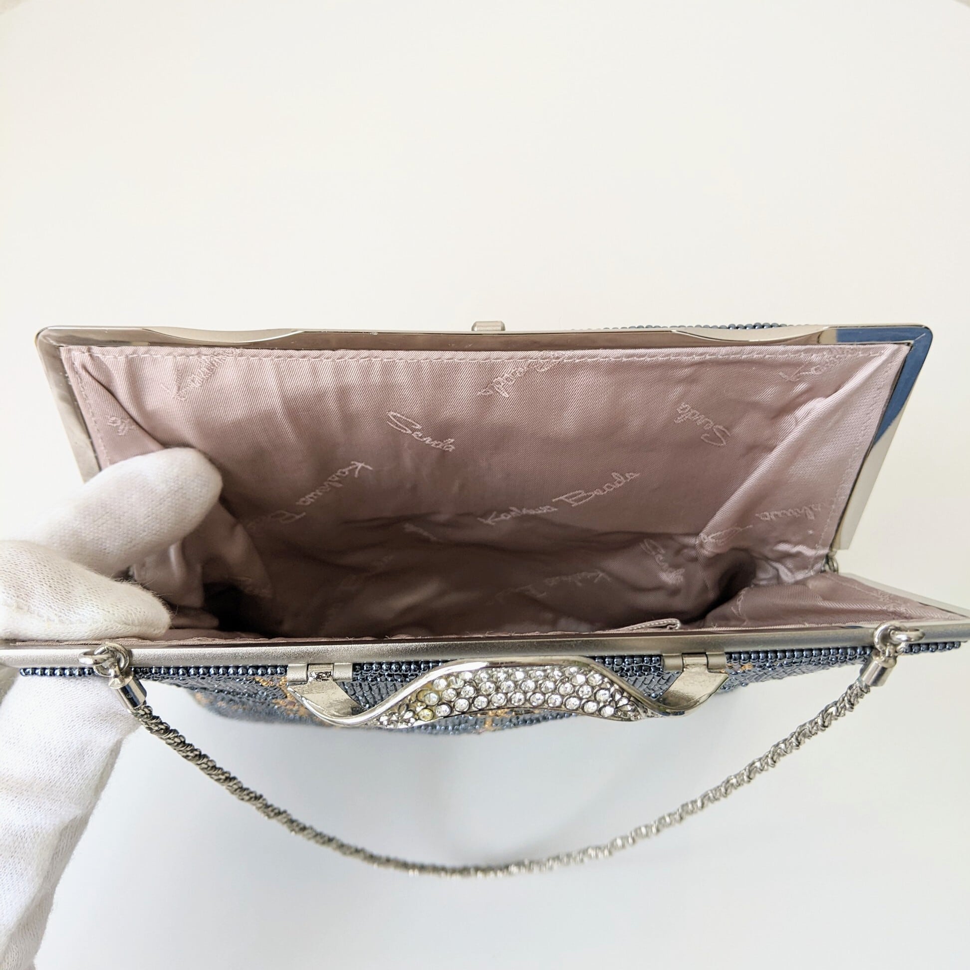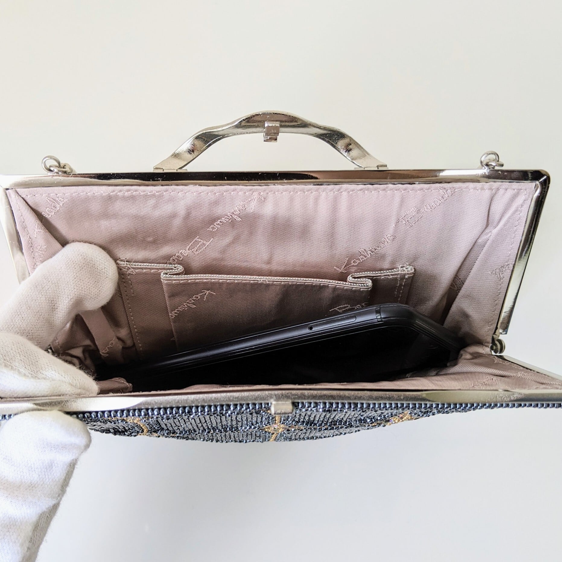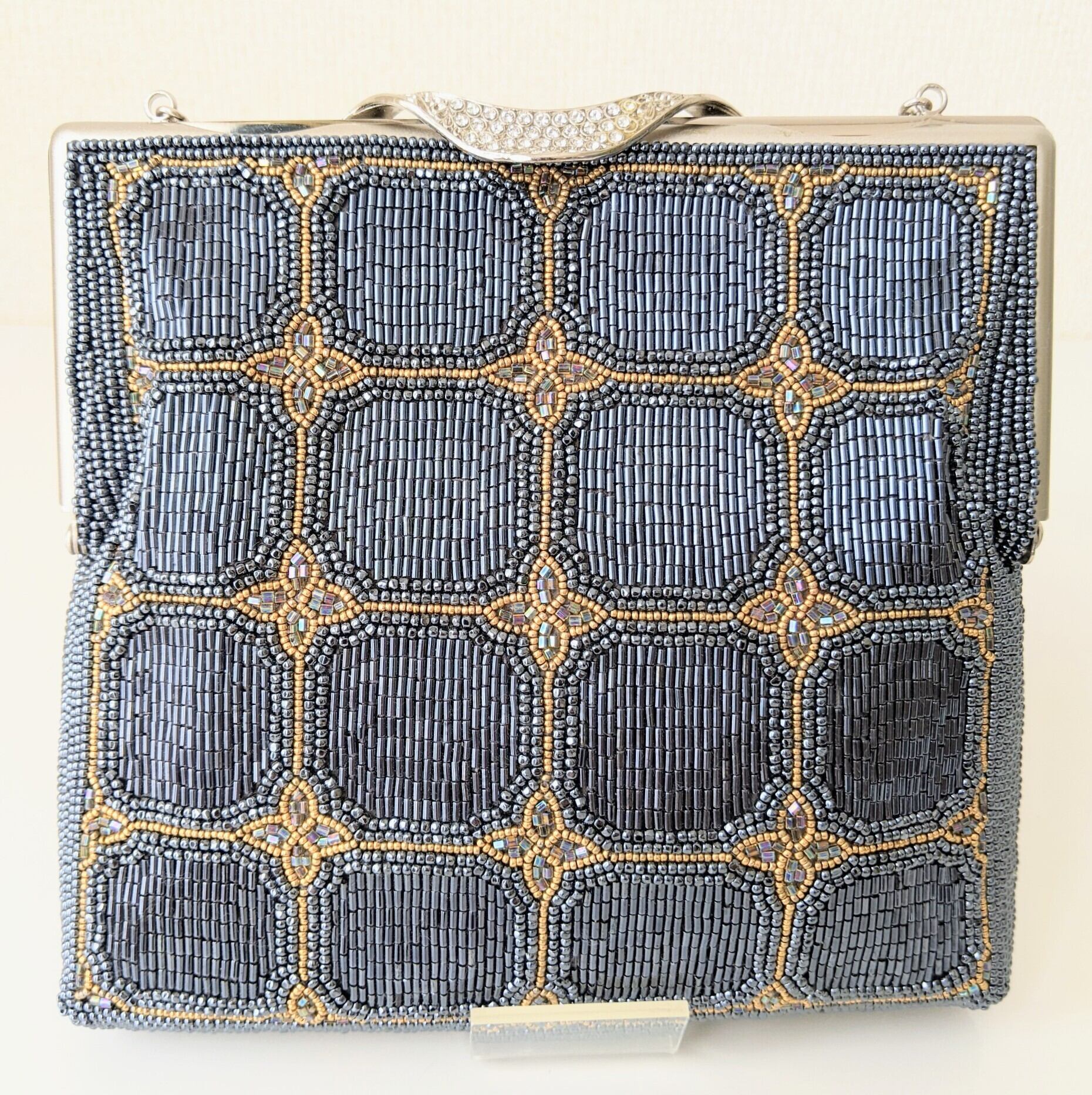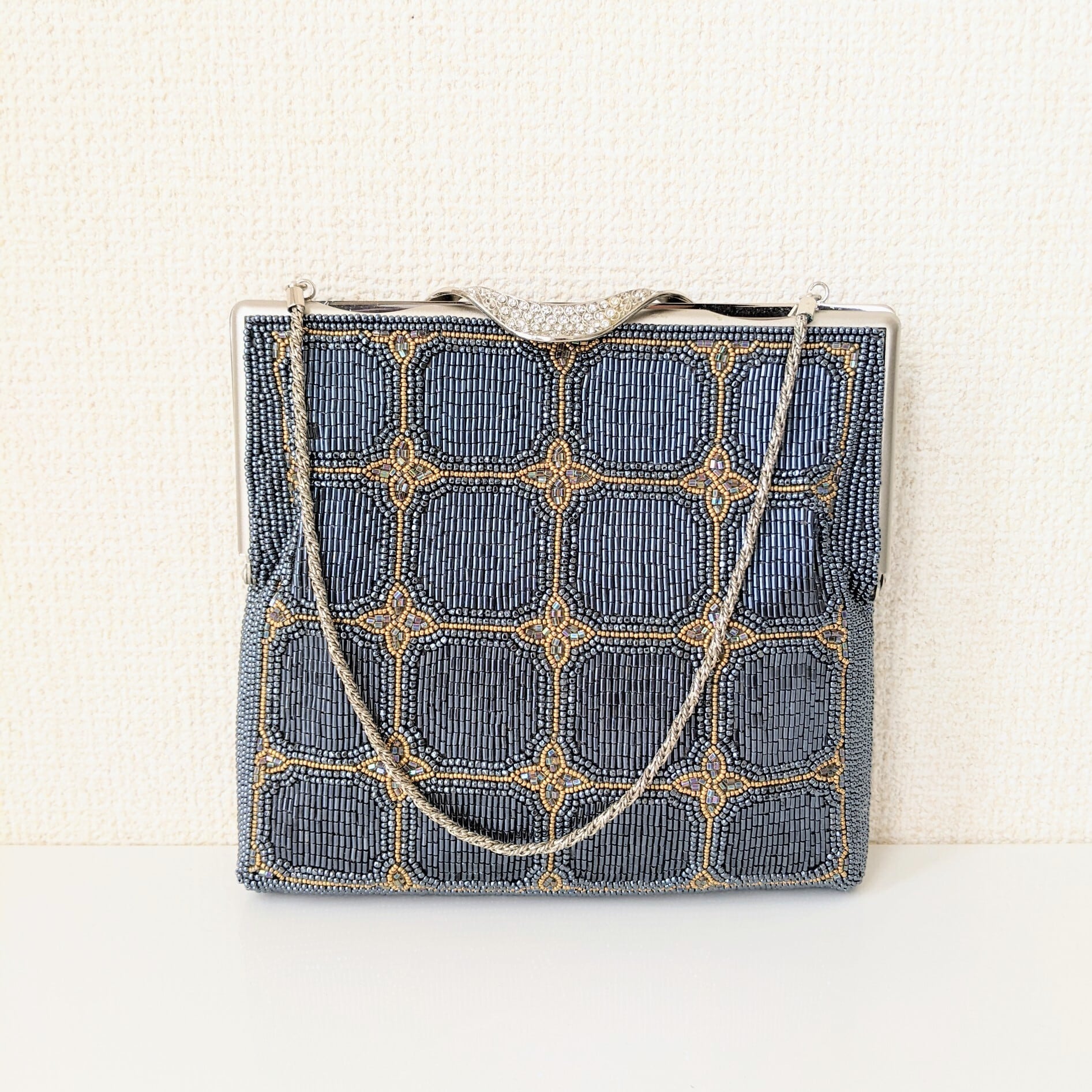柏ビーズ Kashiwa Beads ビーズ刺繍バッグ Beaded Bag グレー イブニングバッグ 老舗 高級 パーティ 結婚式 フォーマルバッグ