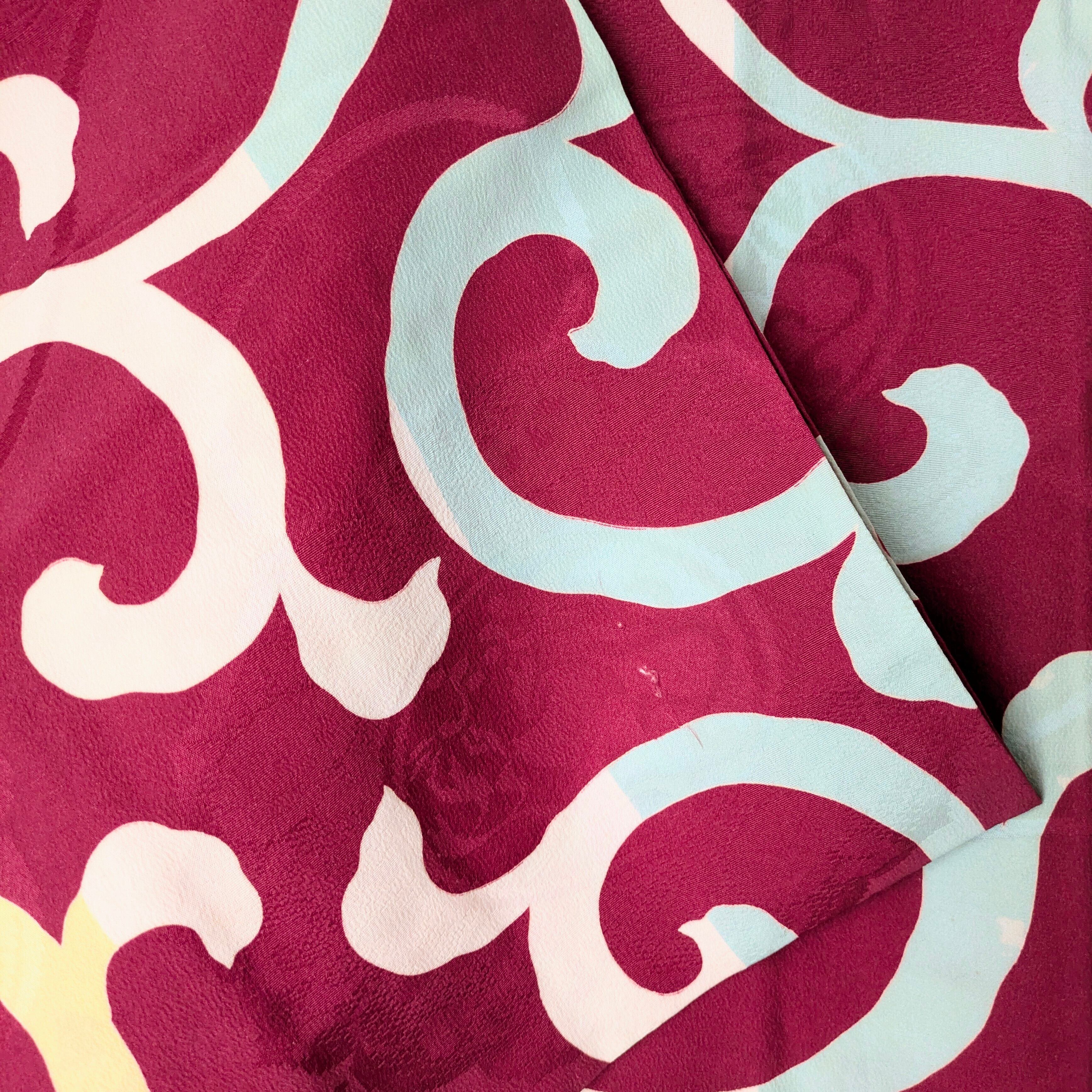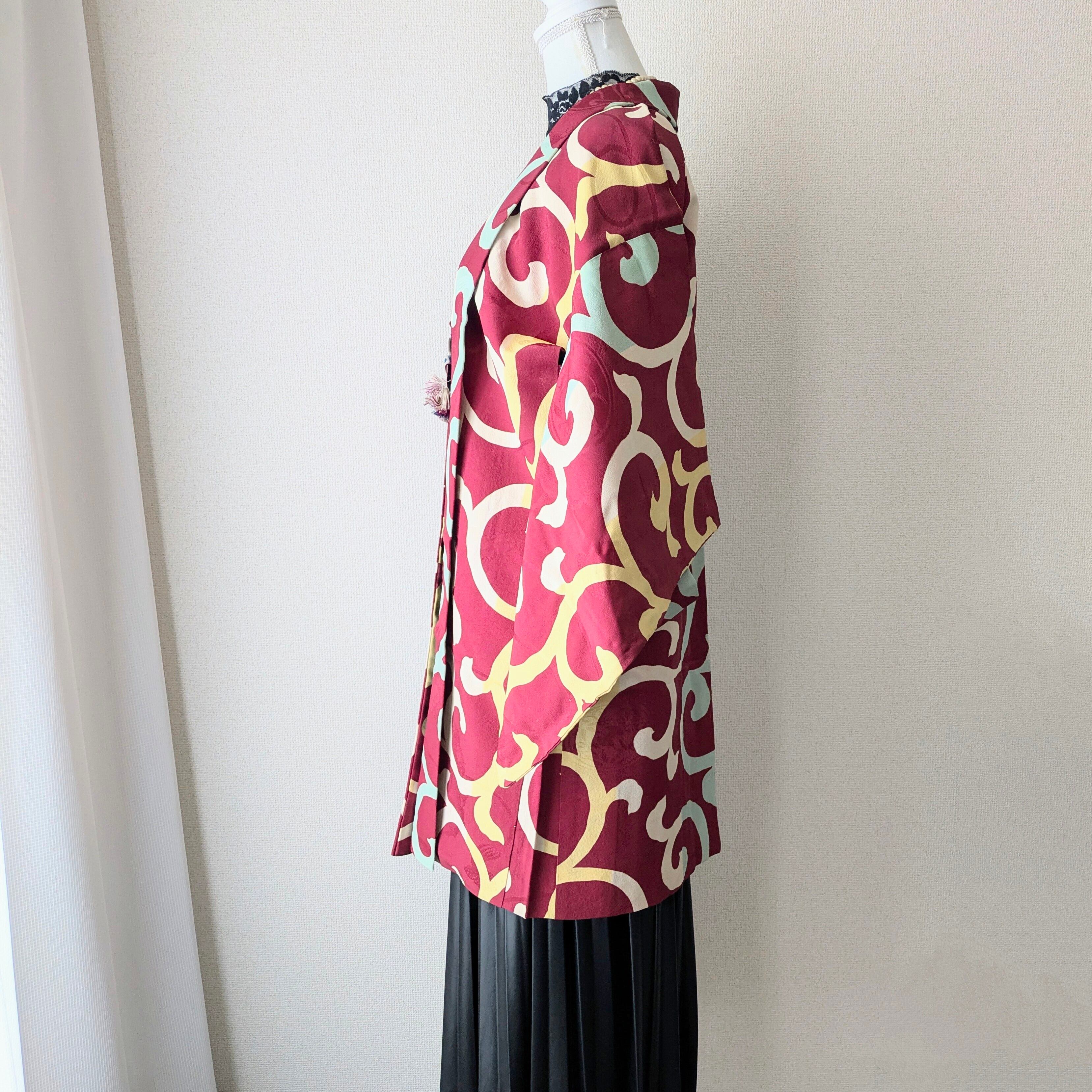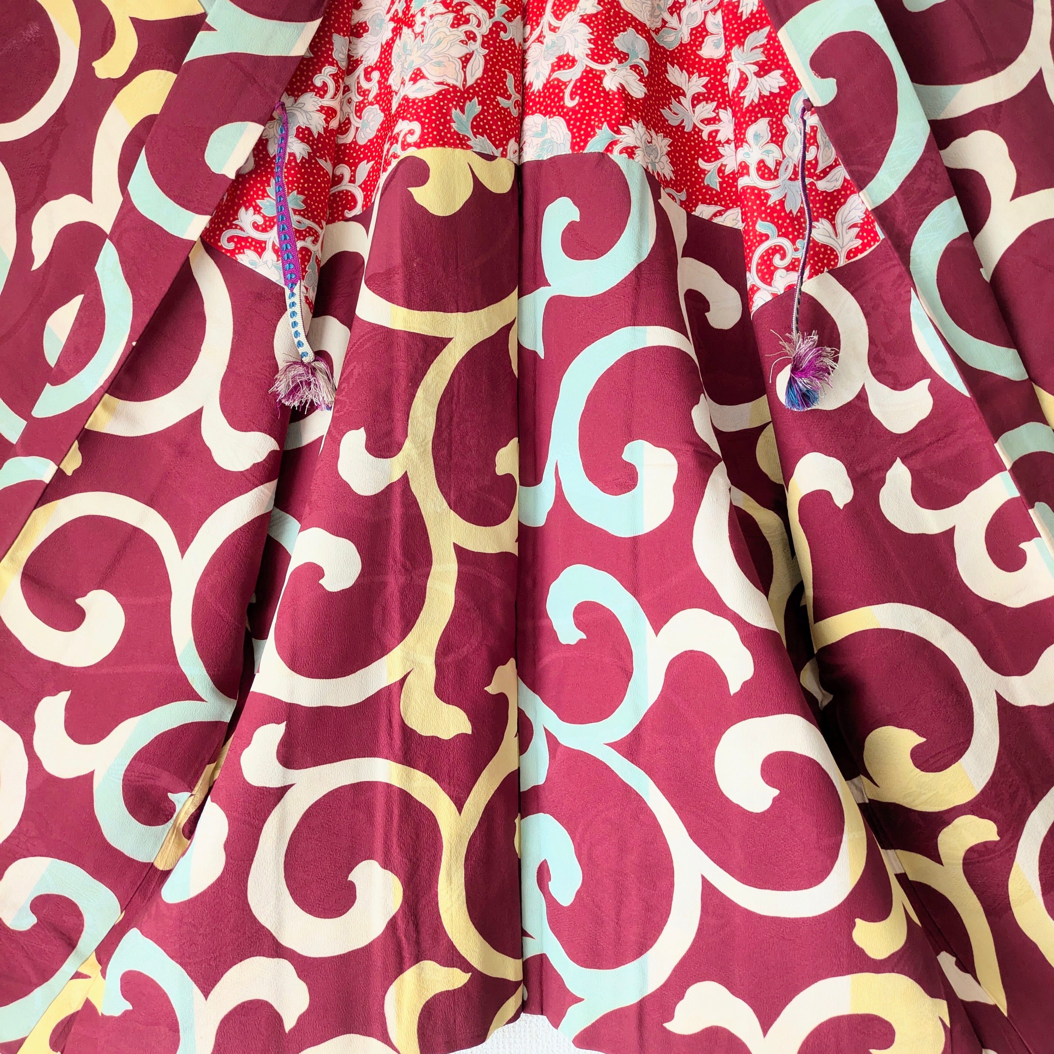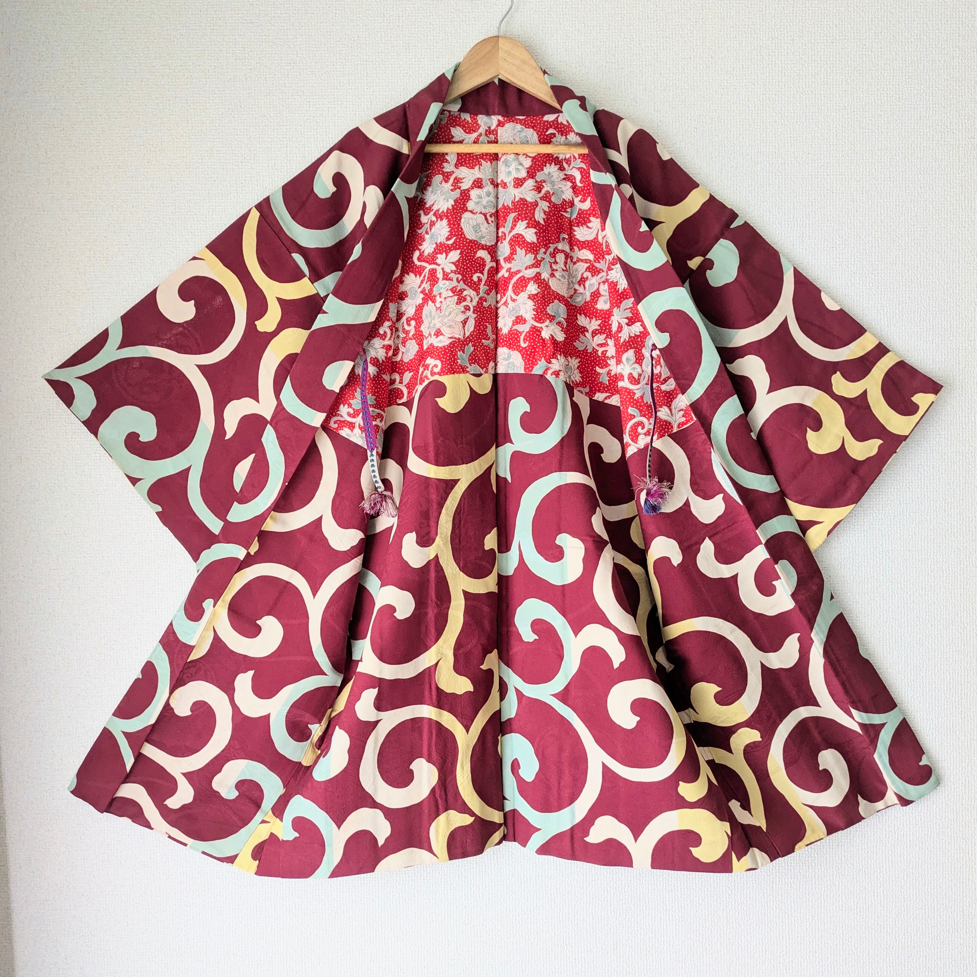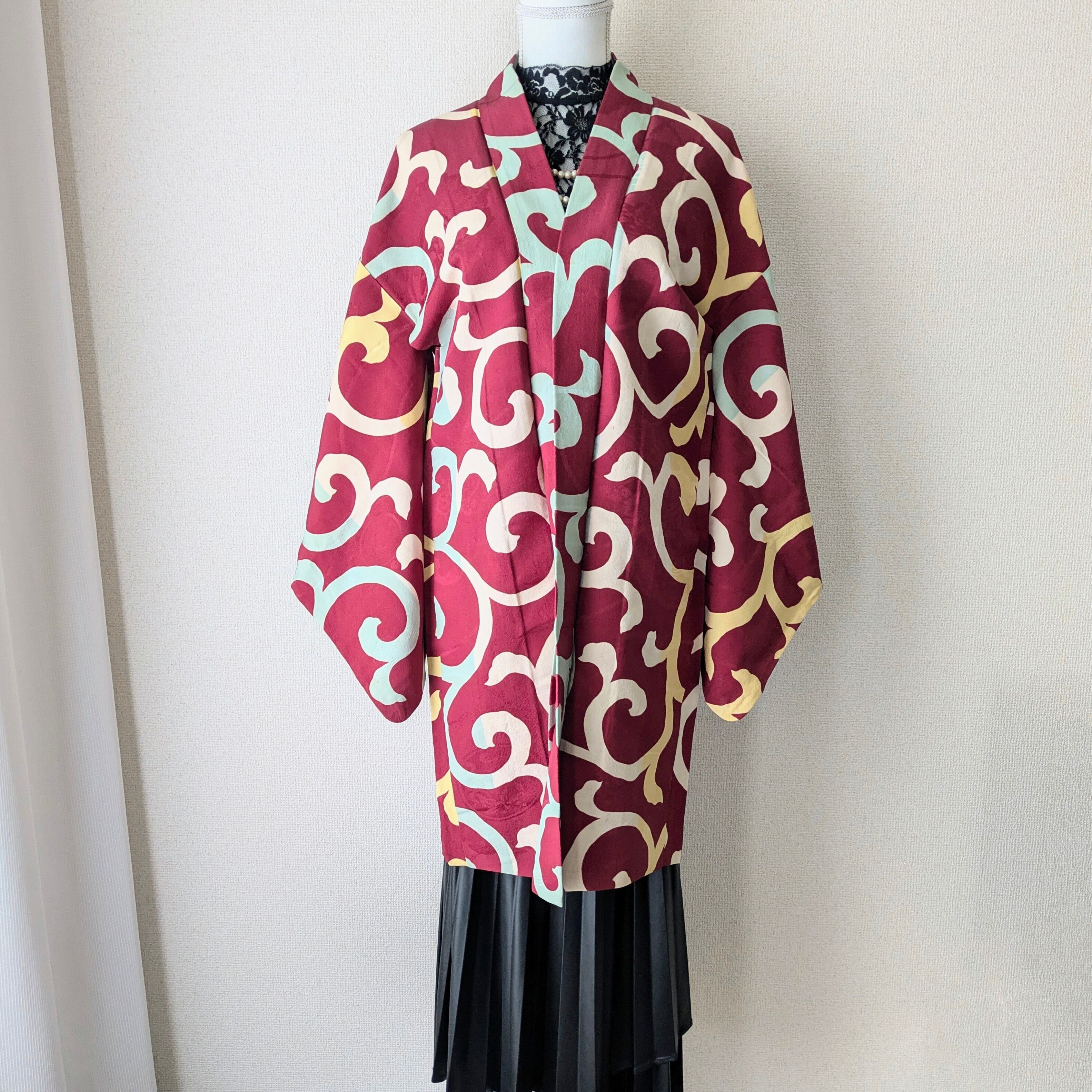 【Vintage】HAORI 長羽織 羽織 正絹 縮緬 臙脂色 大唐草 大正浪漫 古布 時代布 和洋折衷