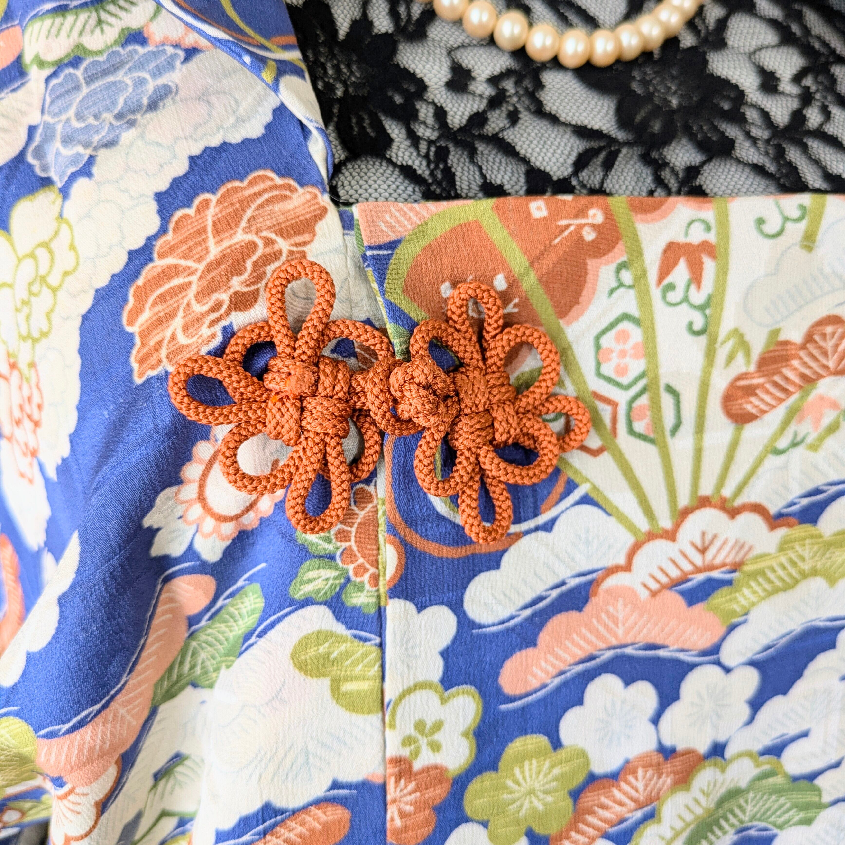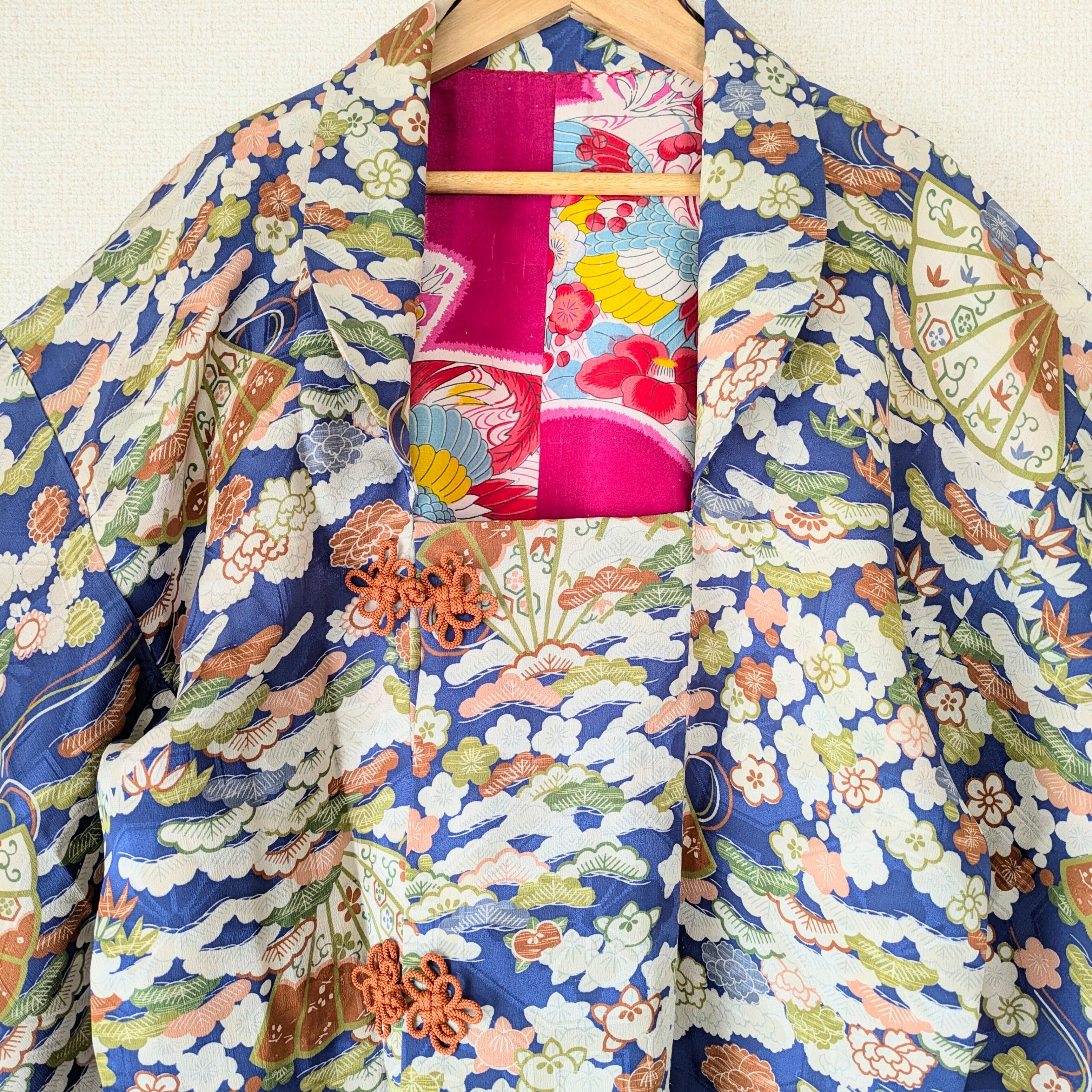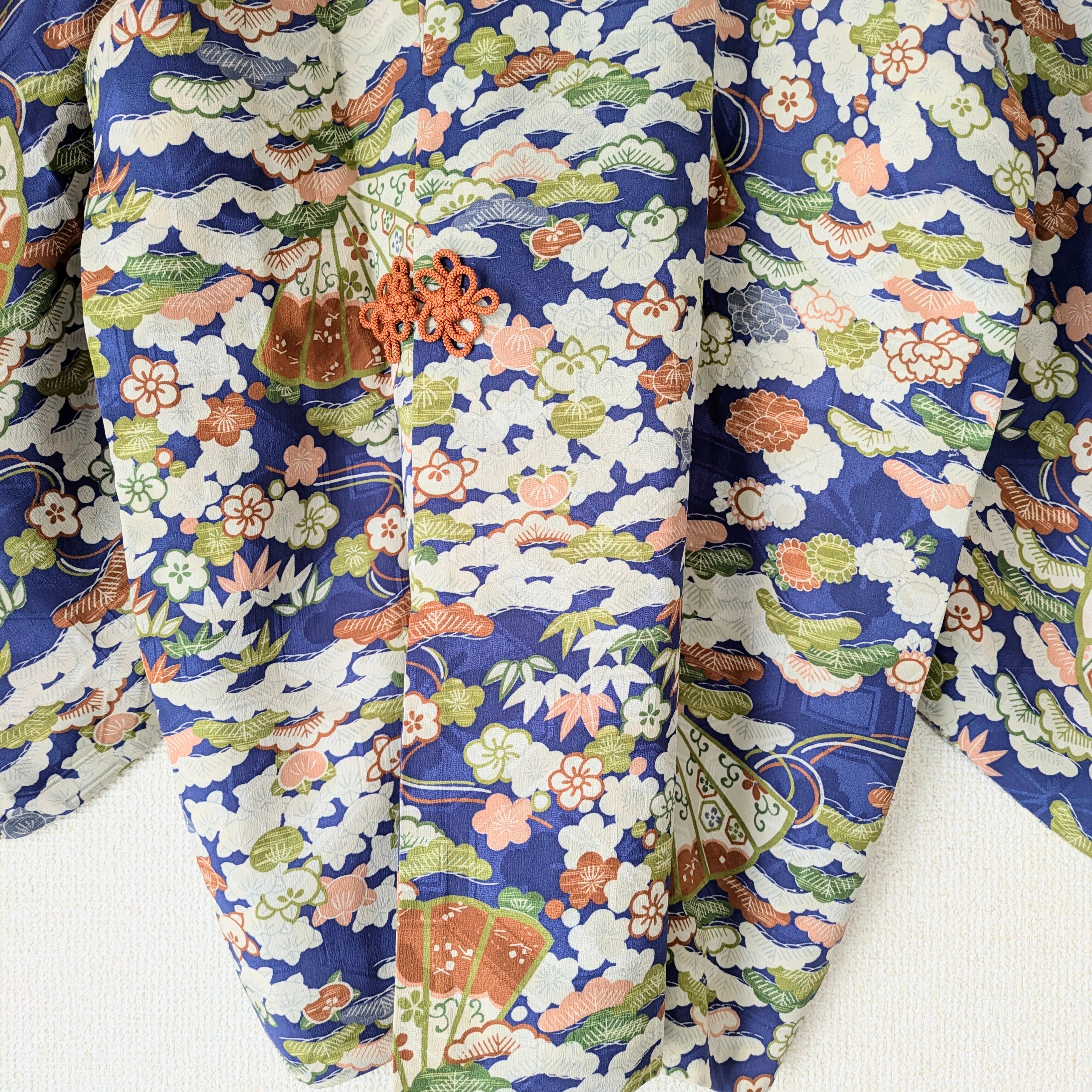 【Vintage】HAORI 長羽織 羽織 正絹 縮緬 道行 コート 襟付き 松竹梅 吉祥柄 大正浪漫 古布 時代布 和洋折衷