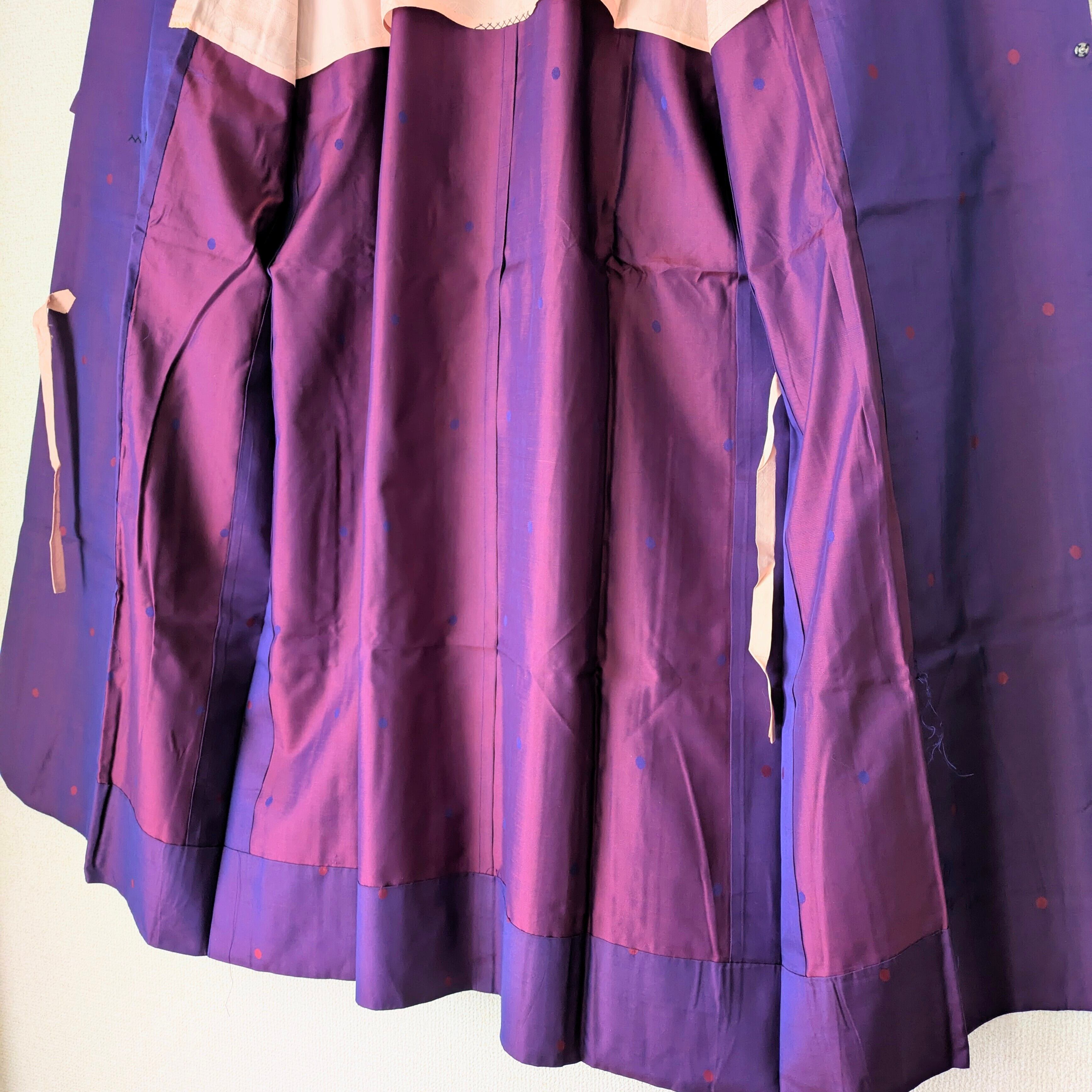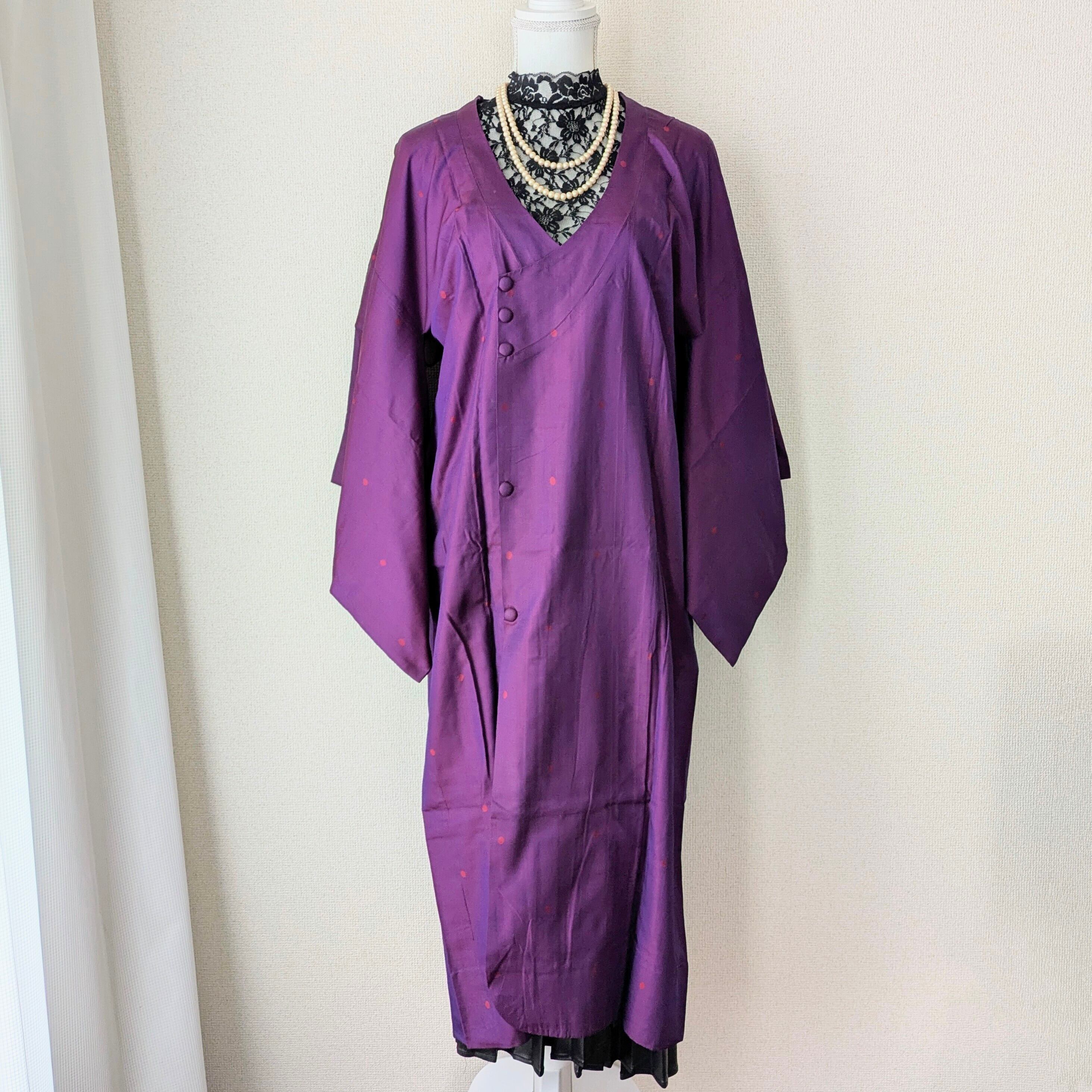 まるでドレスのような美しいシルエットの道行コートです。和装ジャンルとしては道行(コート)になりますが、生地の質やデザインなど、オリエンタルなドレスとしてお召しいただいても素敵かと思います。