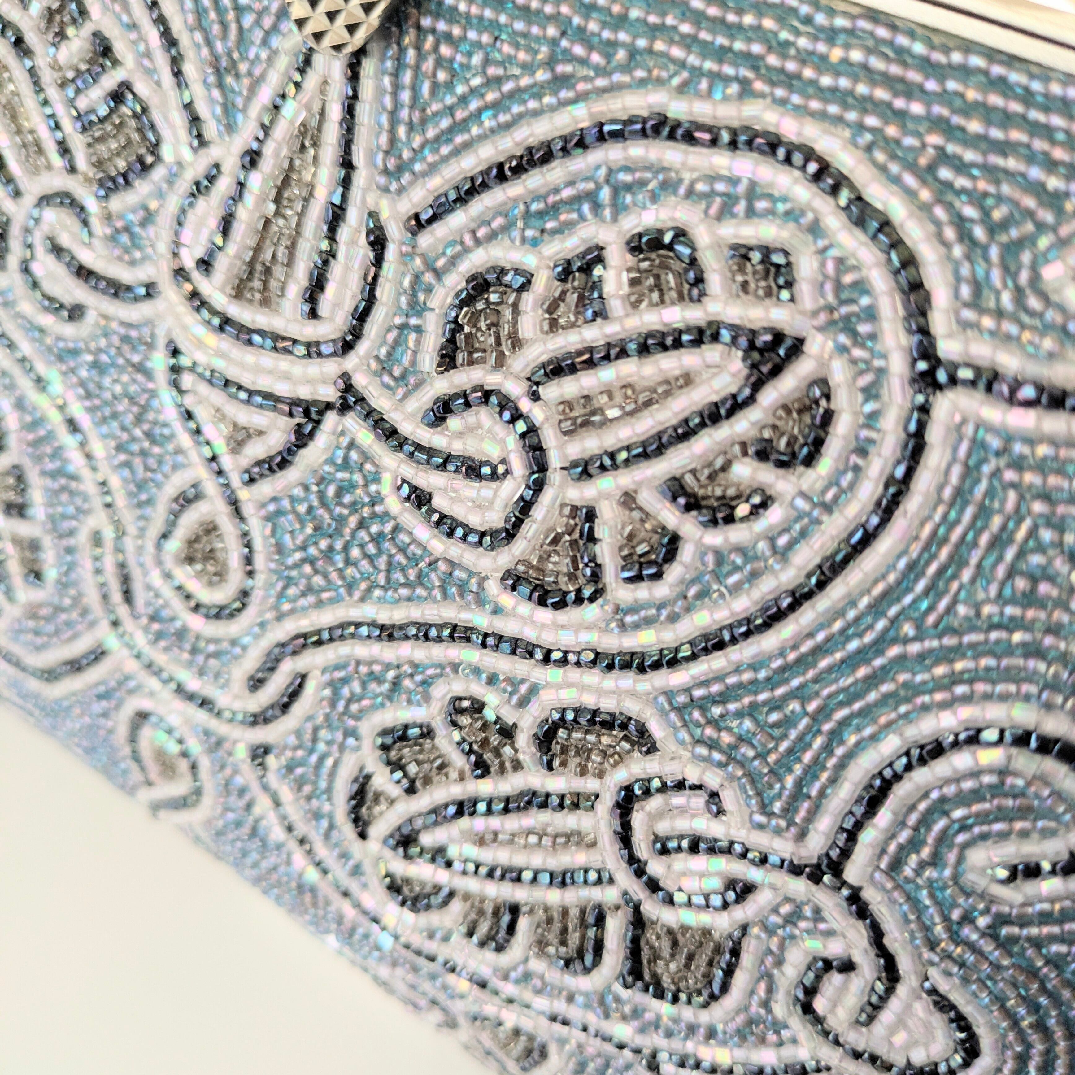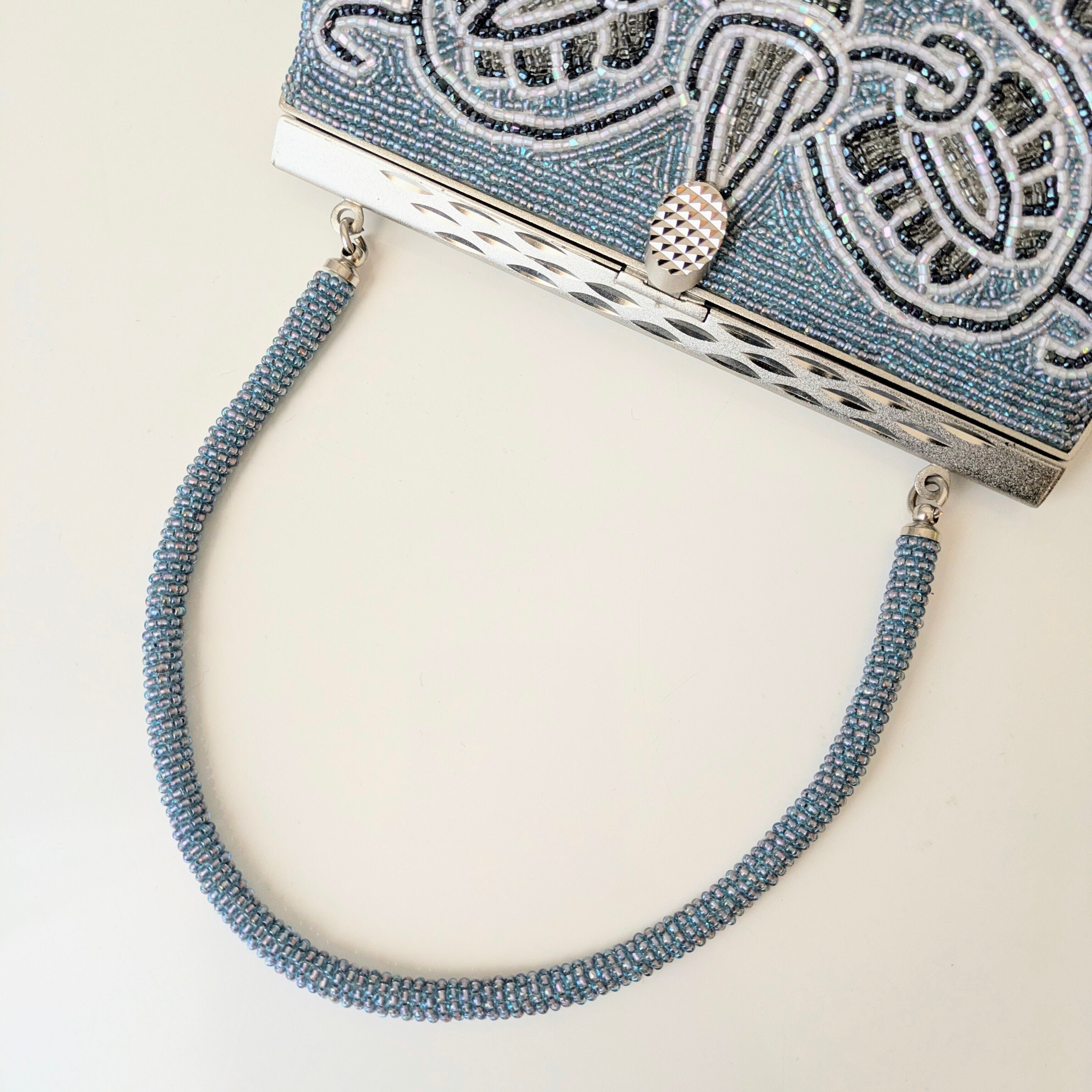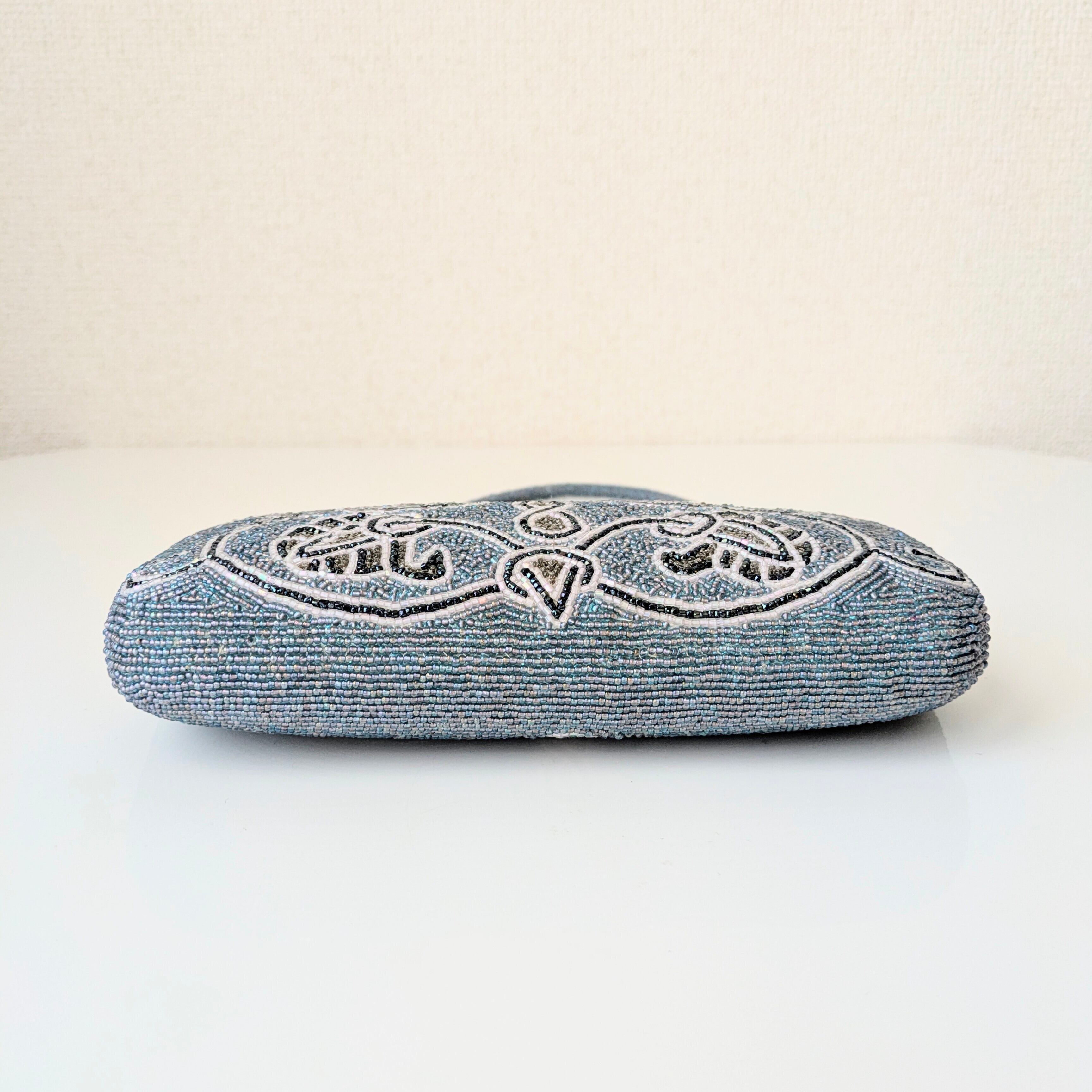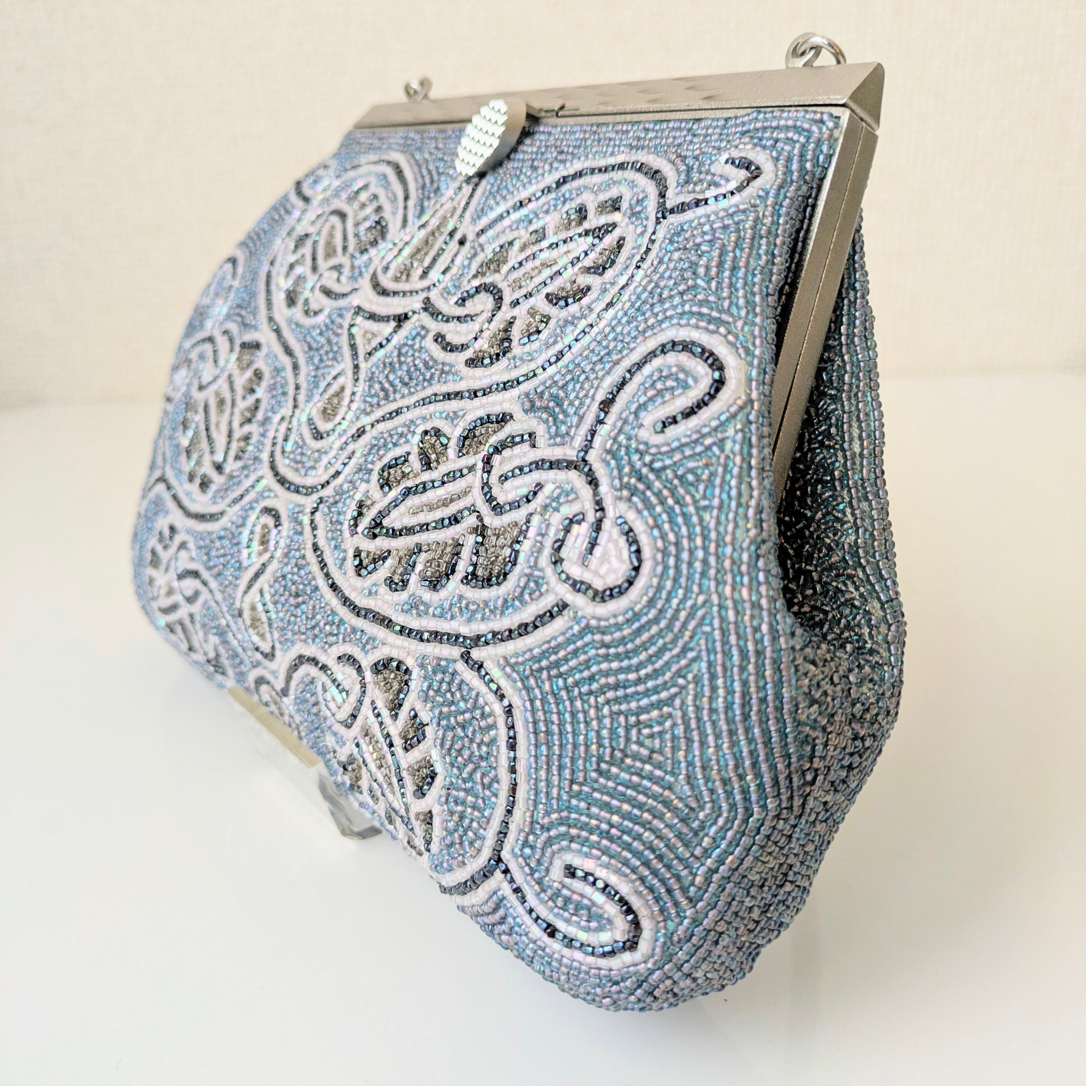 ビーズバッグの楽しみは、何と言っても手編みのビーズ刺繍。職人が一つ一つ丁寧に手作業で編み上げた、贅沢で美しいディテールです。