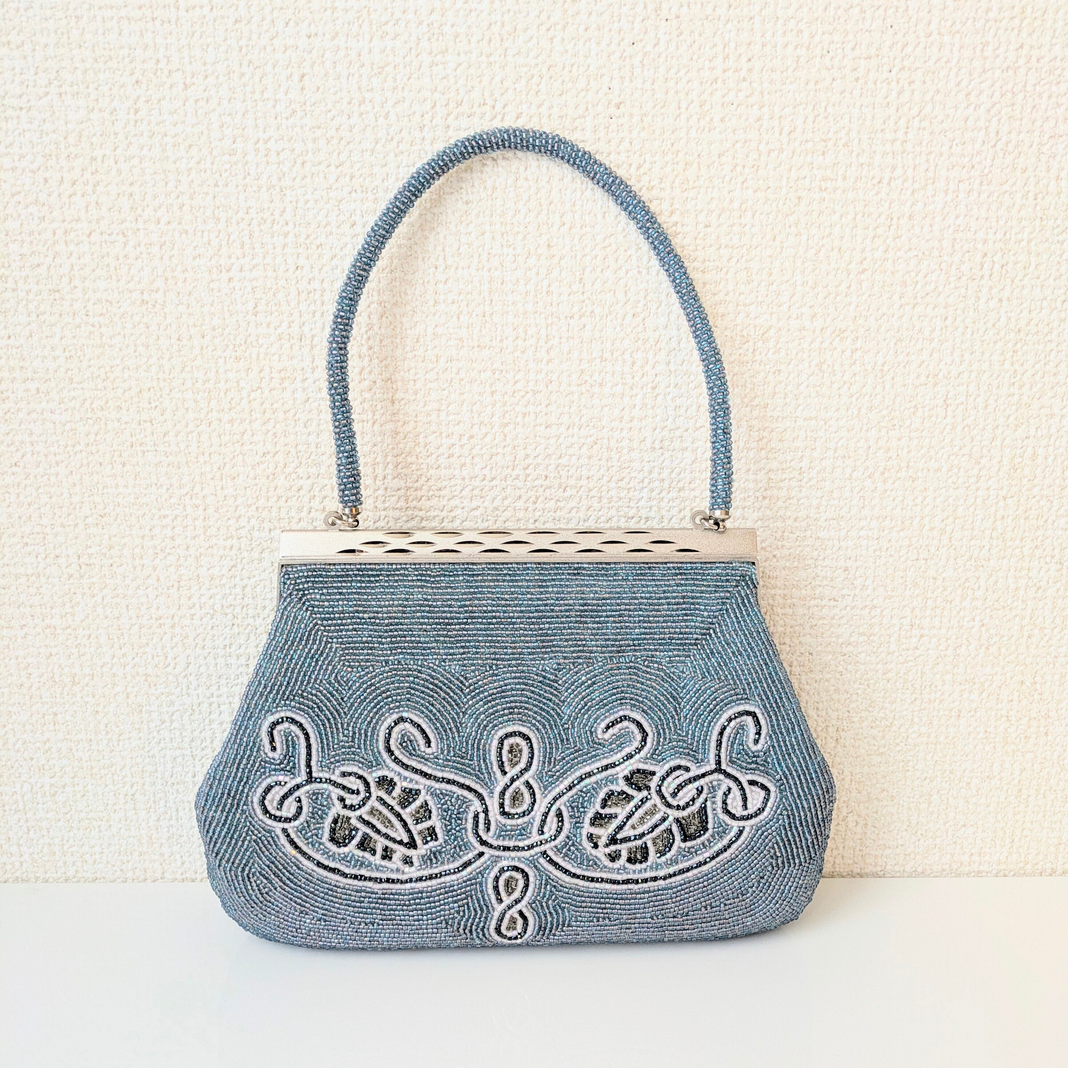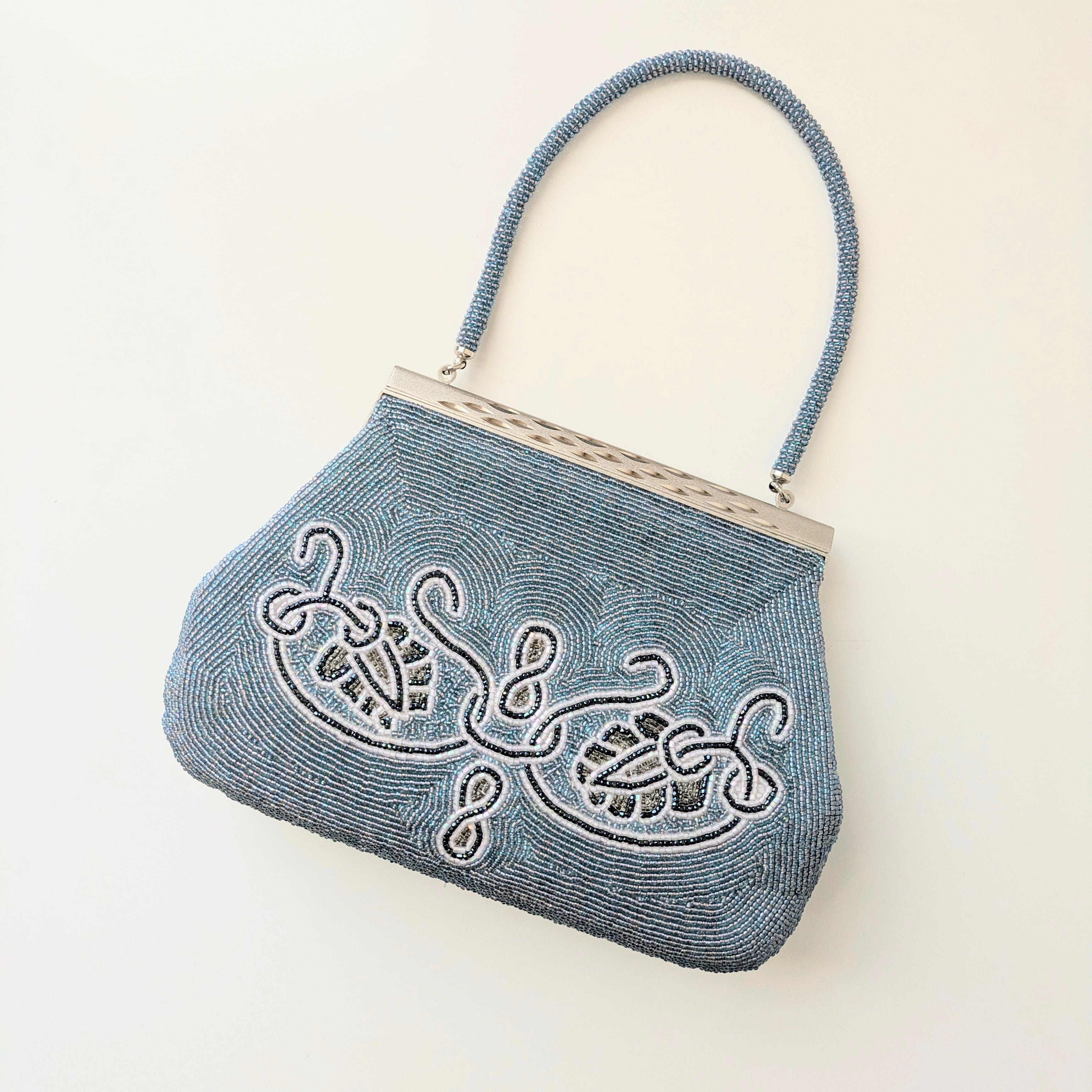 光を受けて美しく輝くヴィンテージビーズバッグ。