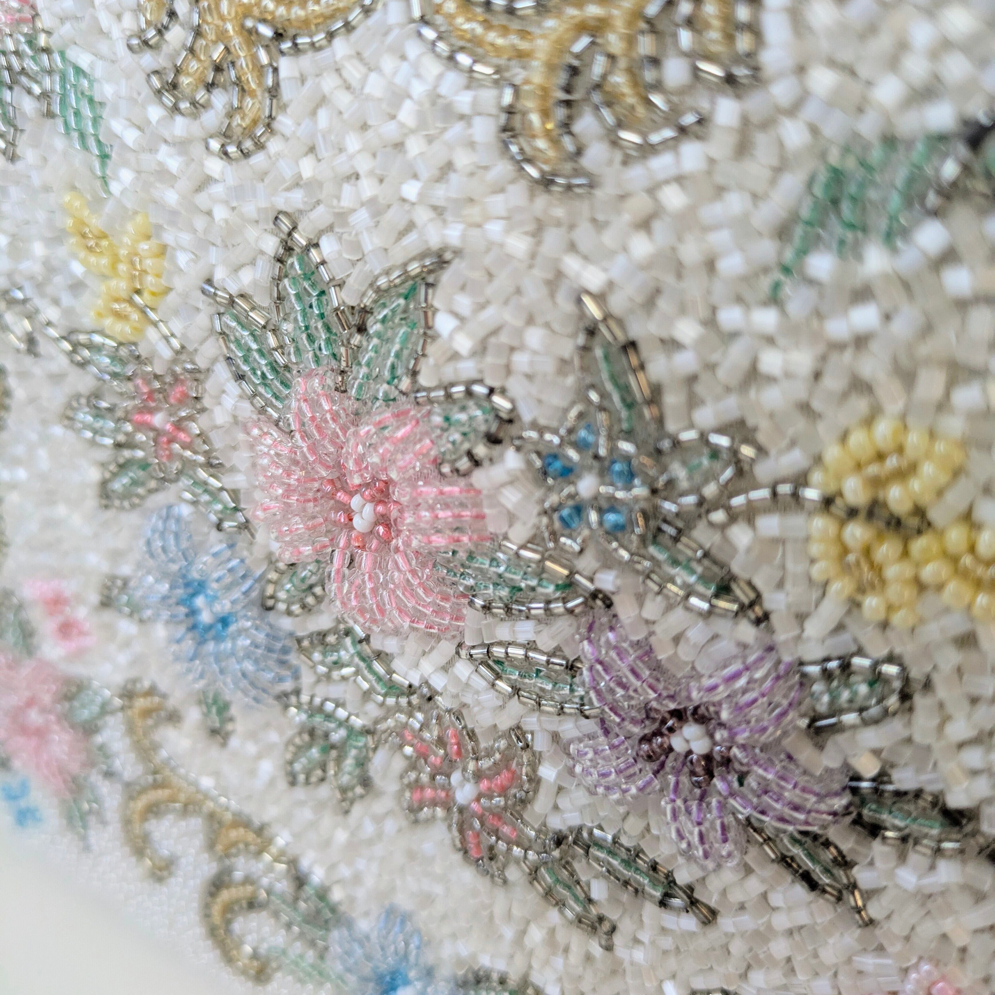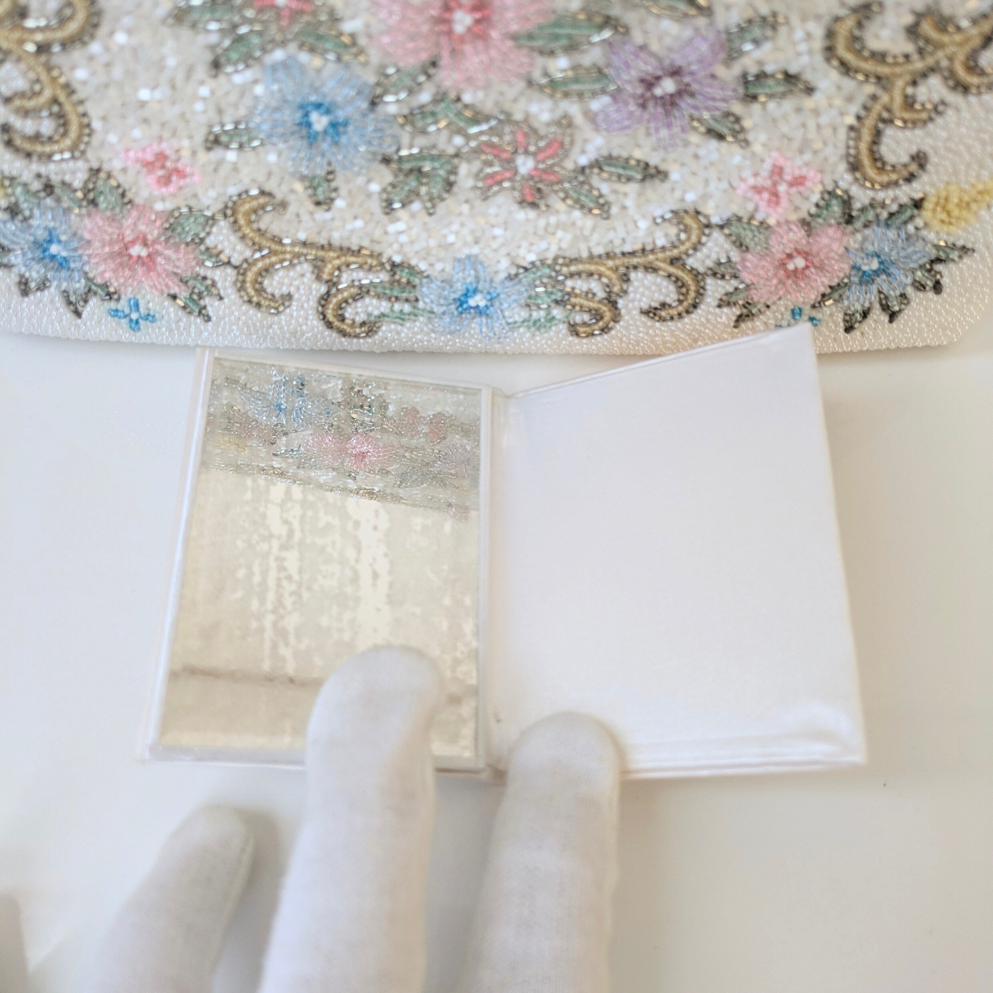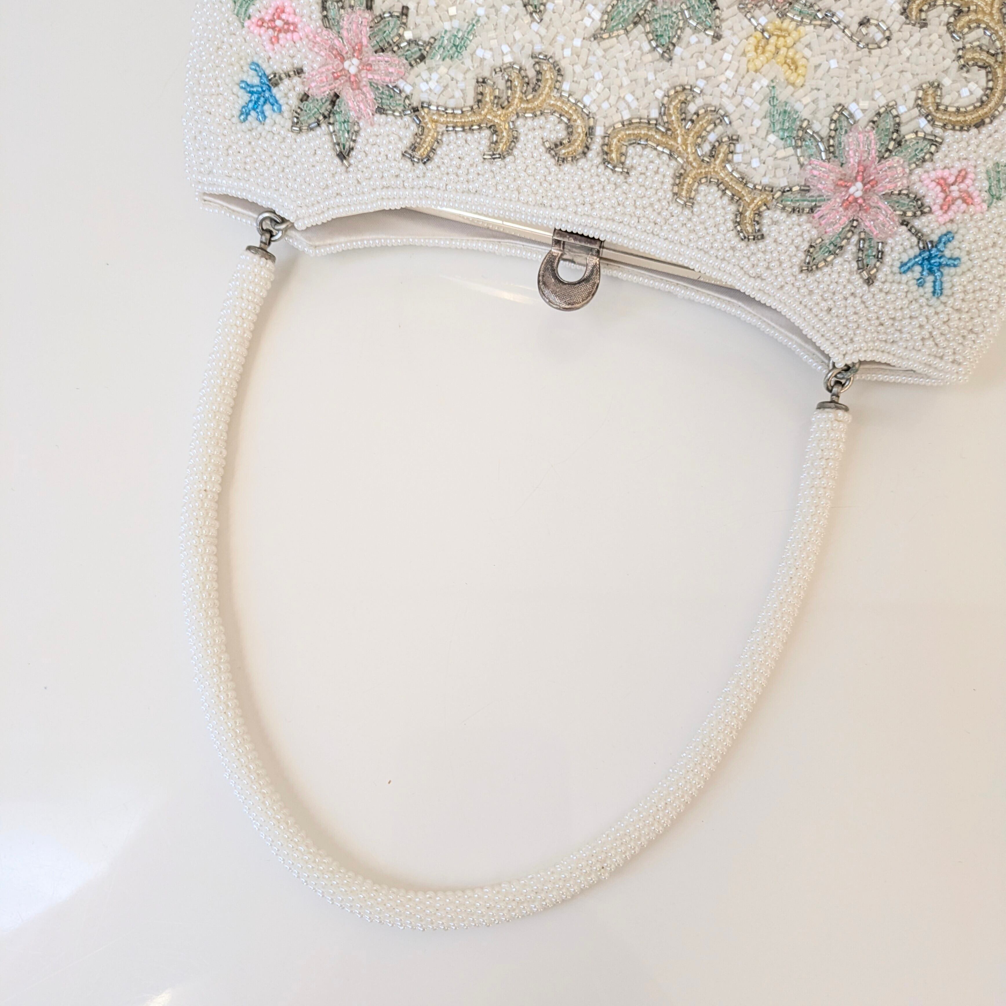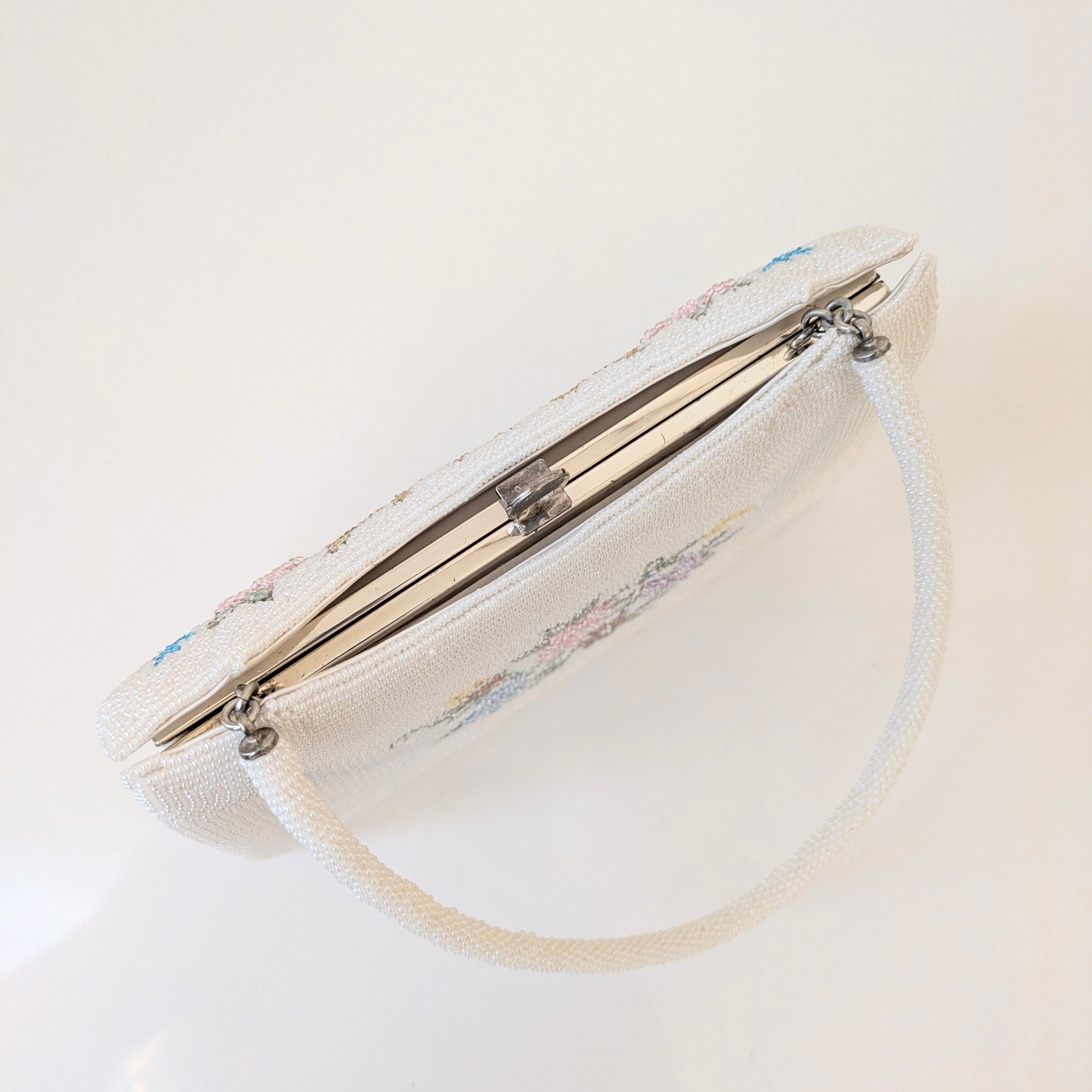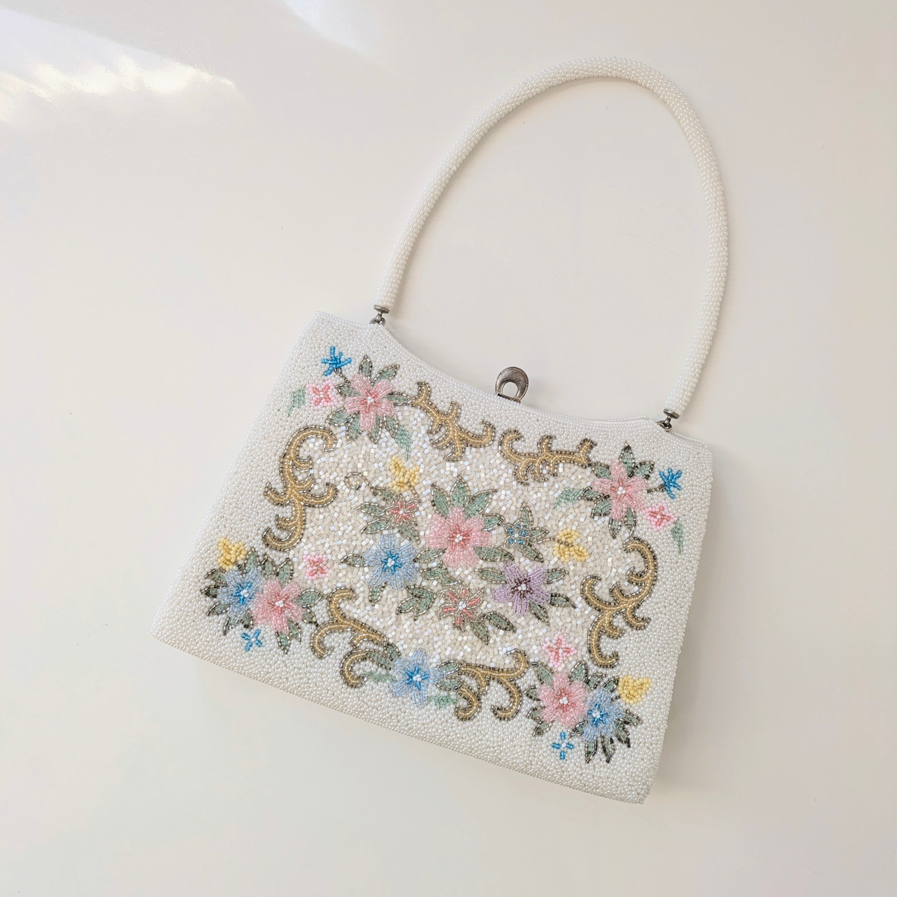 【Vintage】ビーズ刺繍バッグ 白 花柄 豪華 Princess TOKYO パーティーバッグ 昭和レトロ 大正浪漫 フォーマルバッグ