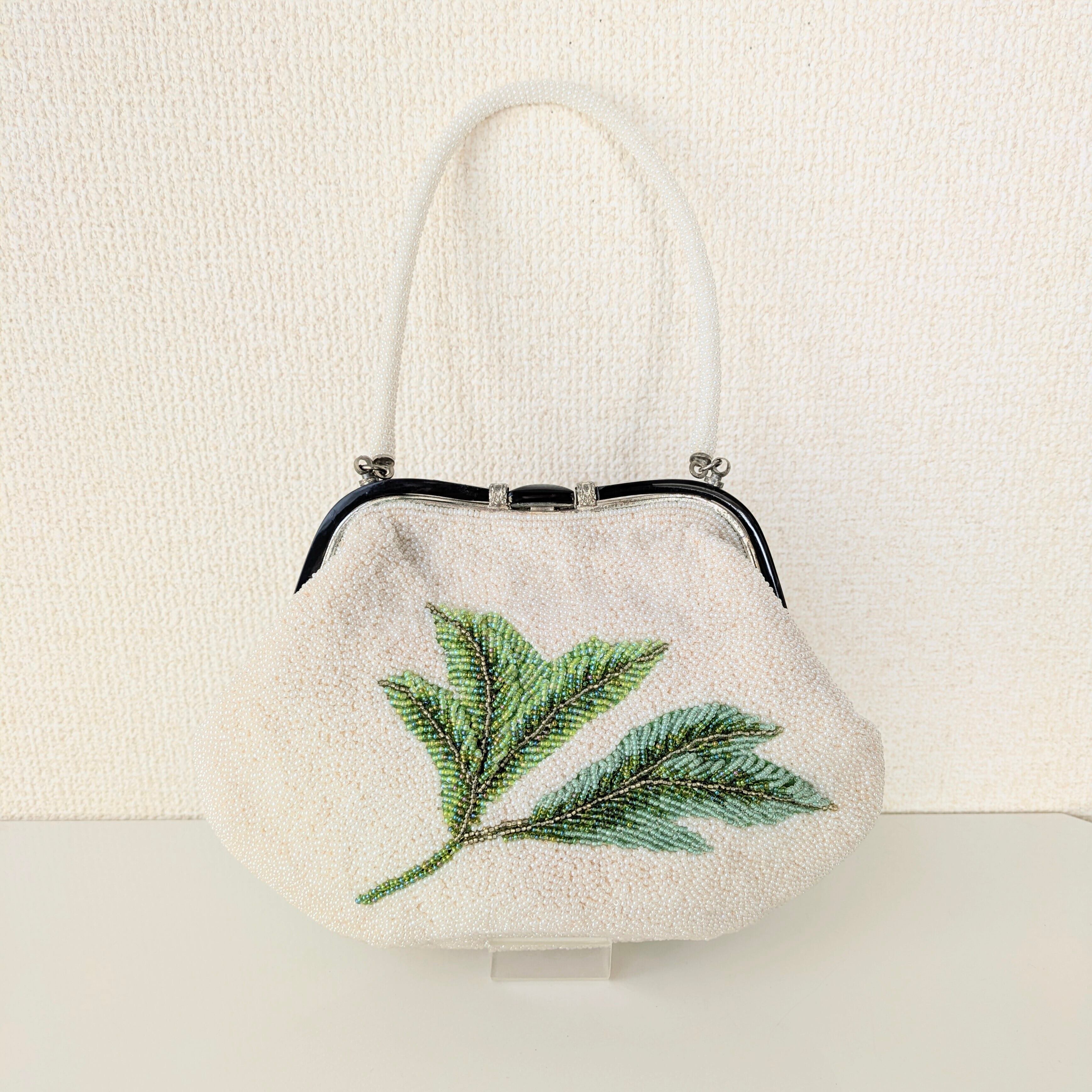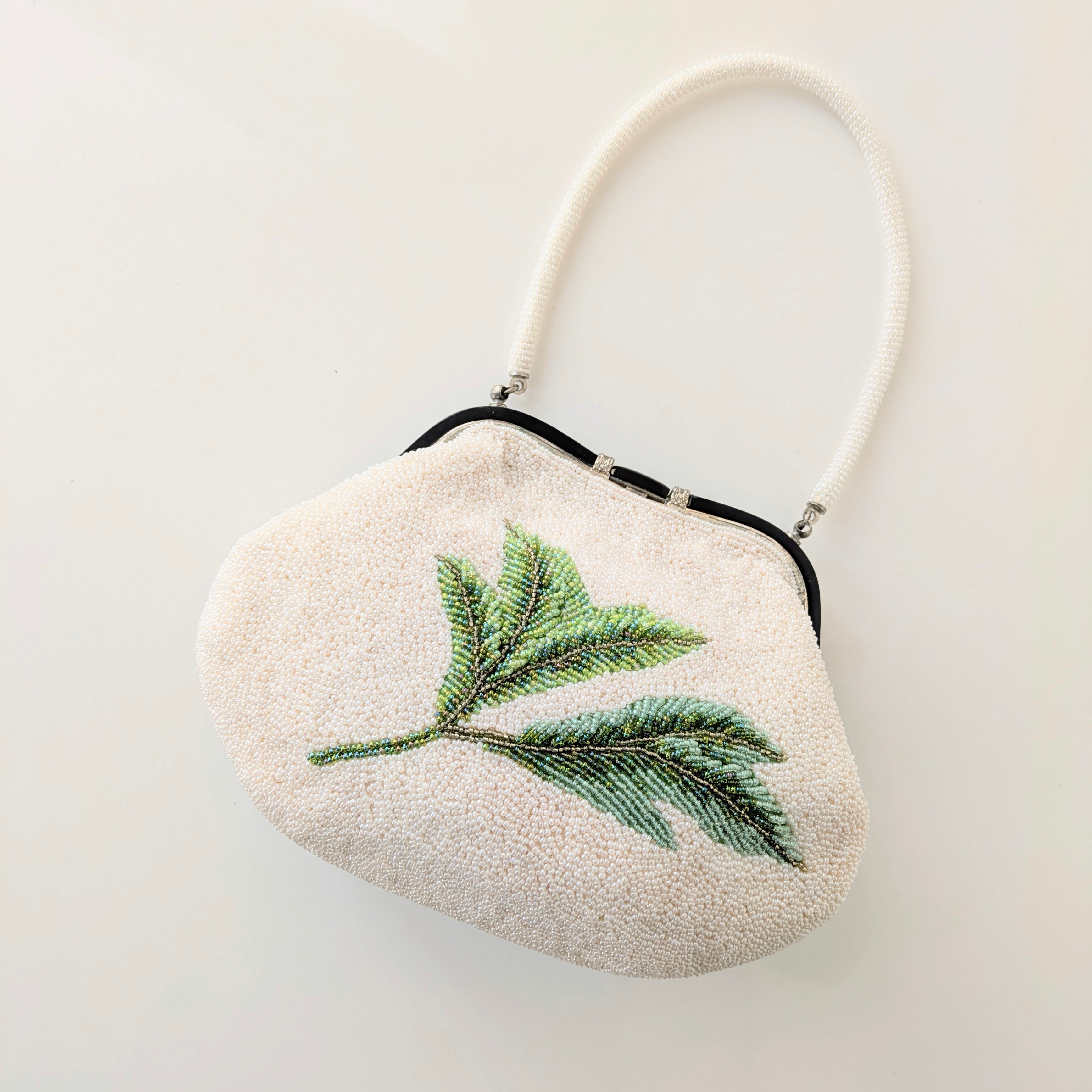 光を受けて美しく輝くヴィンテージビーズバッグ。