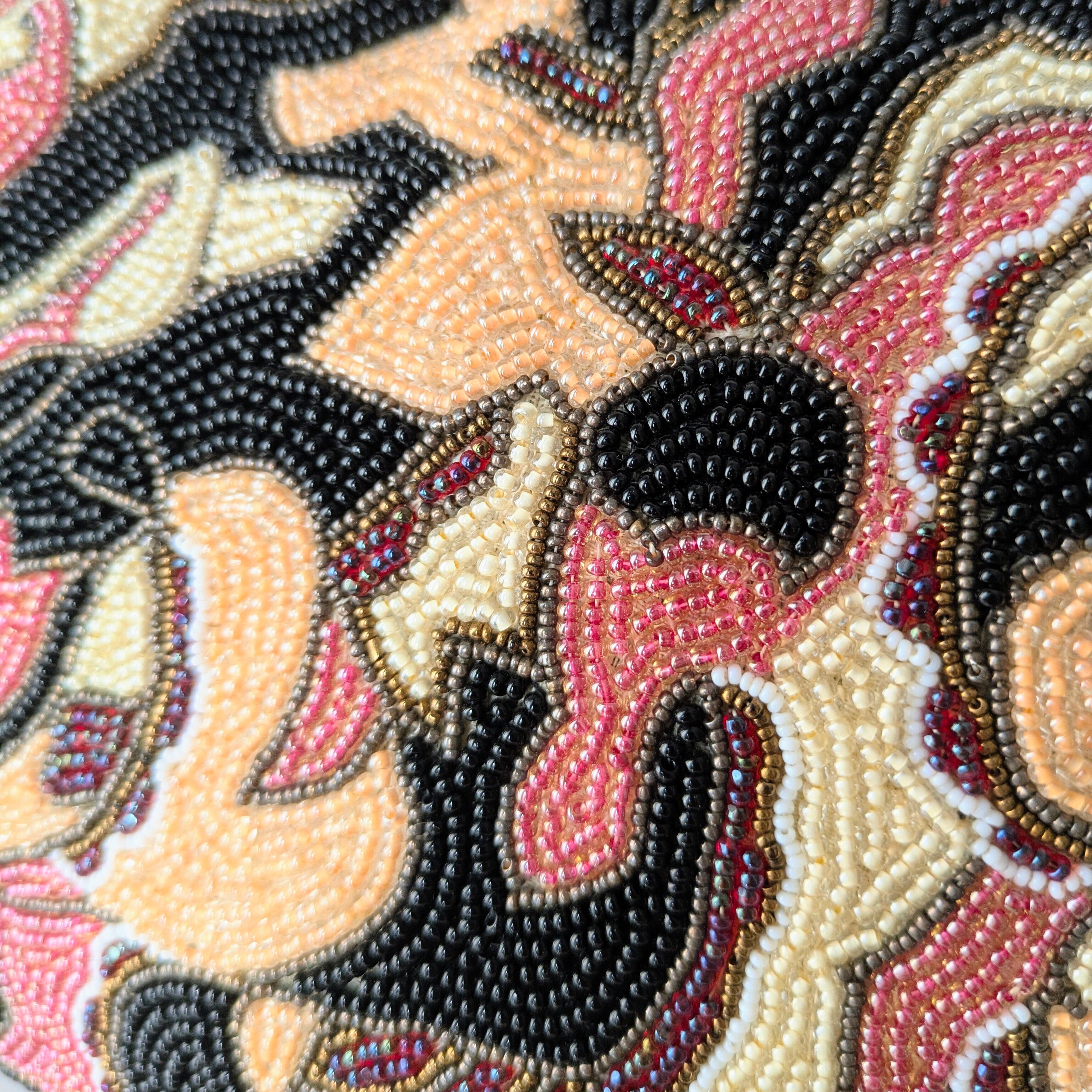 ビーズバッグの楽しみは、何と言っても手編みのビーズ刺繍。職人が一つ一つ丁寧に手作業で編み上げた、贅沢で美しいディテールです。